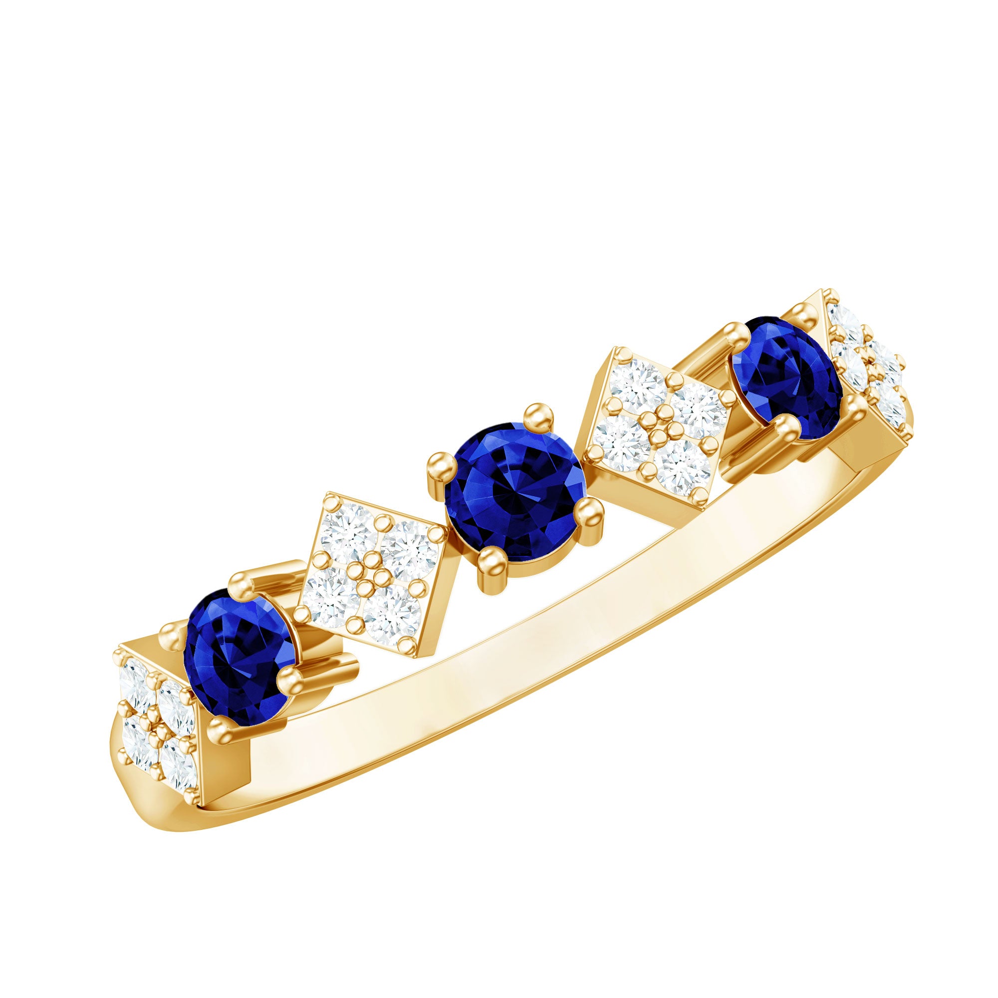 Declare your love with this stunning Lab Created Blue Sapphire Half Eternity Ring, featuring Round Shape Lab Created Blue Sapphire gemstones and Diamond stones set in an alternating pattern. The band adds a touch of luxury to the design, making it impossible for her to take her eyes off this captivating piece.