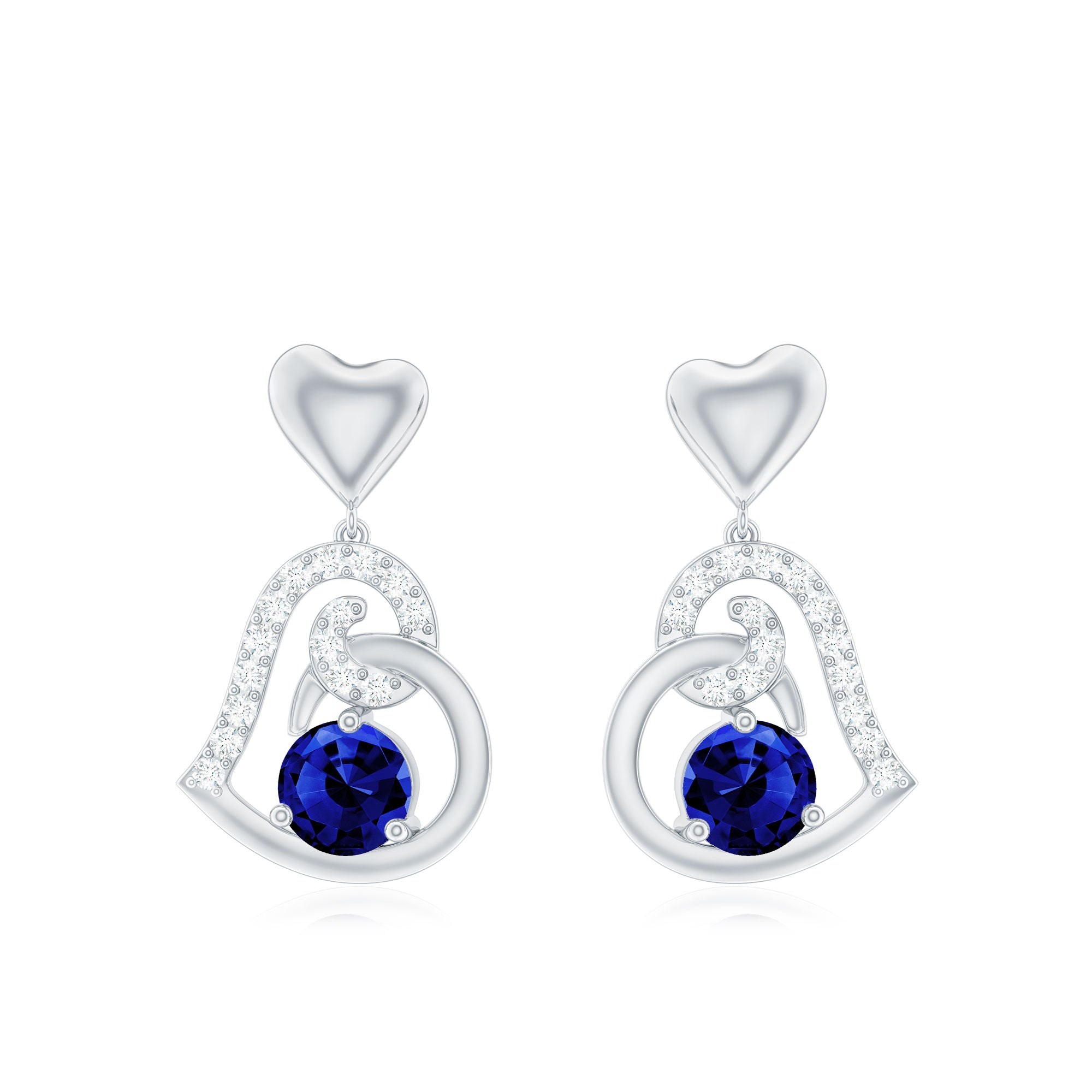 Created Blue Sapphire and Diamond Heart Drop Earrings