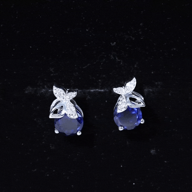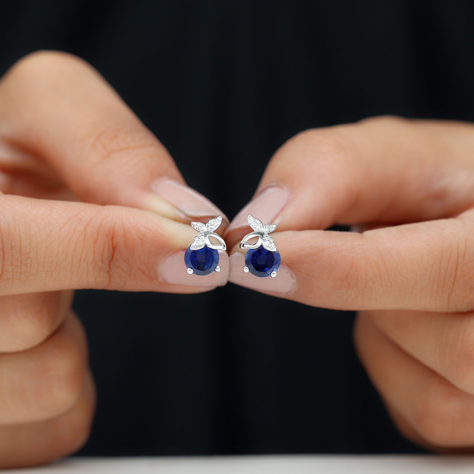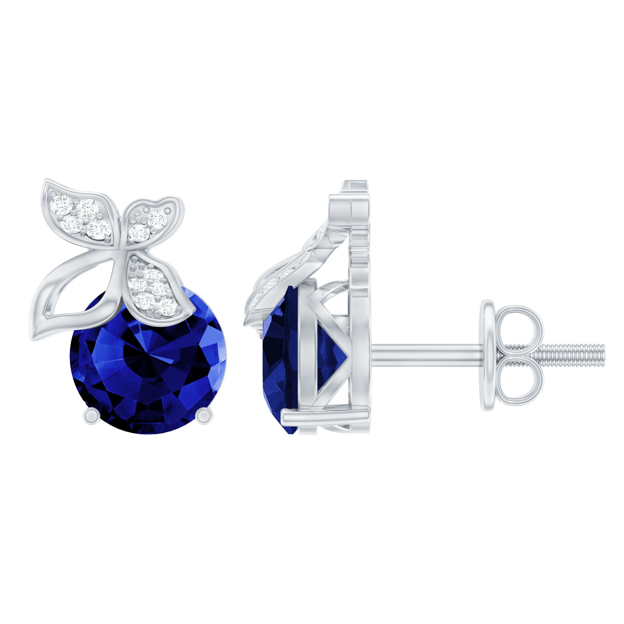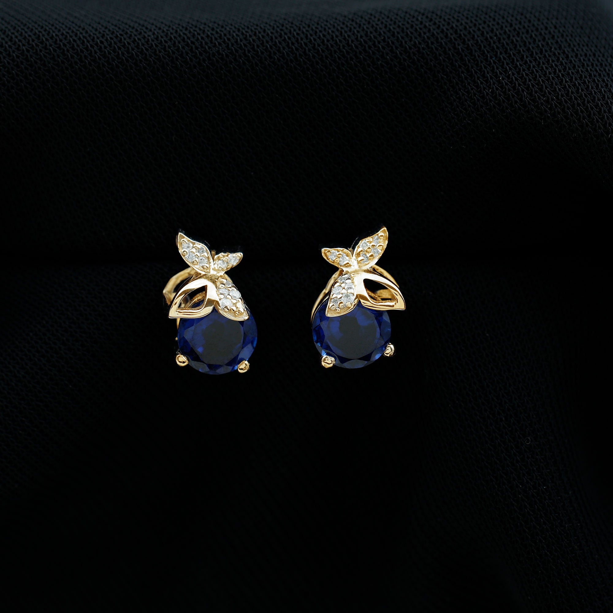 Created Blue Sapphire and Gold Moissanite Butterfly Stud Earrings
