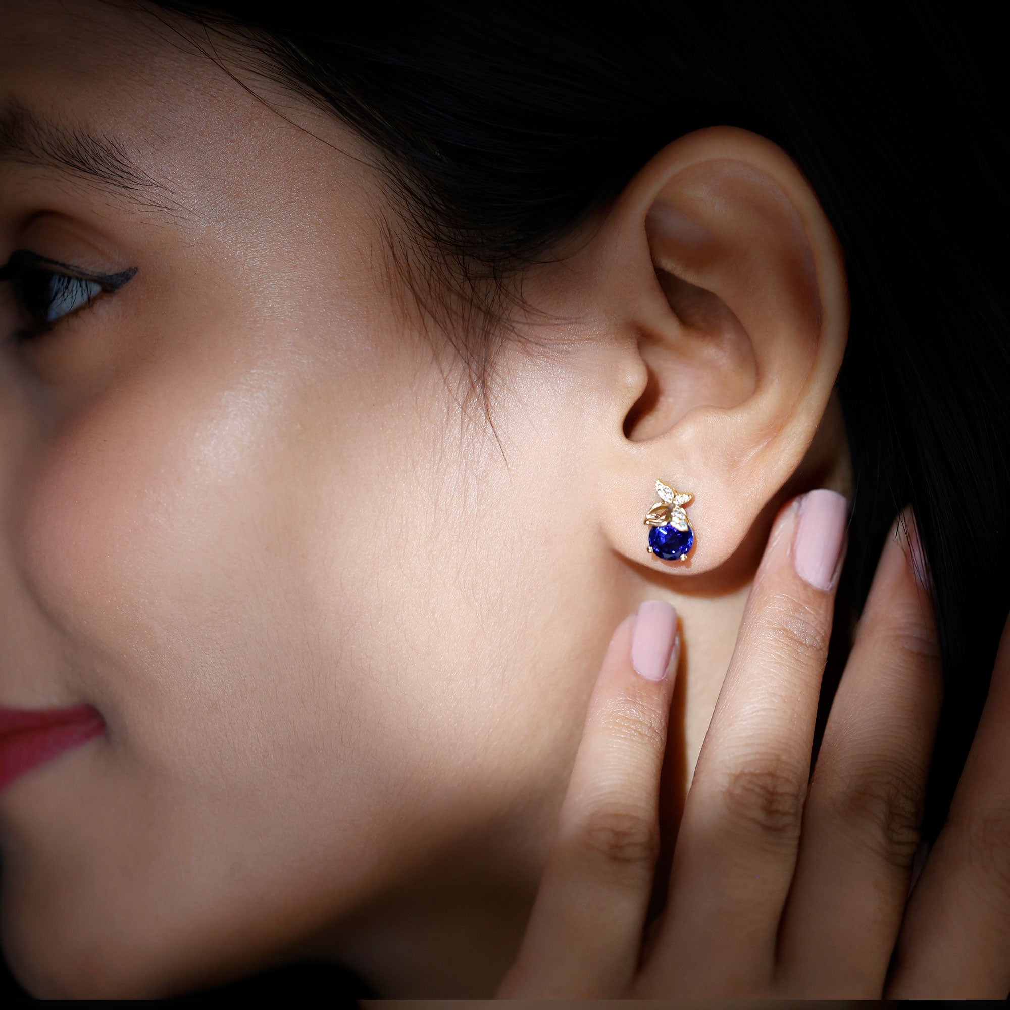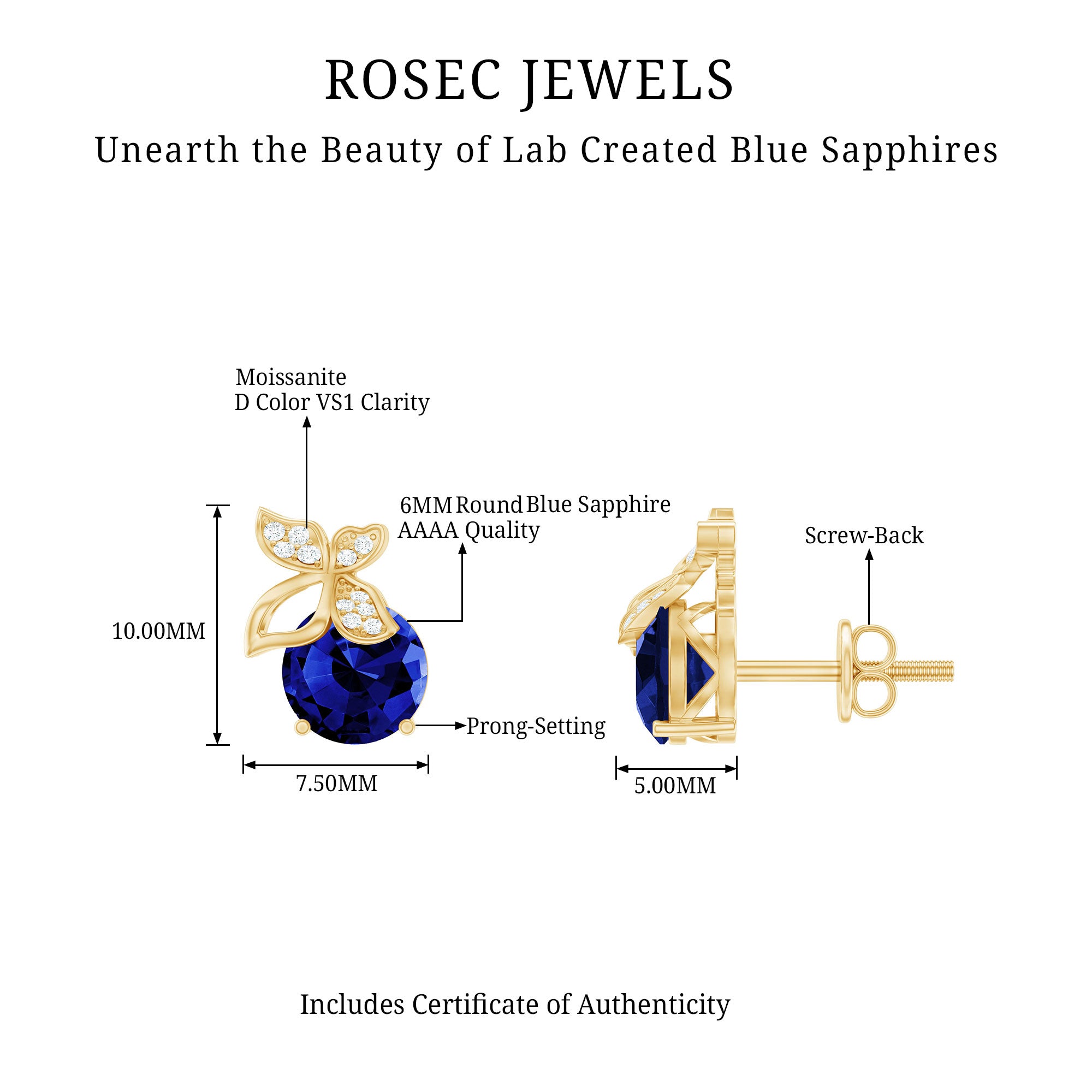 Add a touch of whimsy to your jewelry collection with these Butterfly Stud Earrings featuring a Round Created Blue Sapphire and a sparkling Moissanite Butterfly on the top. Crafted in gold, these created sapphire earrings are both elegant and playful, making them the perfect accessory for any occasion.