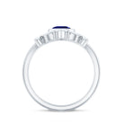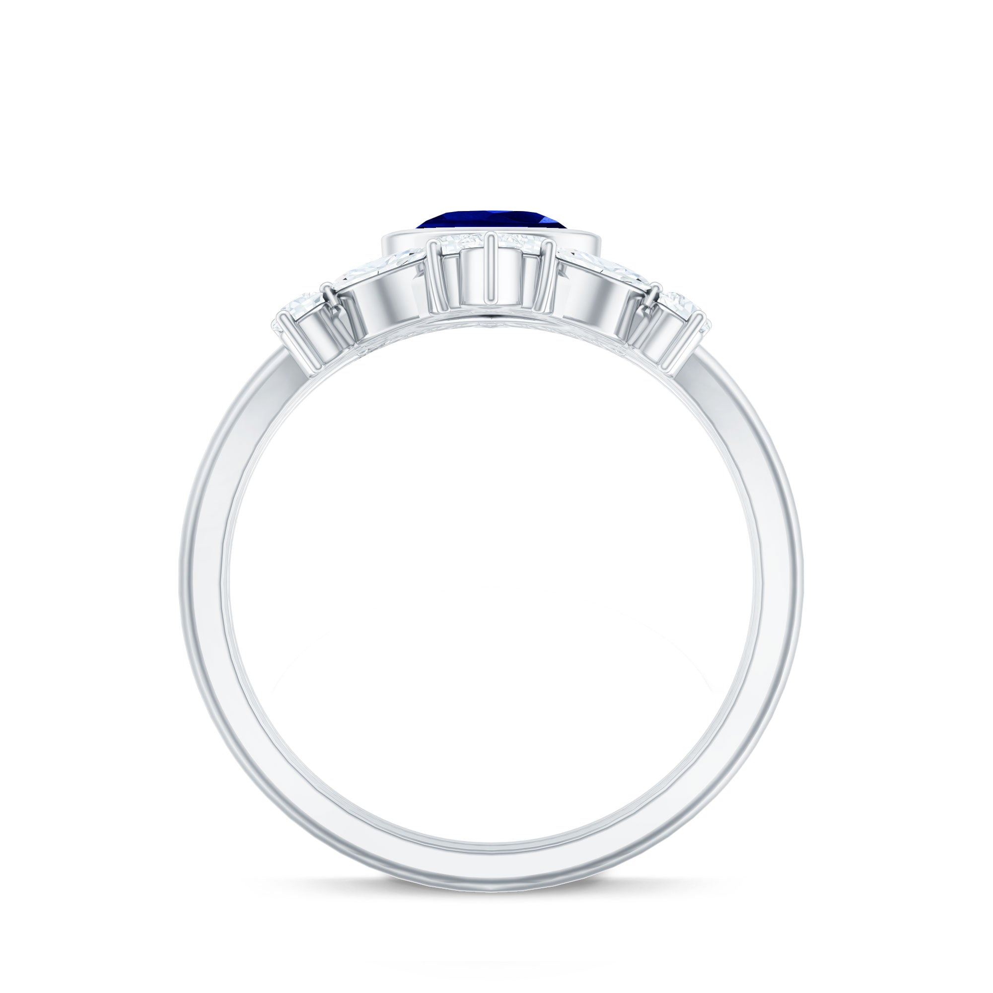 Created Blue Sapphire and Moissanite Art Deco Wedding Ring Set in Gold