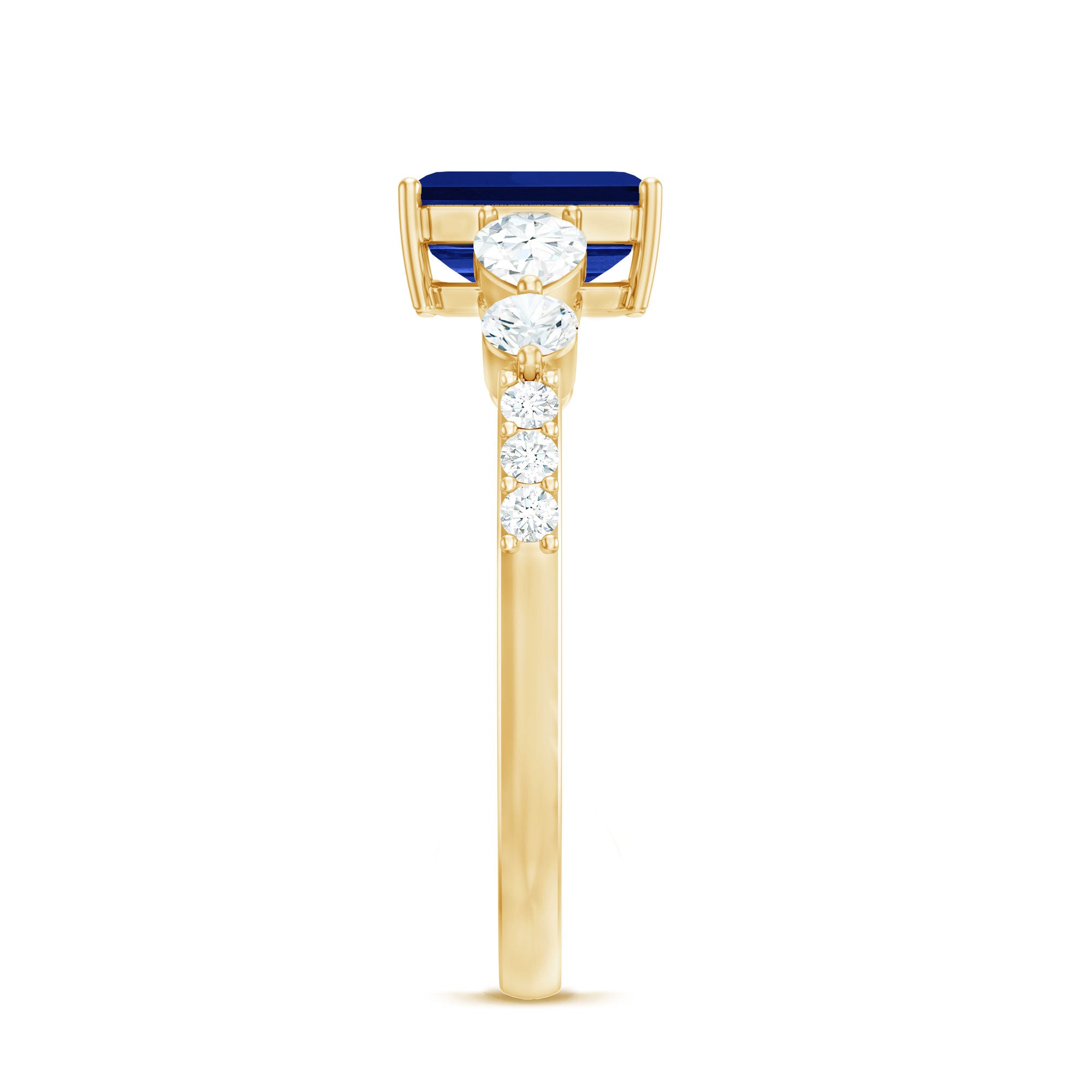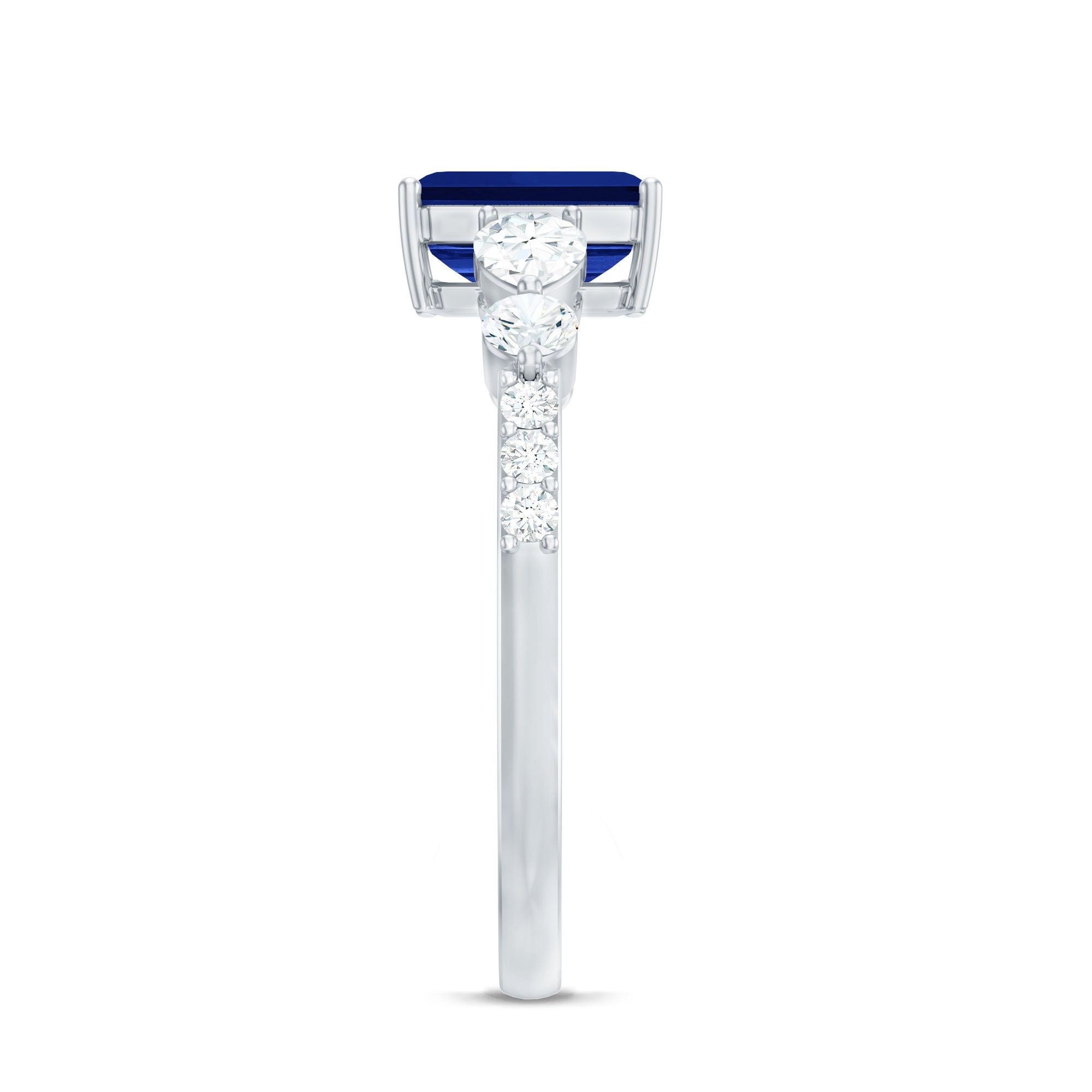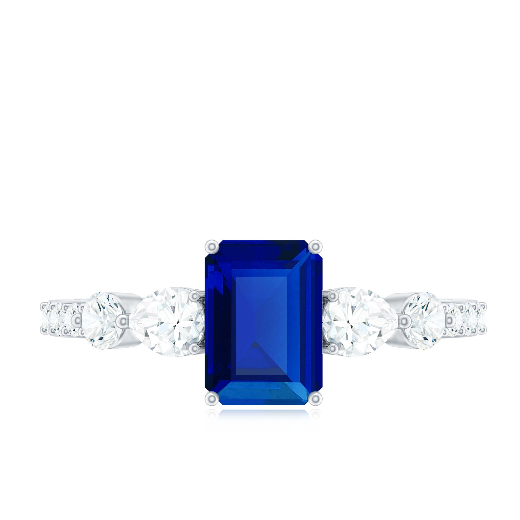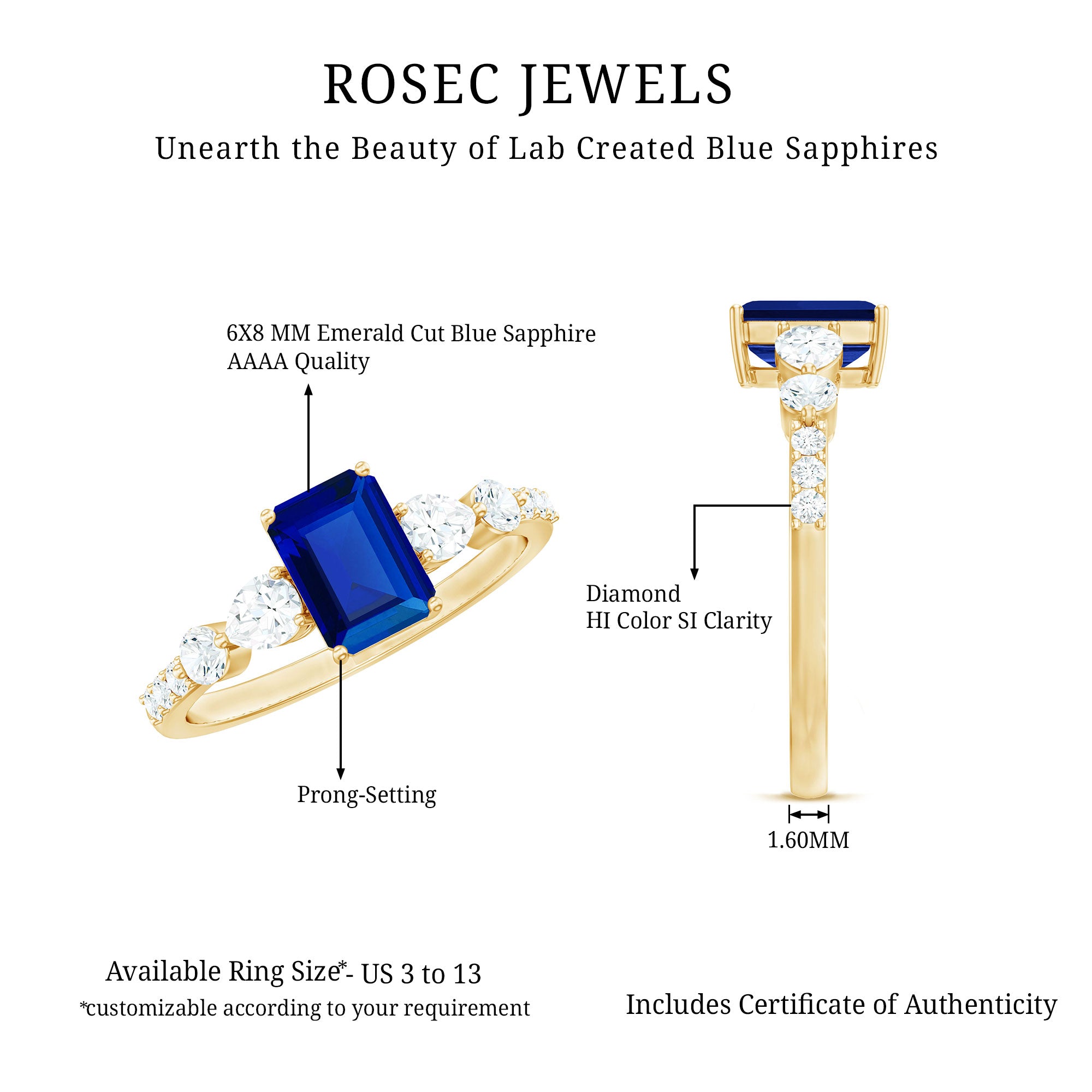 Elevate your style and stand out with this captivating Created Blue Sapphire Ring. The Octagon Cut Created Blue Sapphire shines elegantly in a secure prong setting, complemented by the brilliance of Diamond on the solitaire engagement ring. This bespoke piece of jewelry is sure to make a lasting impression and add a touch of sophistication to any look.