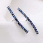 Complete all your looks with these Climber Earrings, a glamorous accessory for your everyday look. Feature baguette lab created blue sapphire held in prong setting. Create a unique style statement with these Blue Sapphire Earrings meticulously crafted in solid metal showcasing a combination of sophistication and elegance.