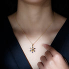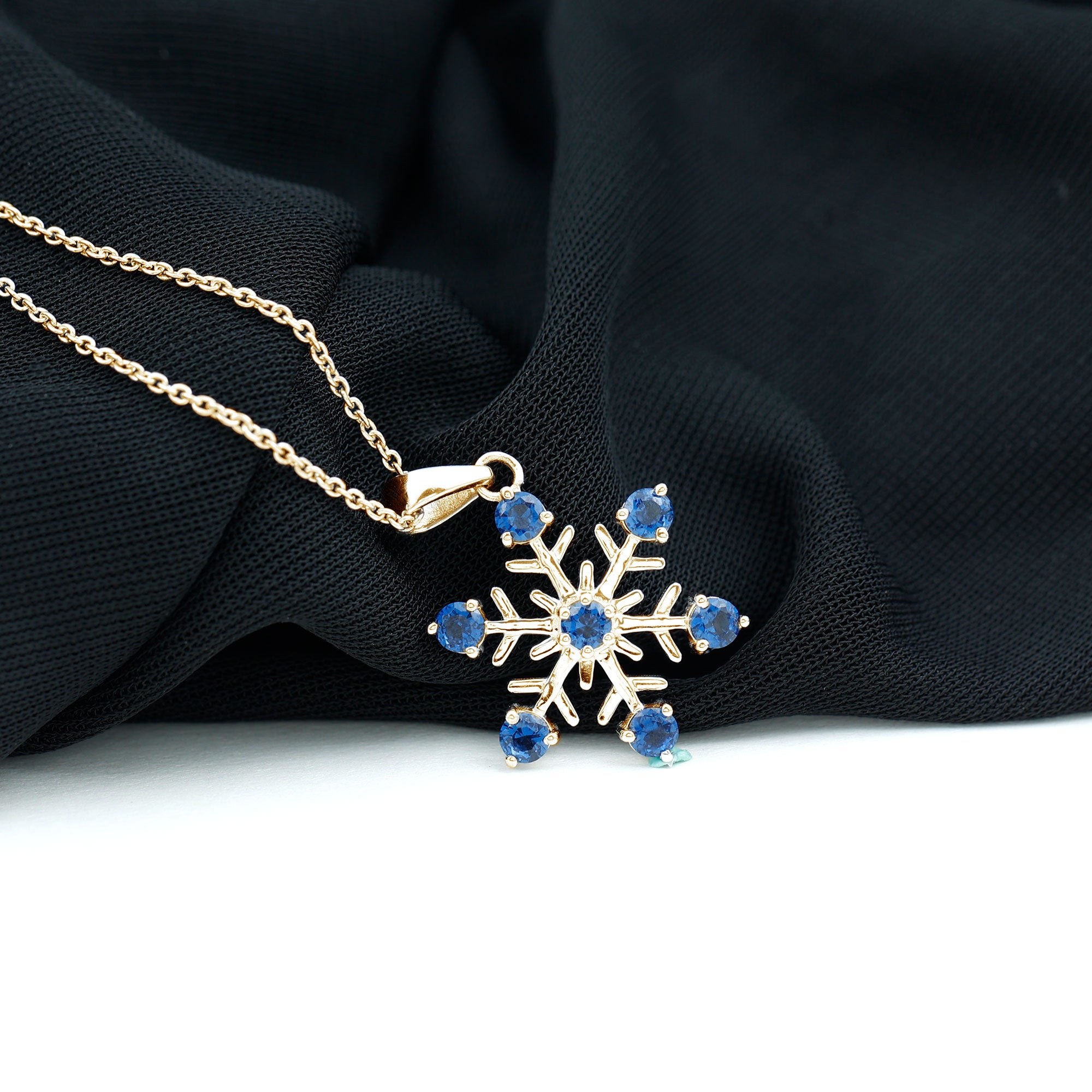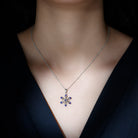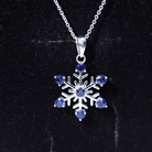 Delight your beloved with a heartfelt surprise: This enchanting piece features a delicate snowflake design adorned with Round Cut Created Blue Sapphire, carefully set in a prong setting. The captivating blue hue of the created sapphire adds a touch of elegance and charm to this beautiful necklace, making it a truly enchanting gift for your special lady. Let this Snowflake Necklace be a symbol of your love and appreciation, celebrating the uniqueness and beauty of your relationship.