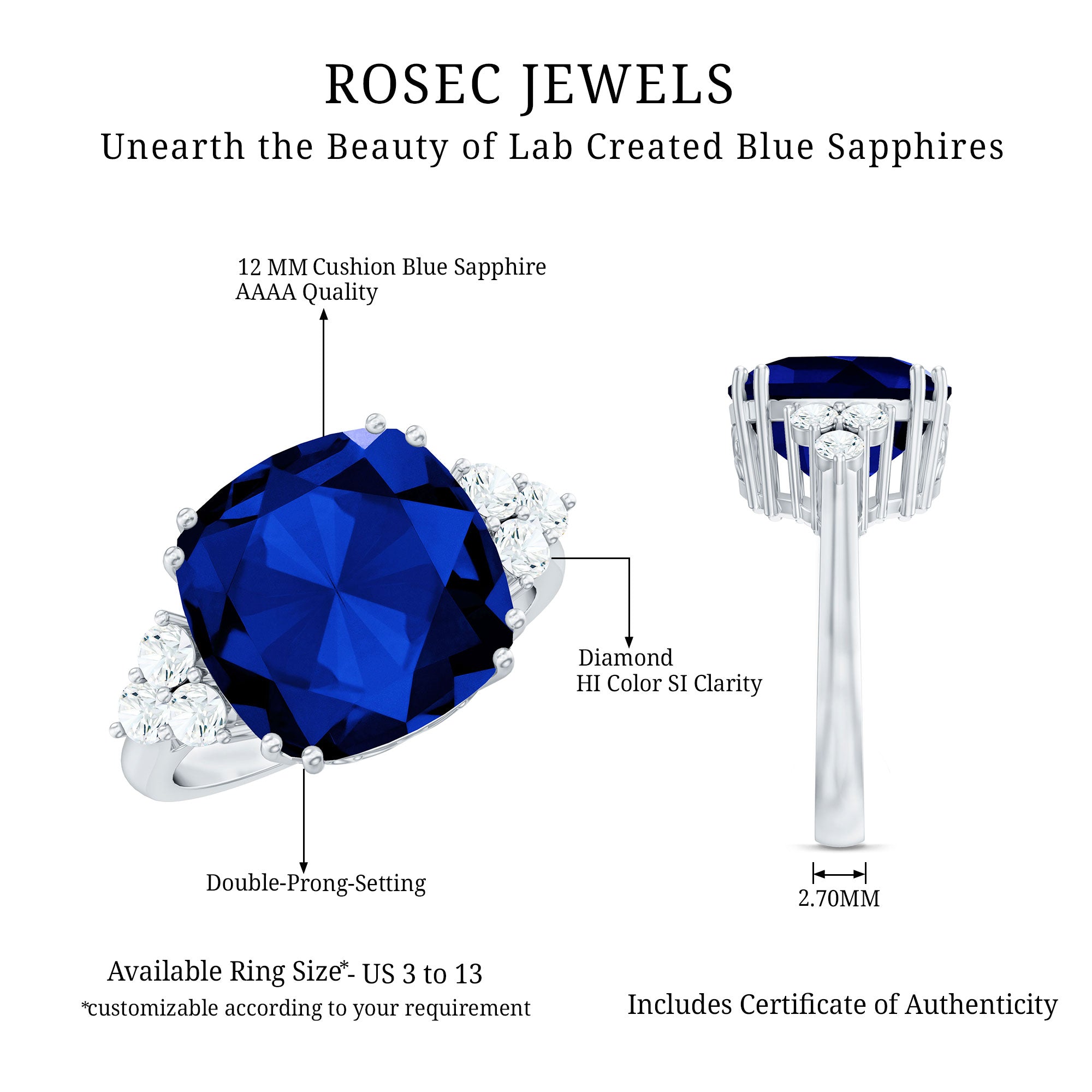 Created Blue Sapphire Solitaire Engagement Ring with Diamond Trio