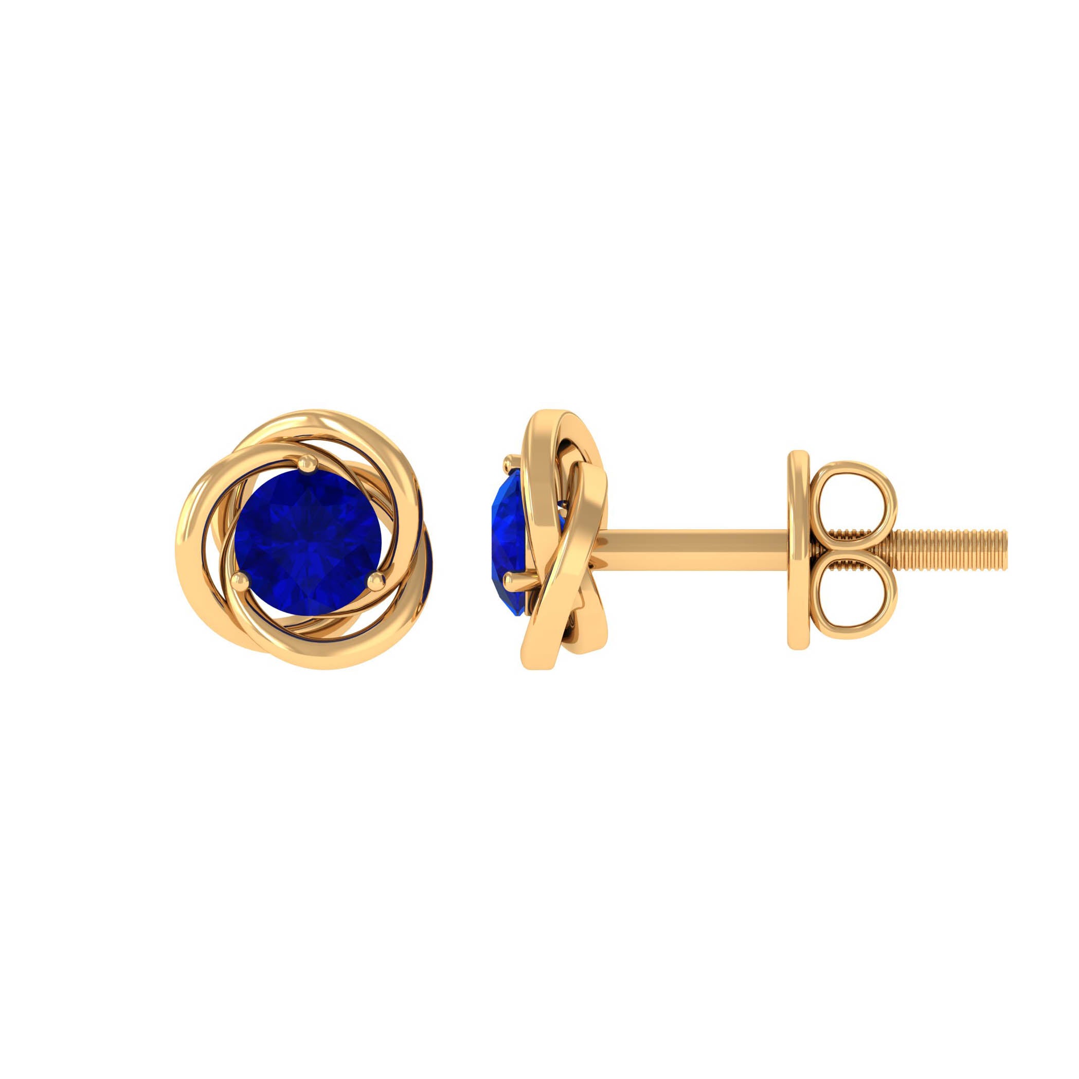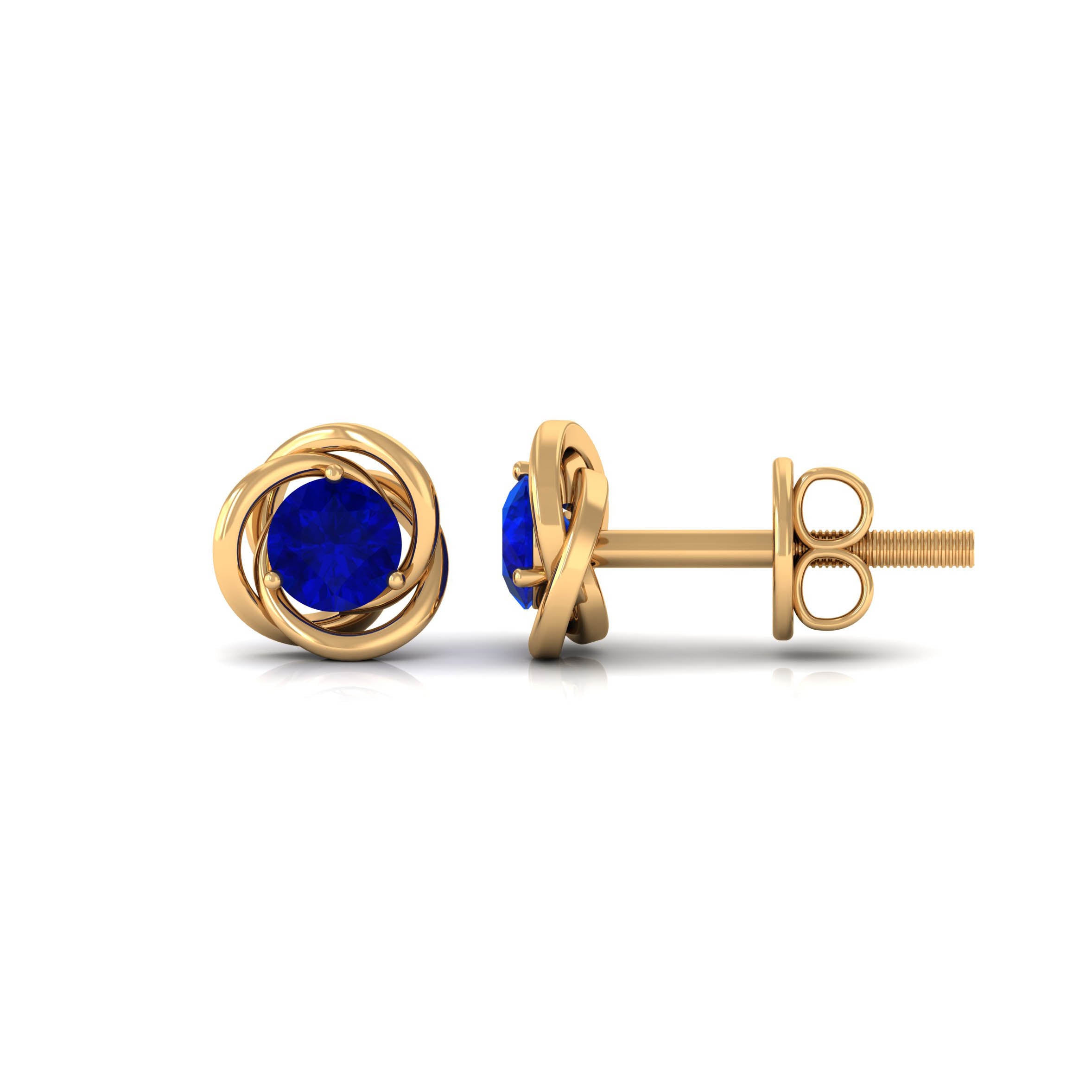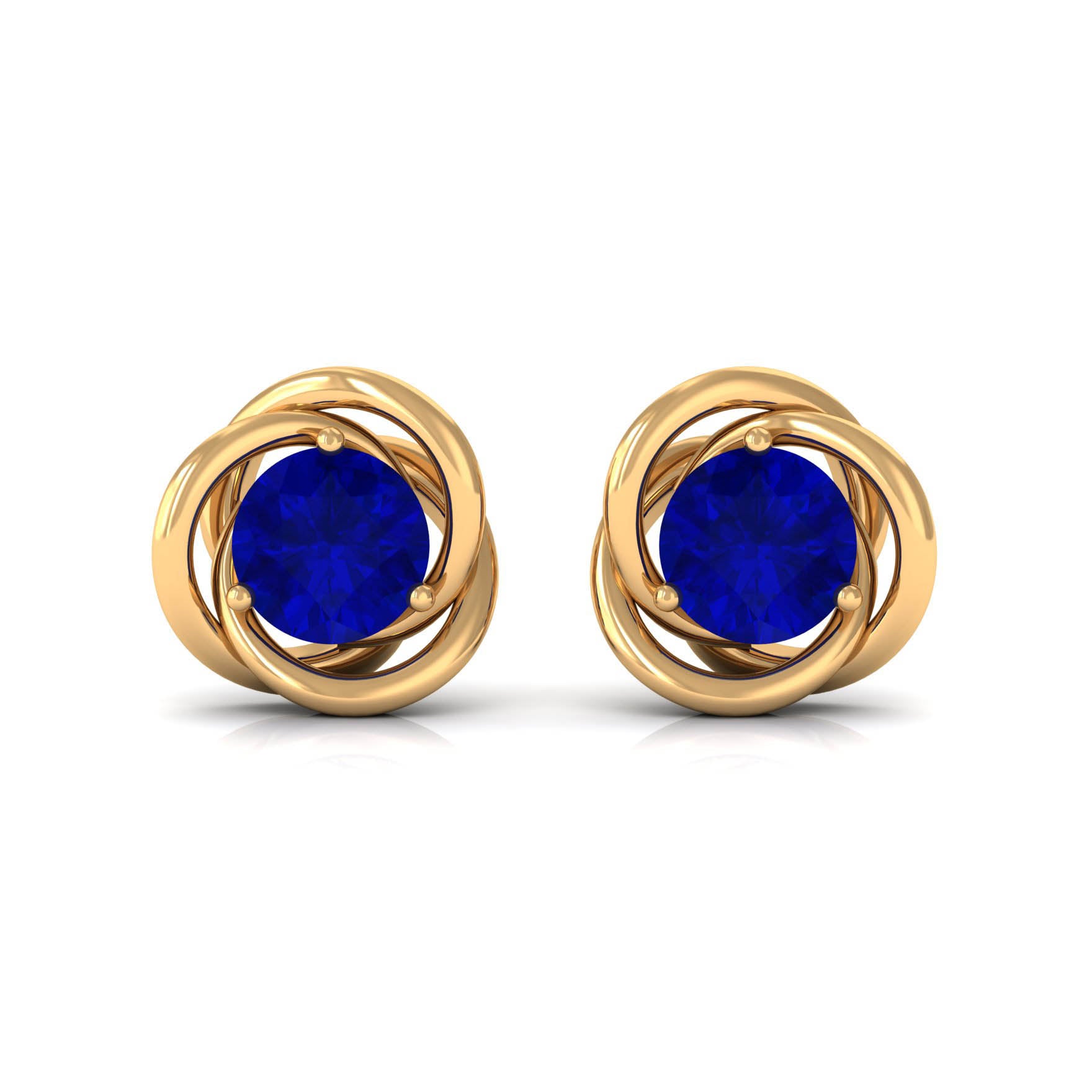 Created Blue Sapphire Solitaire Swirl Stud Earrings