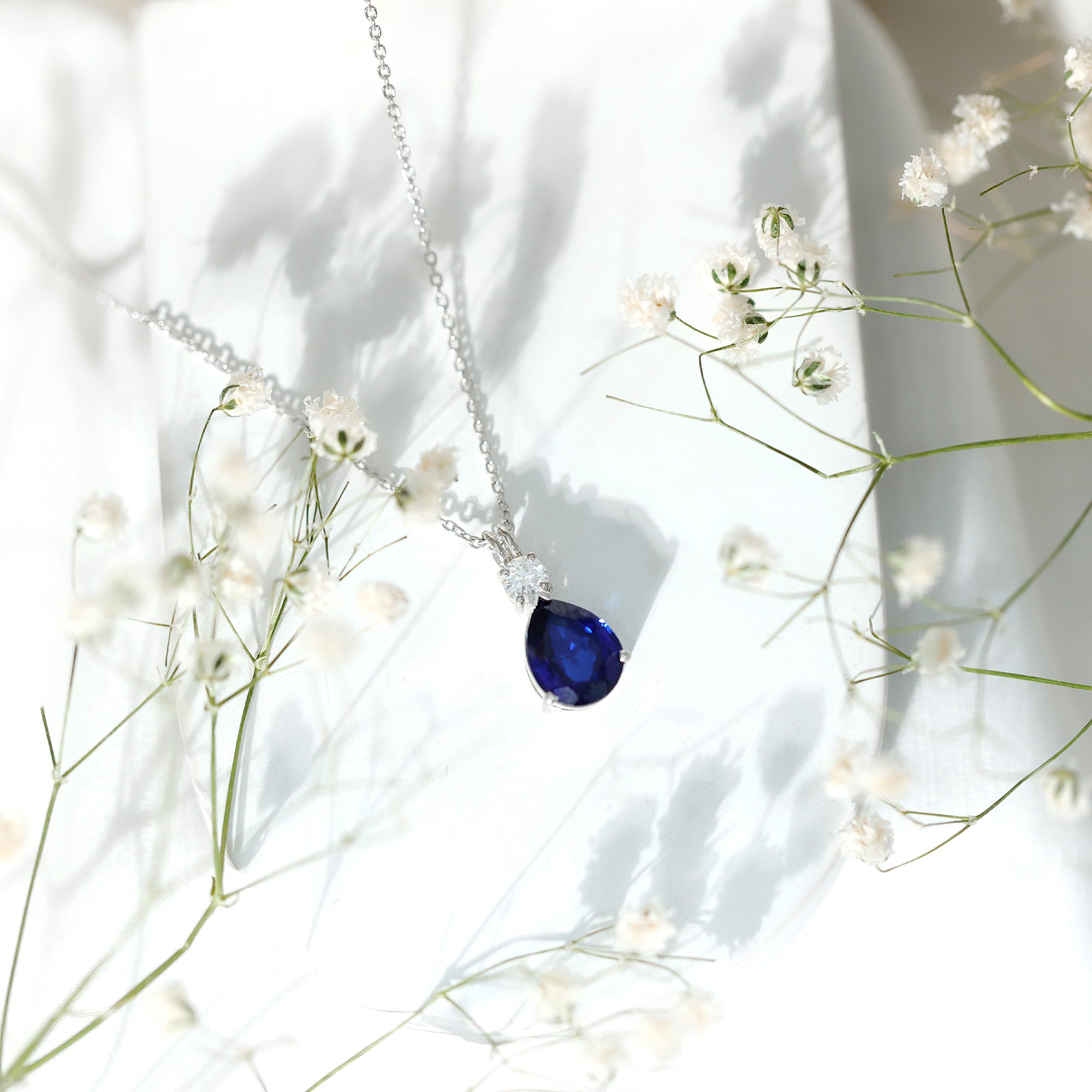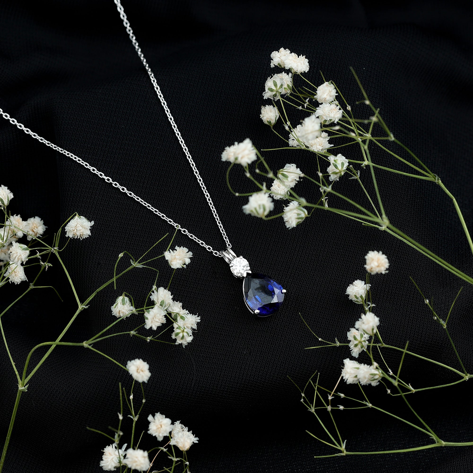 - The Created Sapphire Pendant has been gracefully crafted in Solid Metal. Flaunt the Teardrop Necklace with your beautiful outfits effortlessly to create unique looks.
