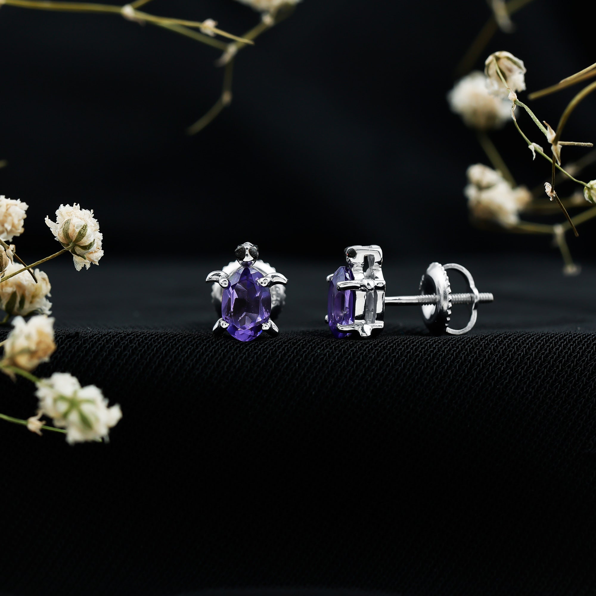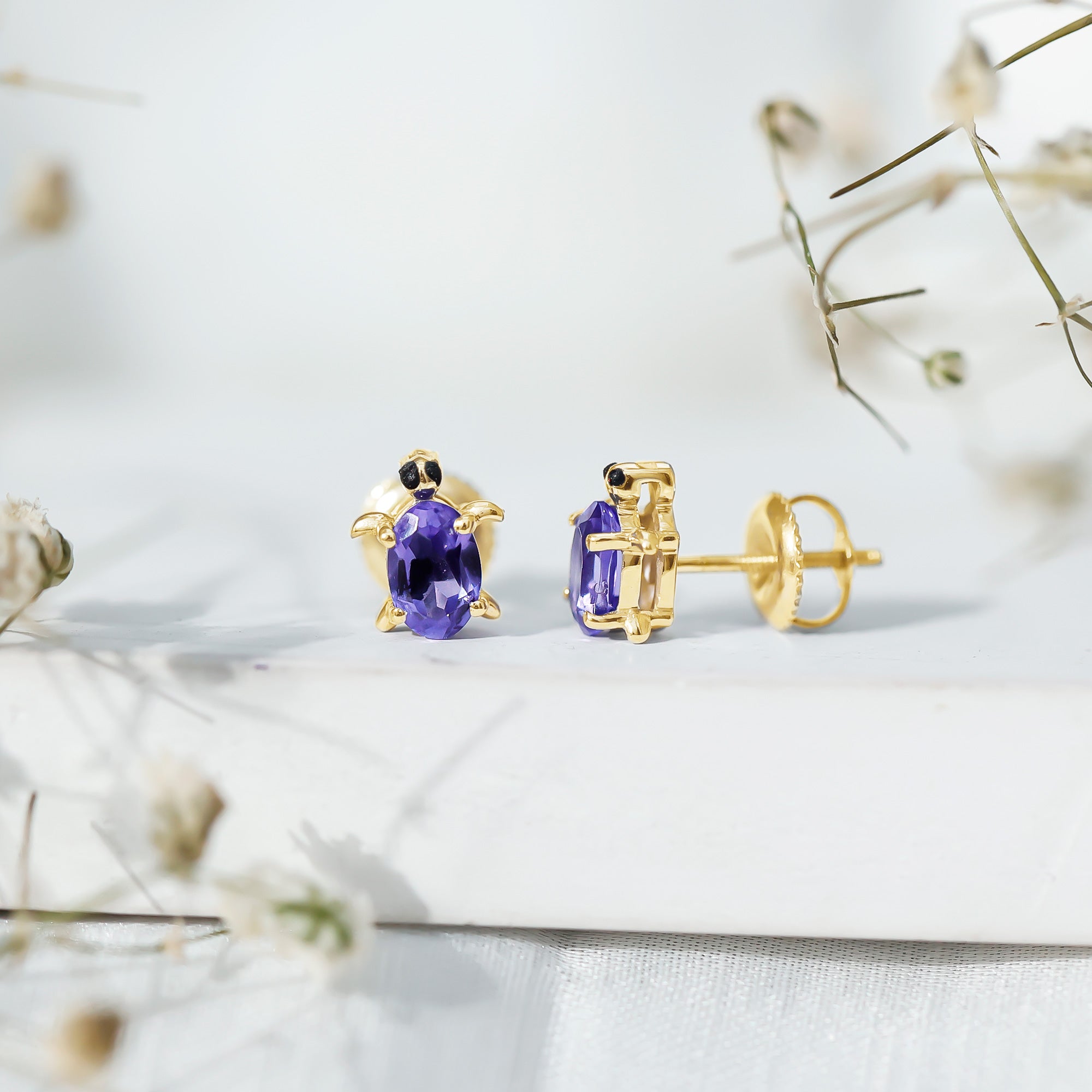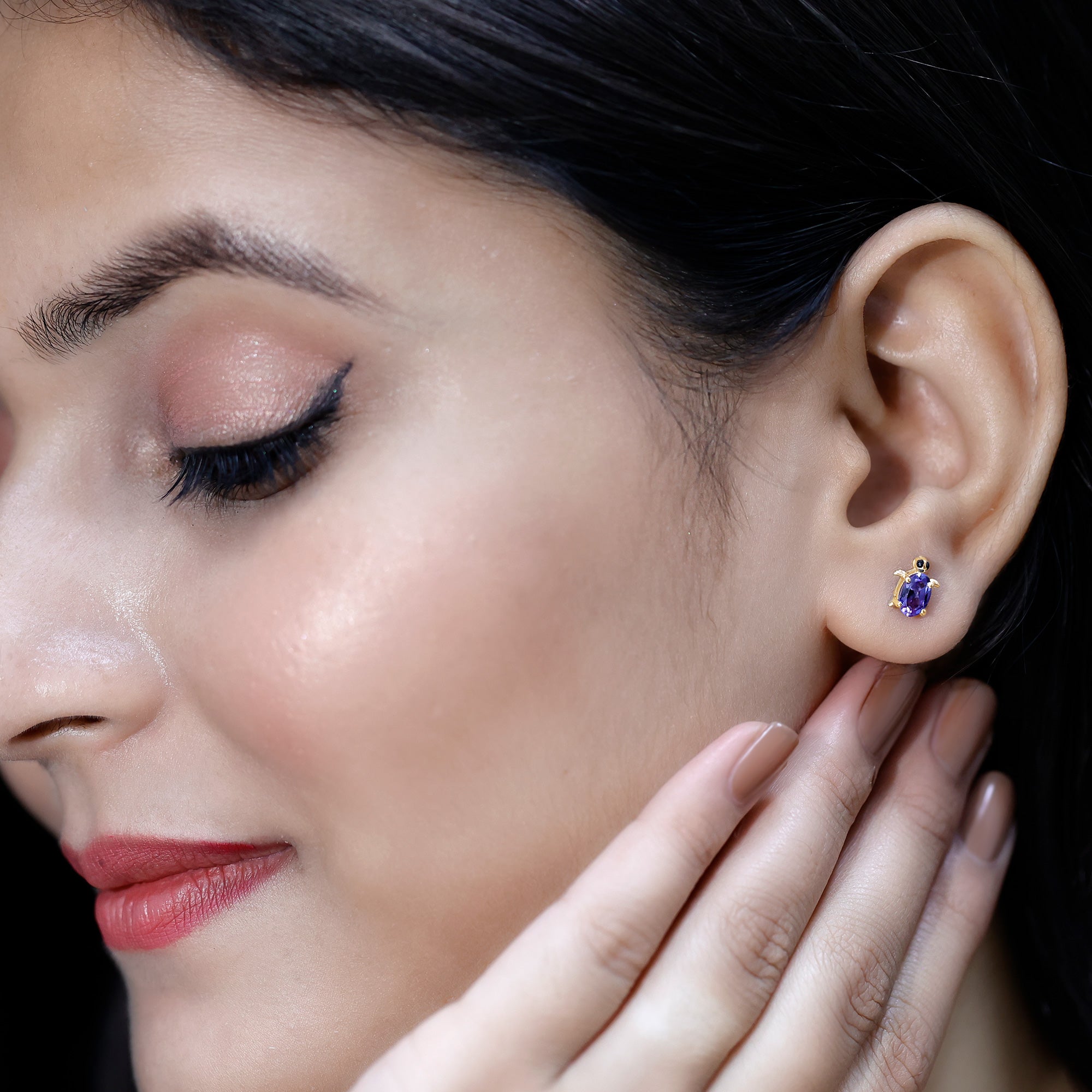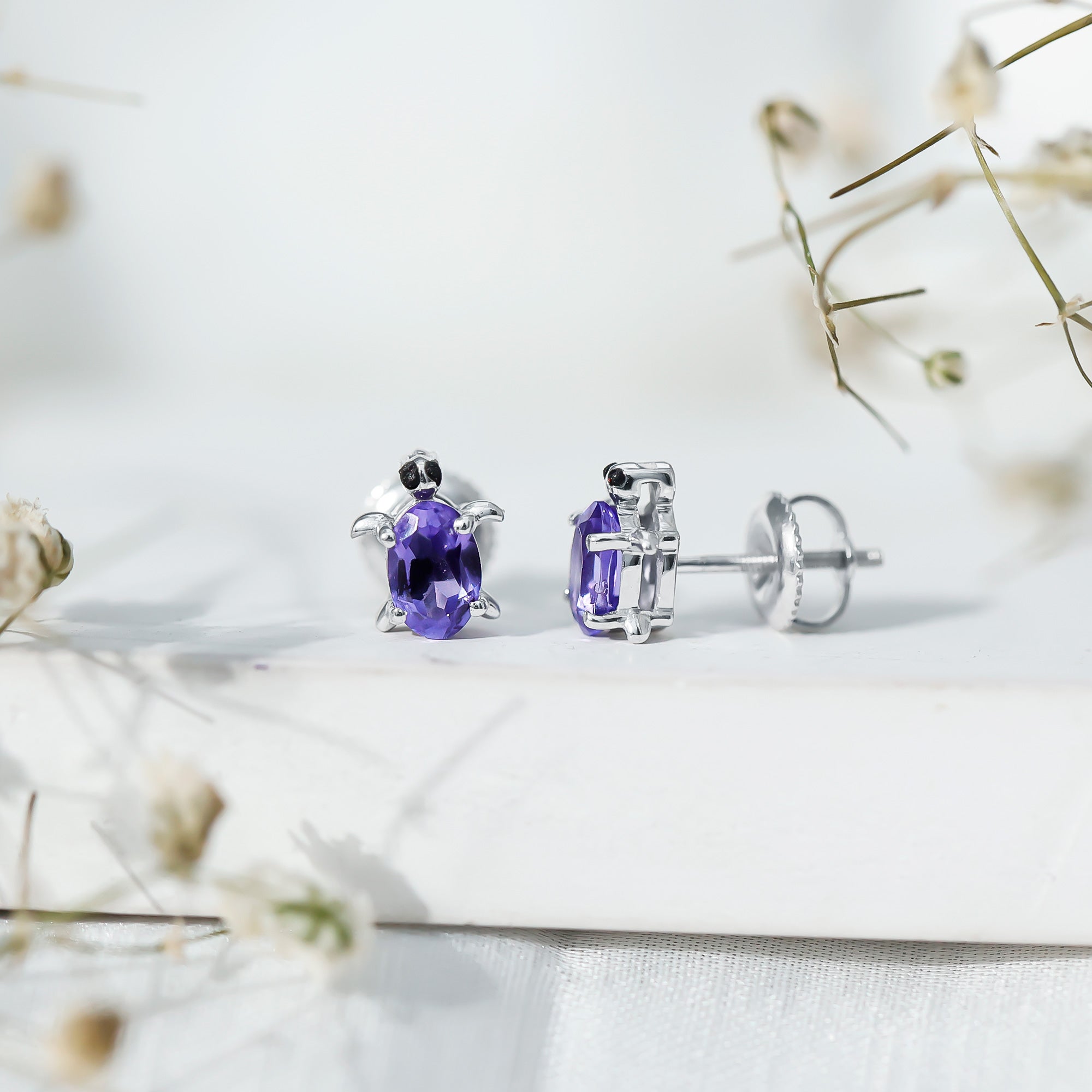 Present these tortoise earrings to someone who adores animals a lot! These earrings are embellished with an oval cut created blue sapphire and handcrafted in metal for luxurious appeal. Get these pretty created blue sapphire earrings for her and win her heart with your thoughtfulness.