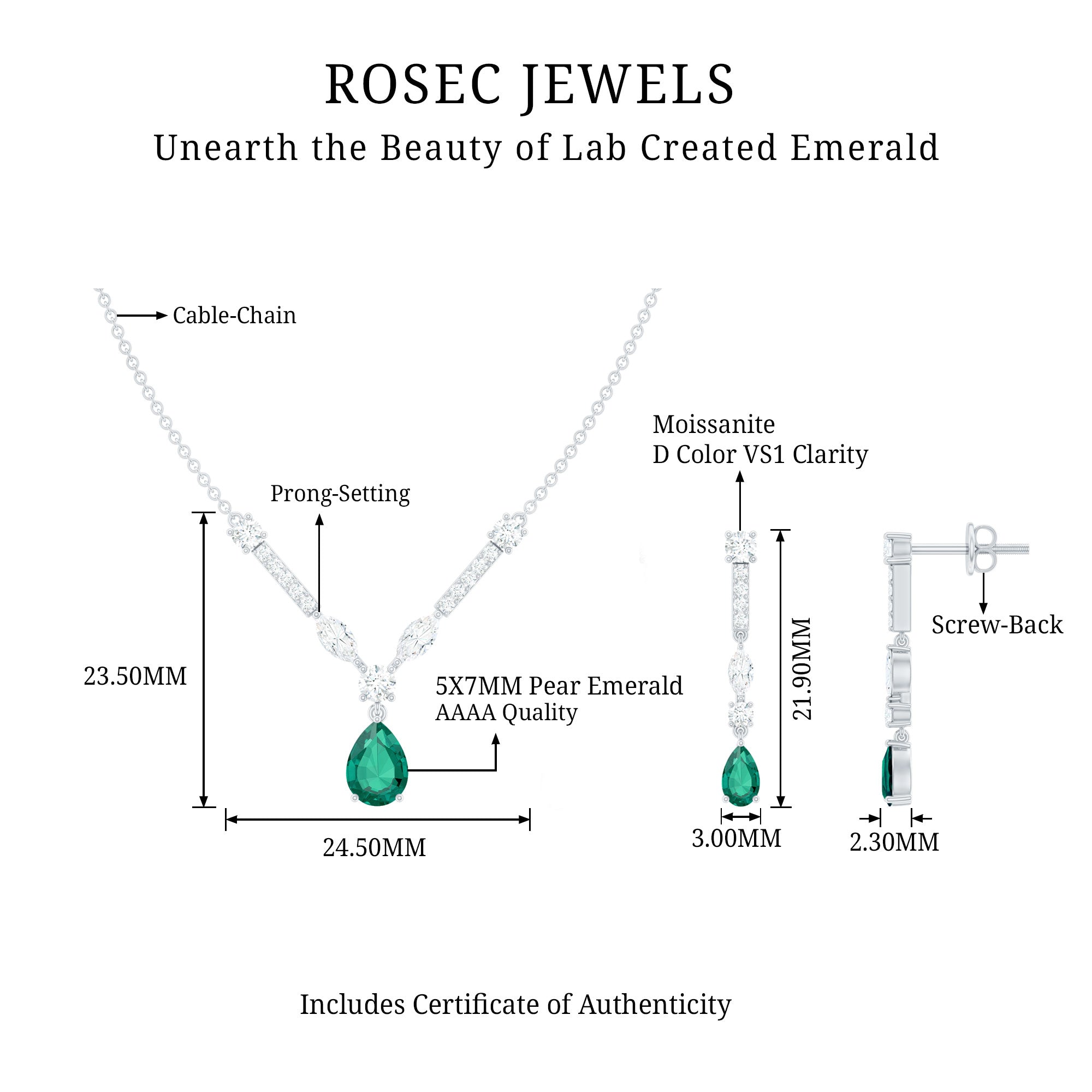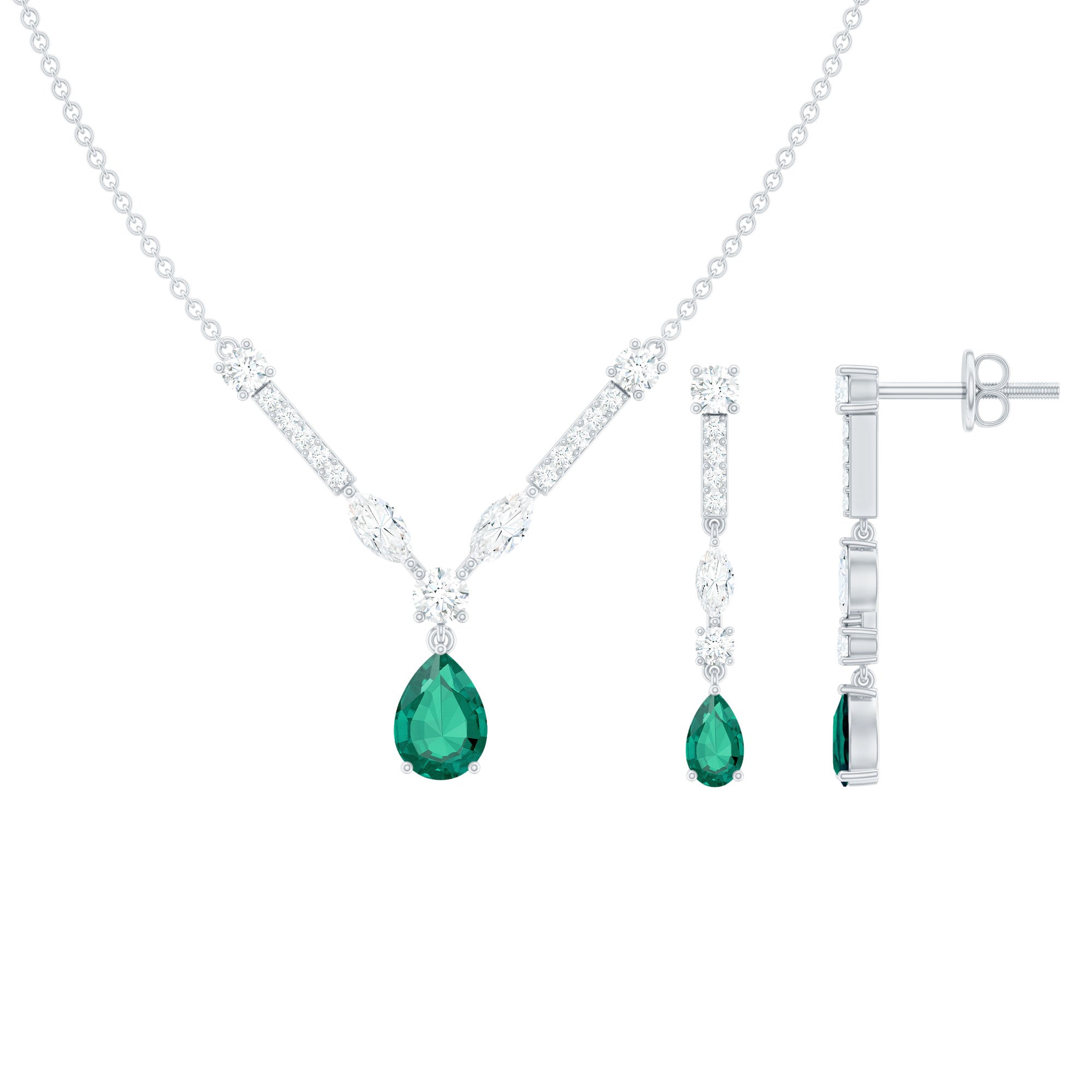 Created Emerald and Moissanite Drop Necklace Earrings Set