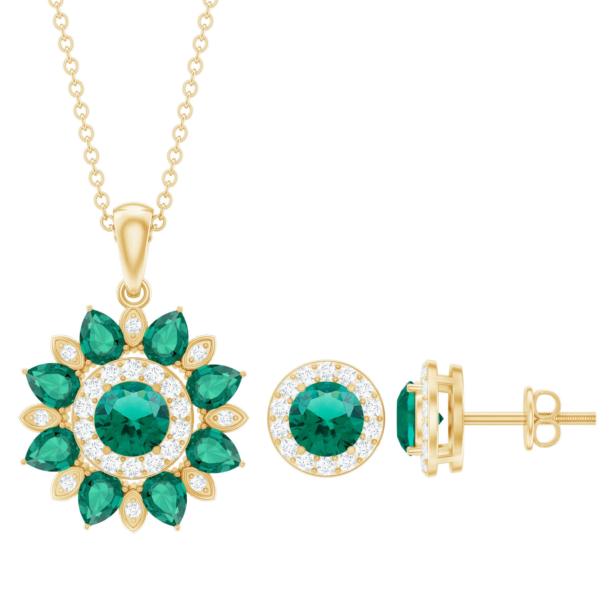 Created Emerald and Moissanite Flower Statement Jewelry Set in Gold