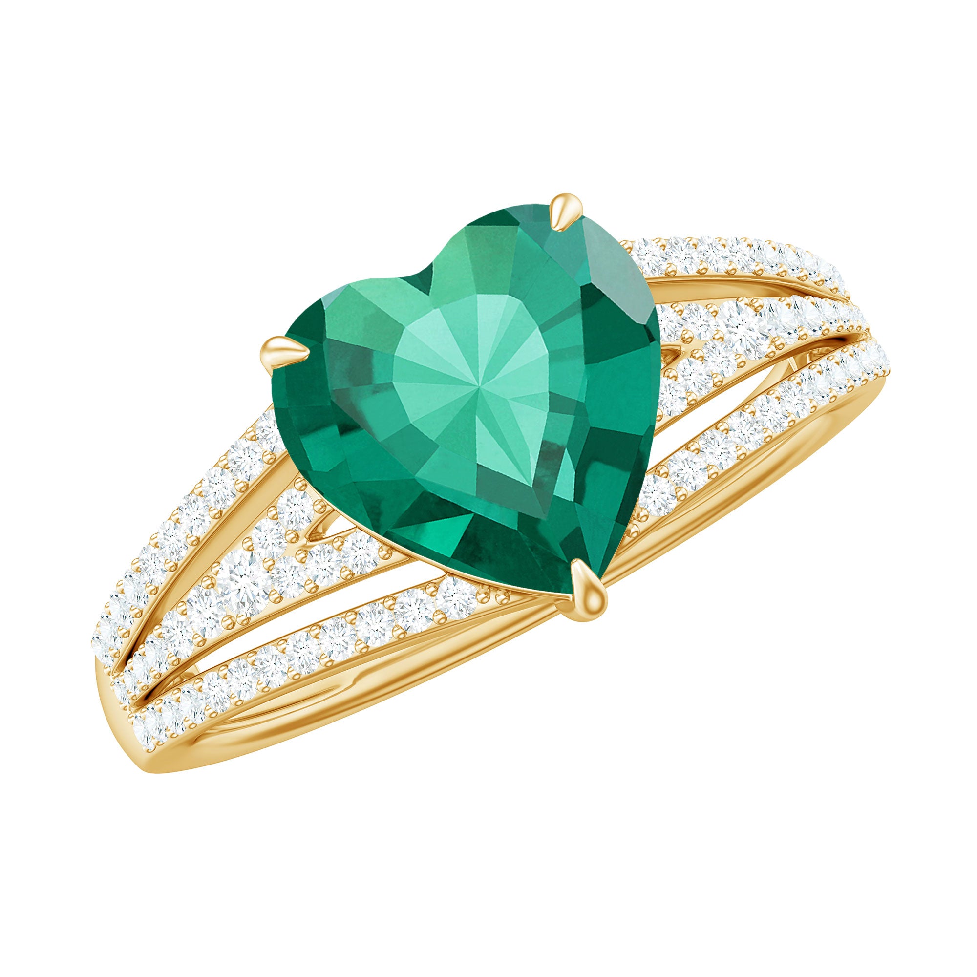 Designer 8 mm Lab Grown Emerald Heart Engagement Ring With Diamonds