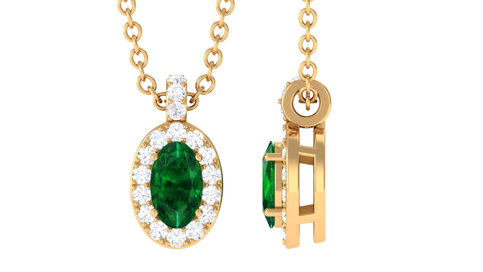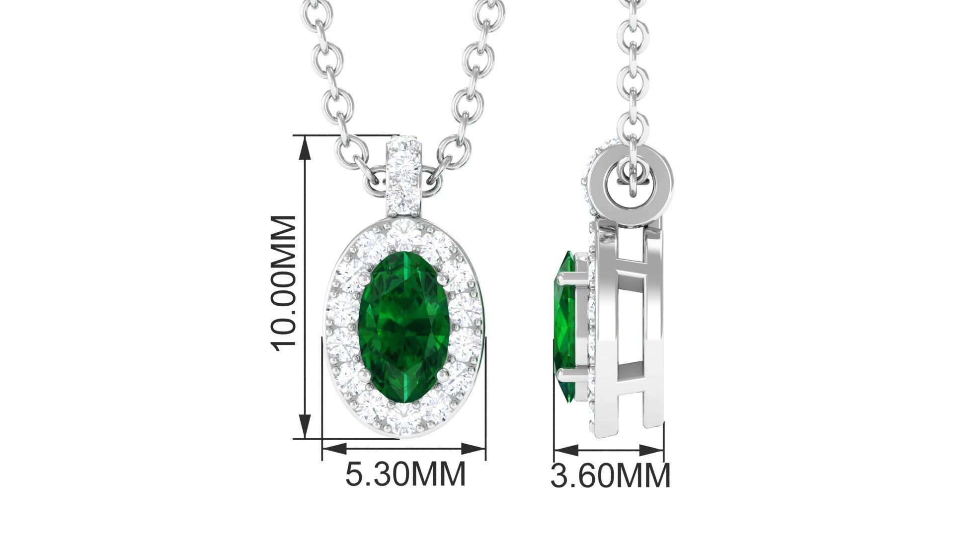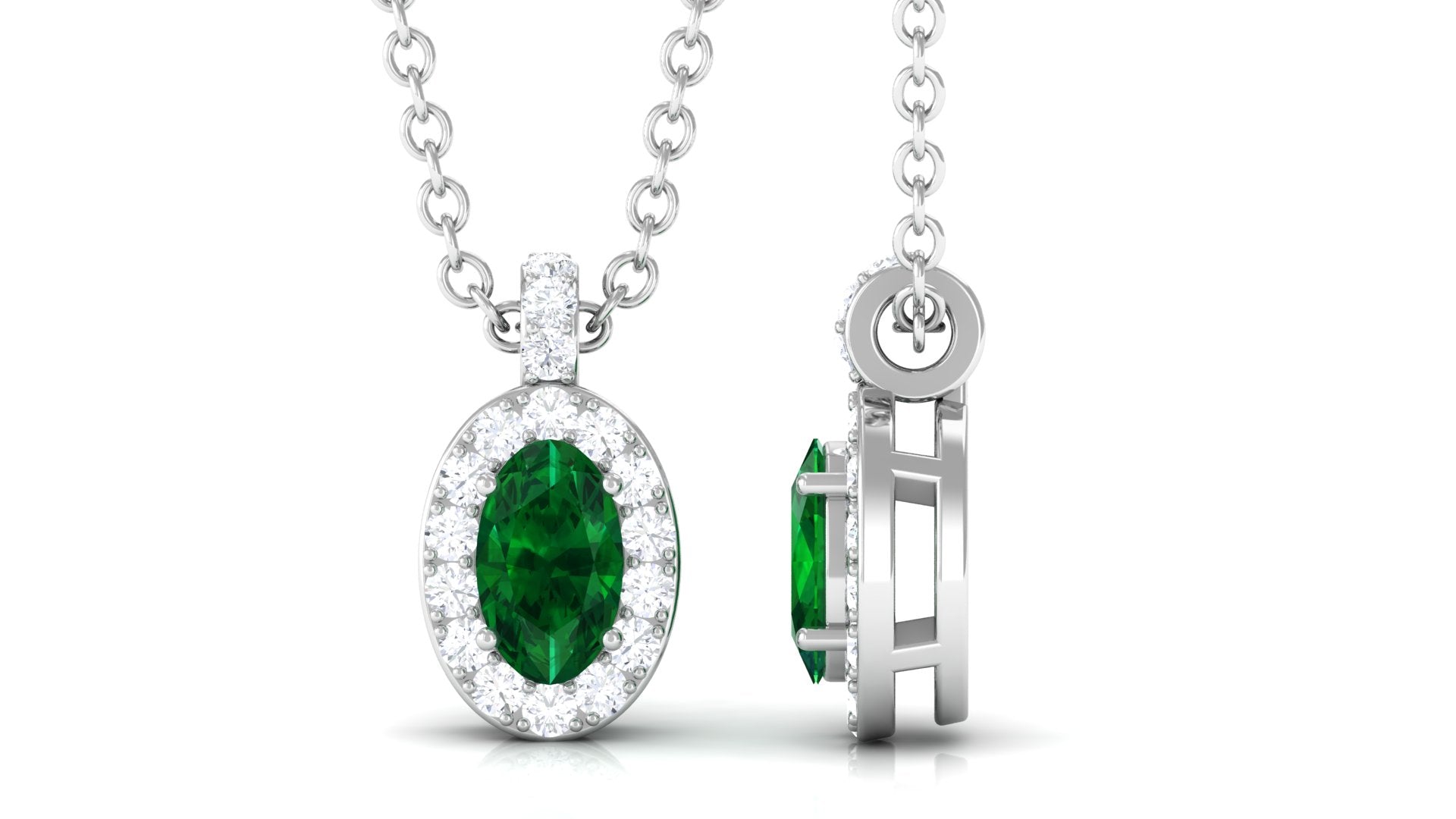 This Pendant Necklace is perfect for your special occasions. It features an Oval Cut Lab Created Emerald secured by 4 Prong Setting with Round Diamonds studded as Halo and on the bail of the pendant. You can style this Created Emerald Pendant with your everyday or party attires to stand out from the crowd. You can gift this Created Emerald Necklace as a Birthday Gift to your special person.
