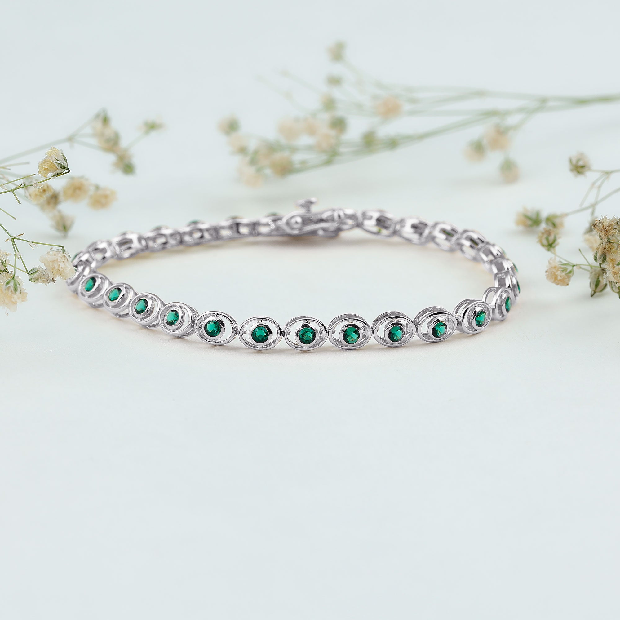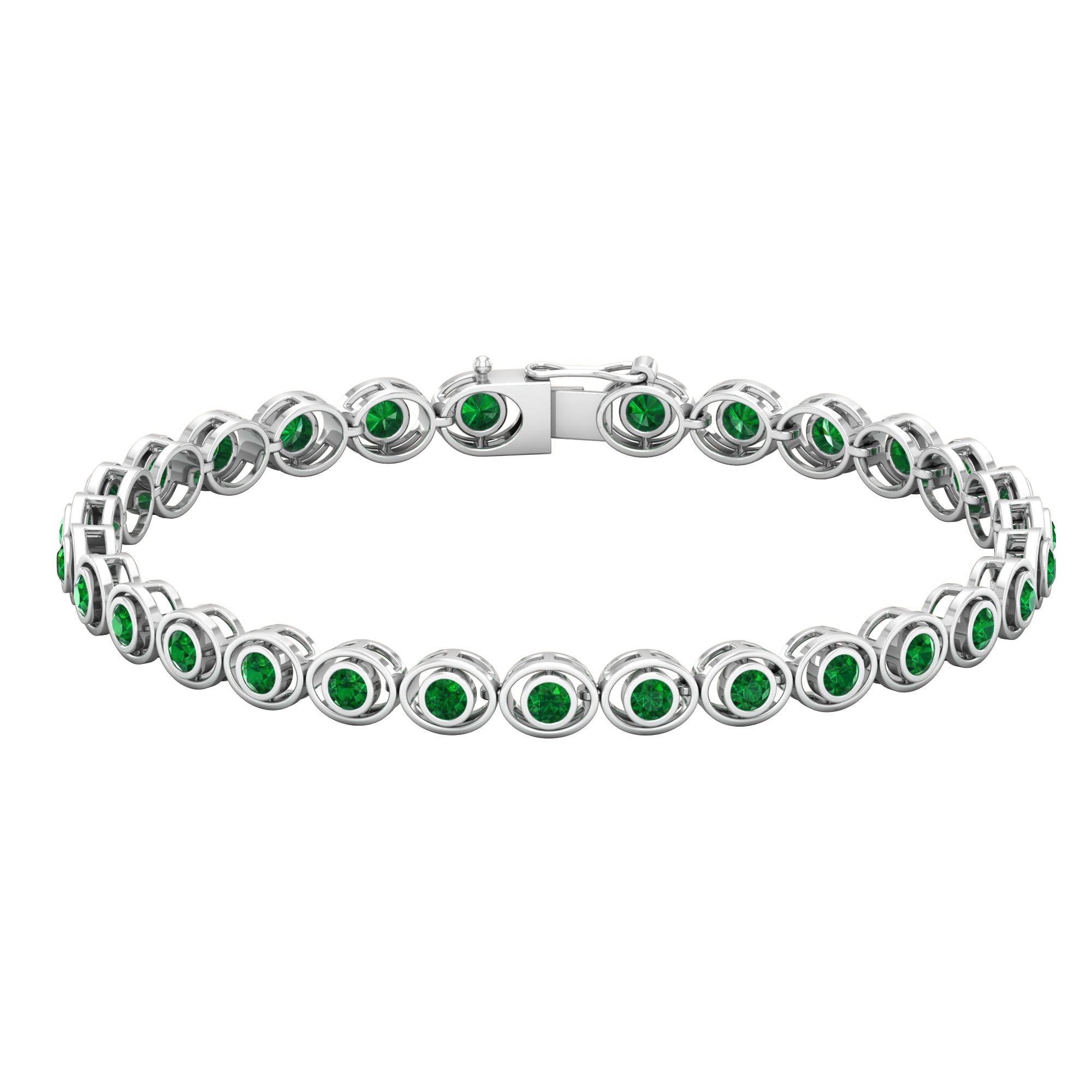 The Tennis Bracelet is a trendy jewelry piece that will magnify the charm of your wrist embellished with a sparkling Round Cut Lab Created Emerald set in Bezel Setting. Whether its your everyday or party attire, the Created Emerald Bracelet will never let you down. This Minimal Bracelet makes a sparkly accessory for your jewelry wardrobe.