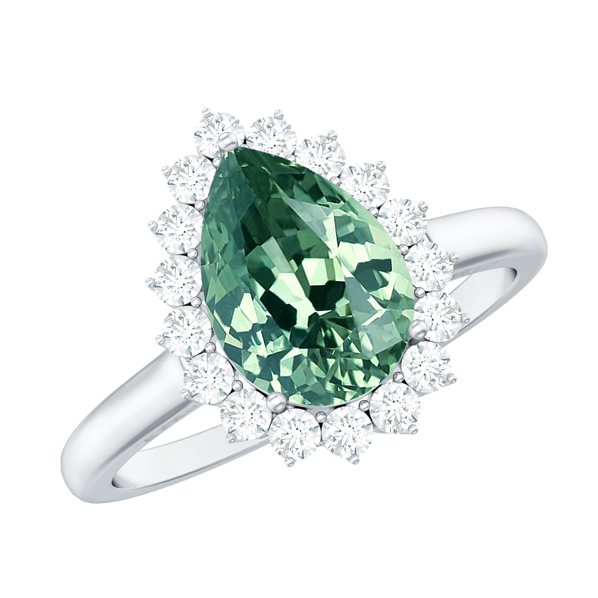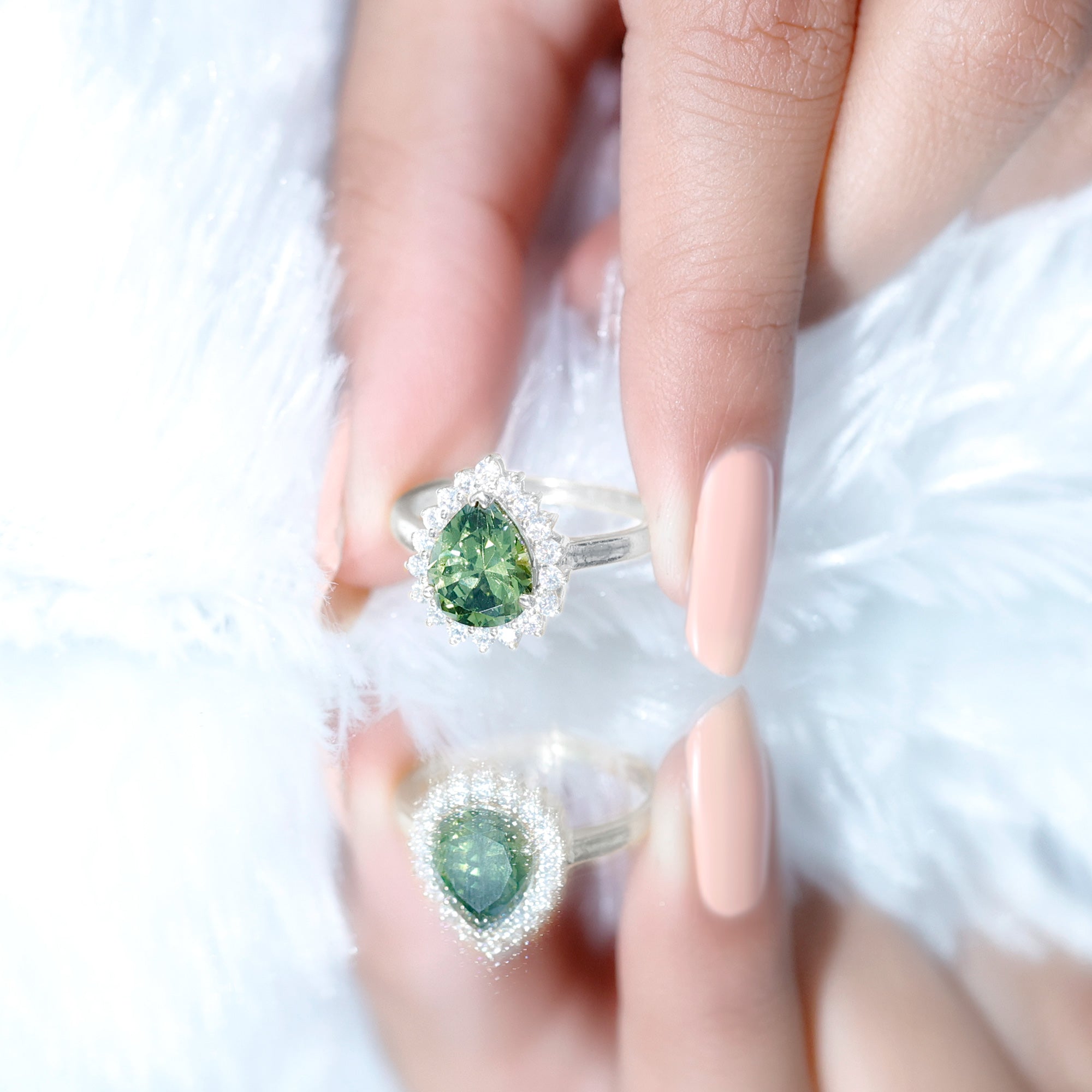Created Green Sapphire and Moissanite Halo Teardrop Ring