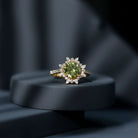 Created Green Sapphire Flower Engagement Ring with Moissanite
