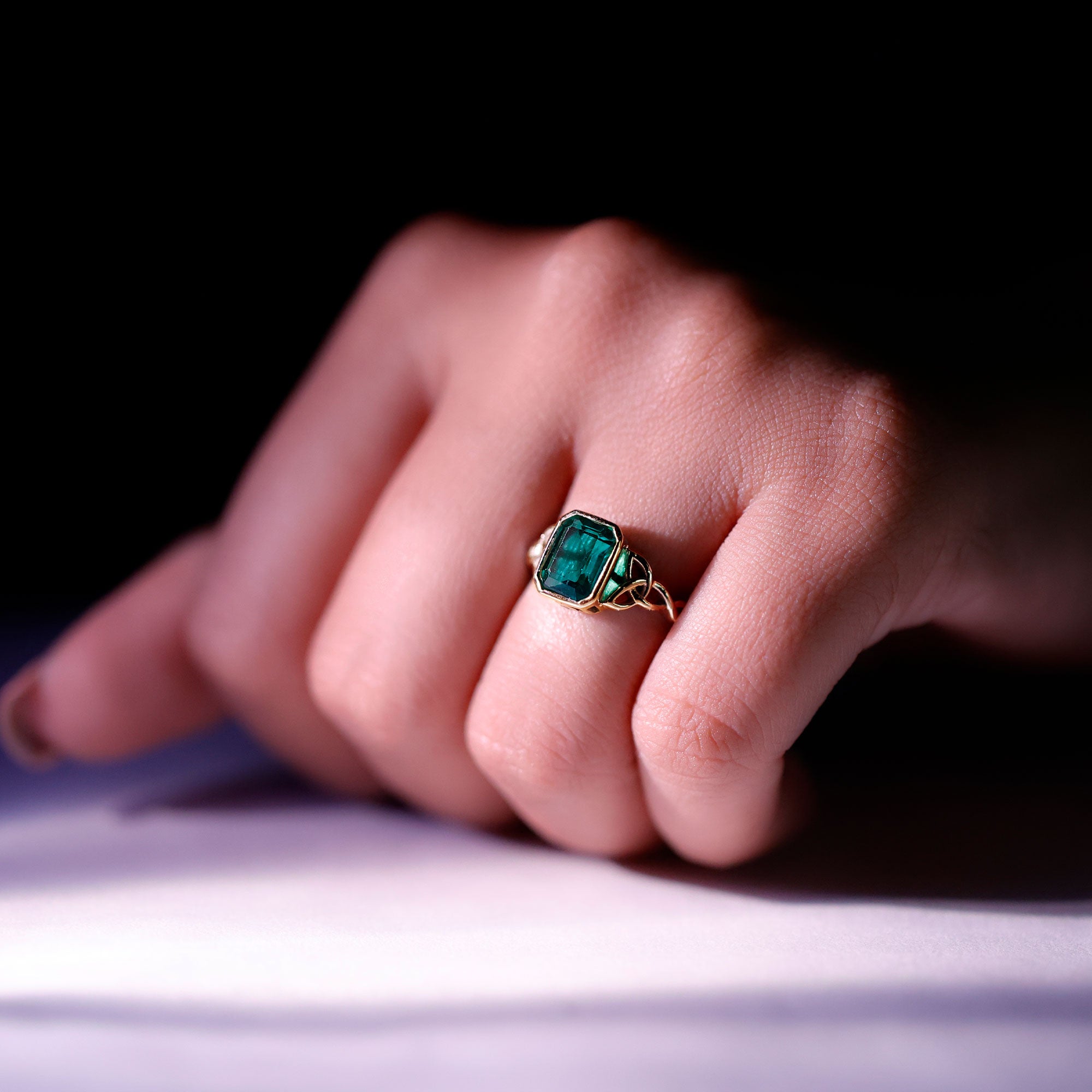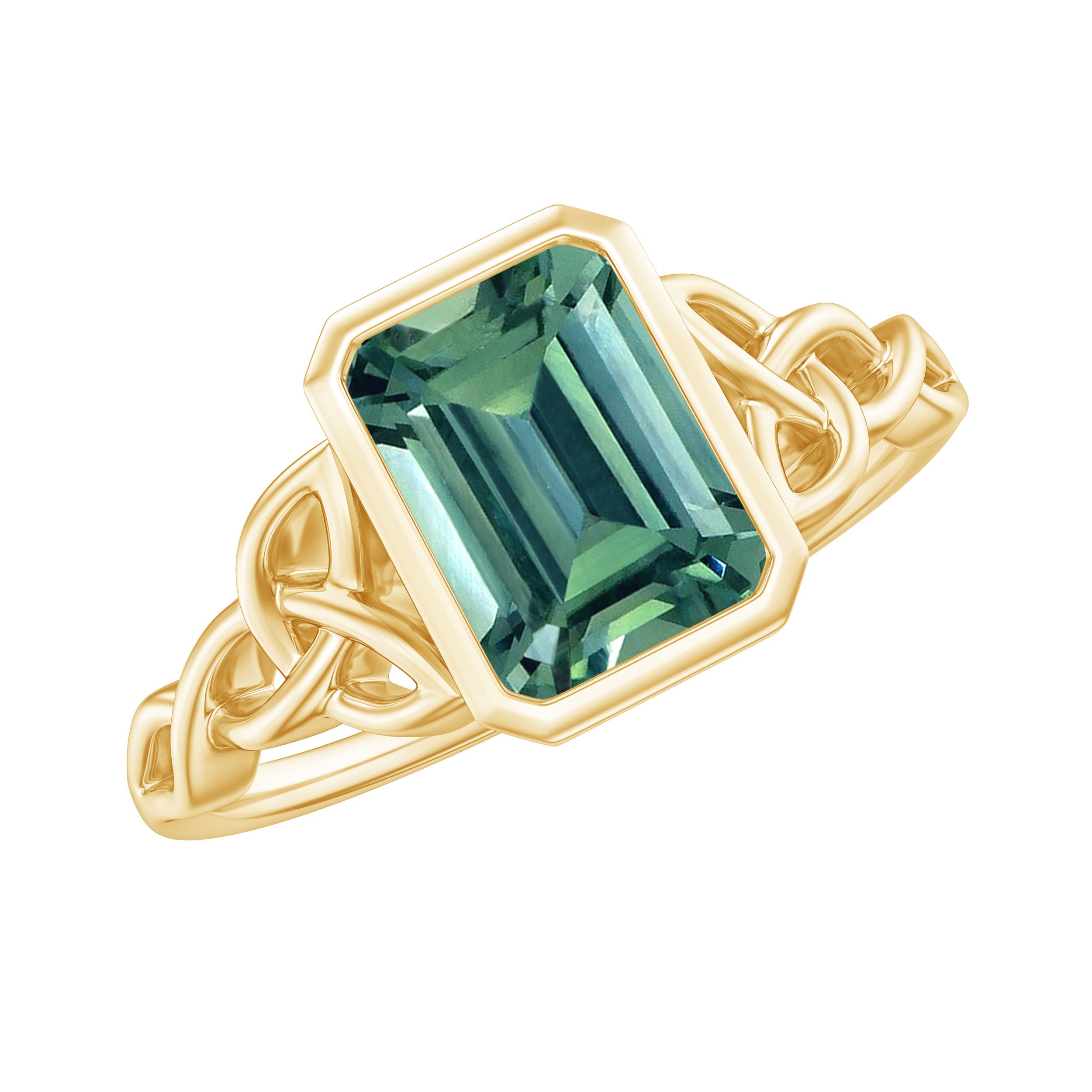 Eye-catching and elegant, this Celtic Engagement Ring features a perfect Emerald Cut Lab Created Green Sapphire secured by Prong Setting flanked by entrancing open Celtic knots as it represents love, unity, and eternal life. The Solitaire Ring comes in our ready-to-gift Signature Jewelry Box. Declare your feelings for your partner by getting this Created Sapphire Ring and she will find reasons to wear it again and again.