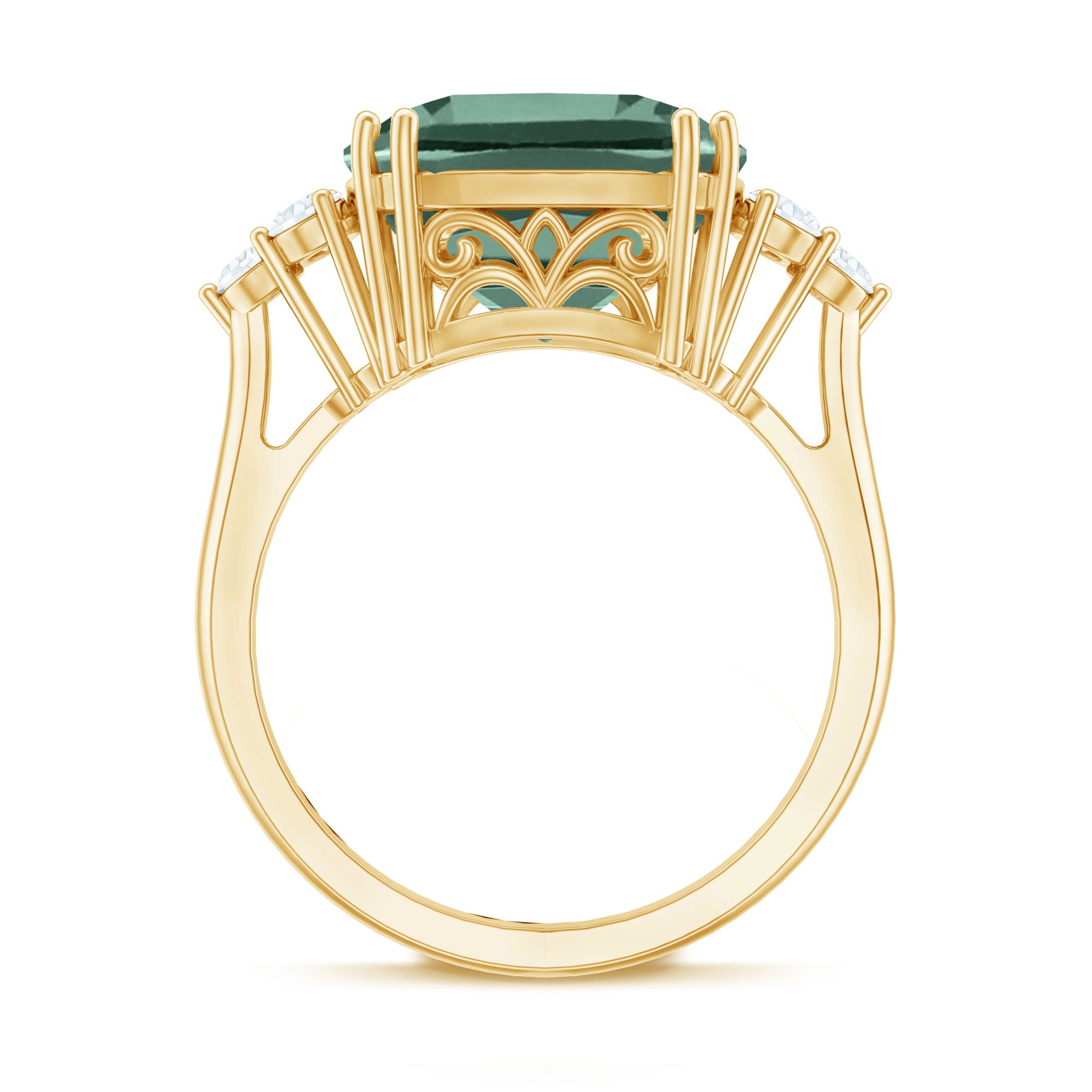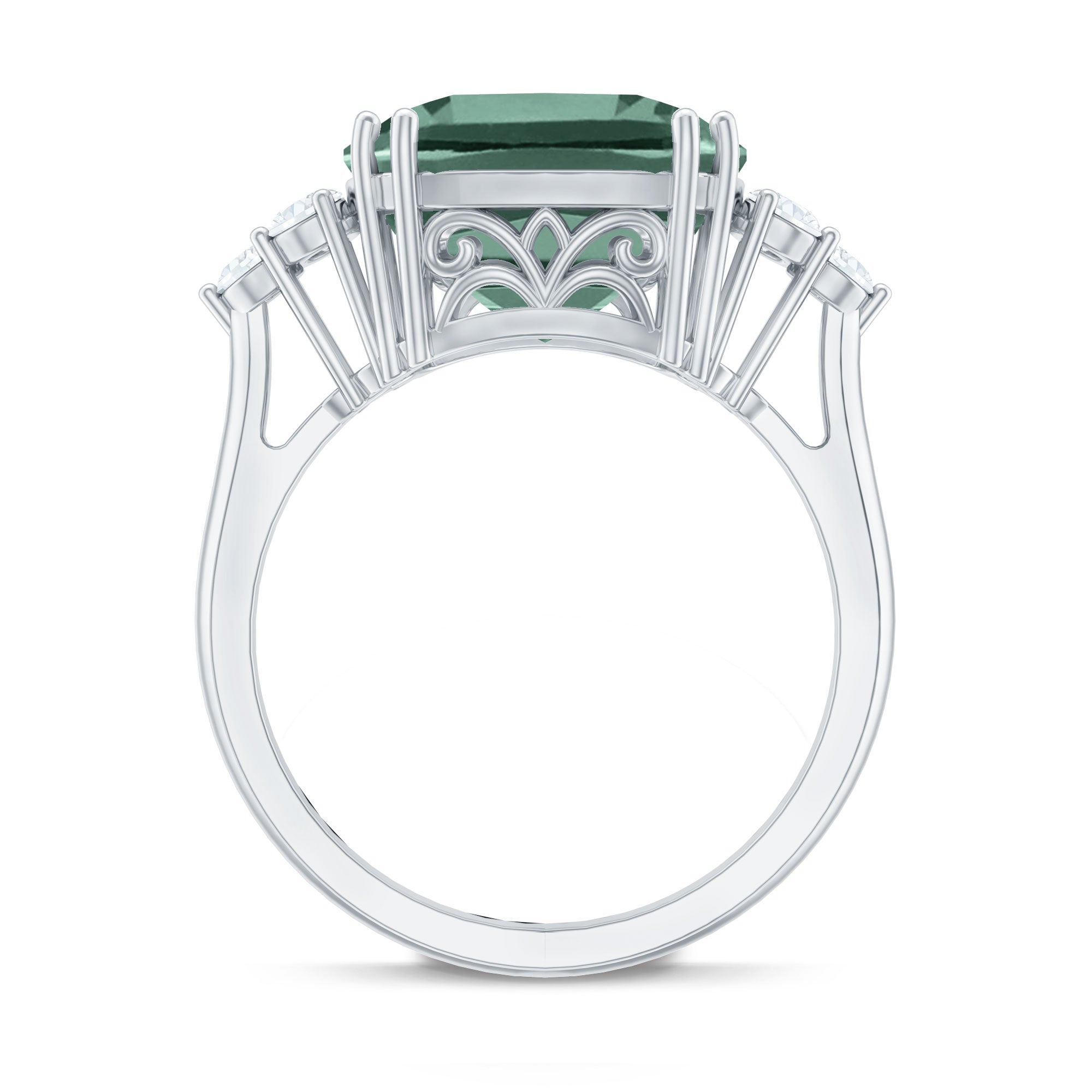 Created Green Sapphire Solitaire Engagement Ring with Moissanite Trio