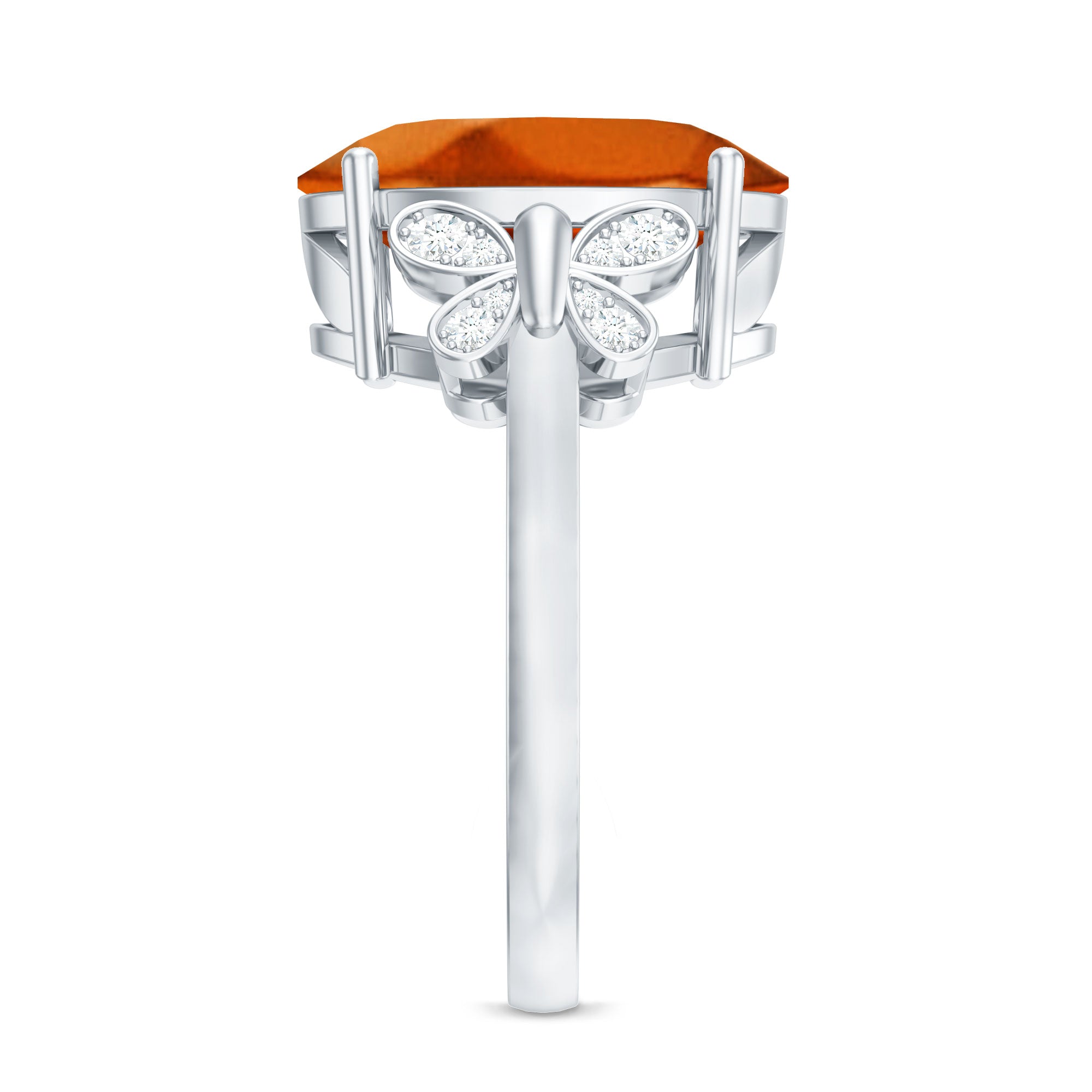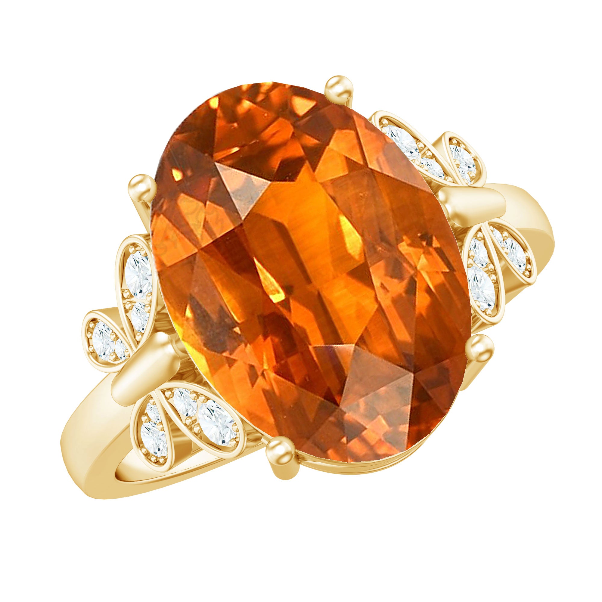 Created Orange Sapphire Oval Engagement Ring with Diamond
