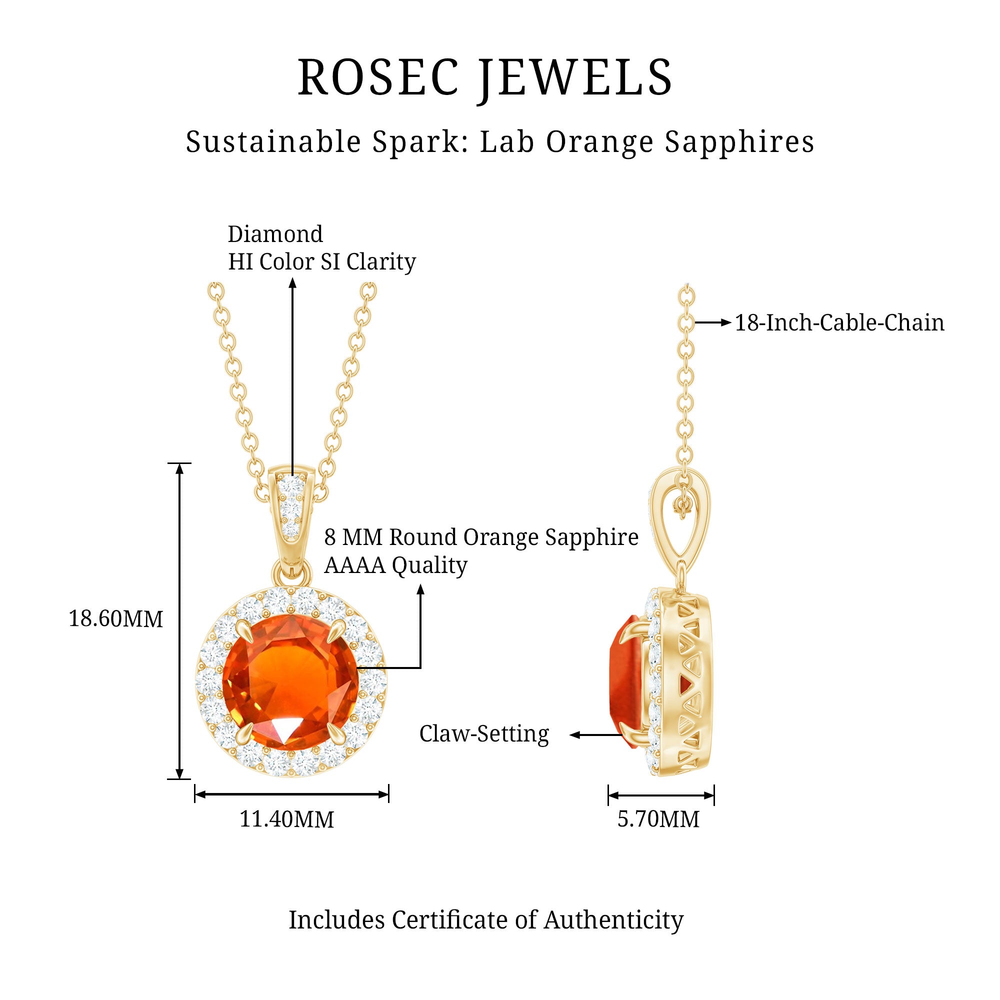 Created Orange Sapphire Pendant Necklace with Diamond Halo