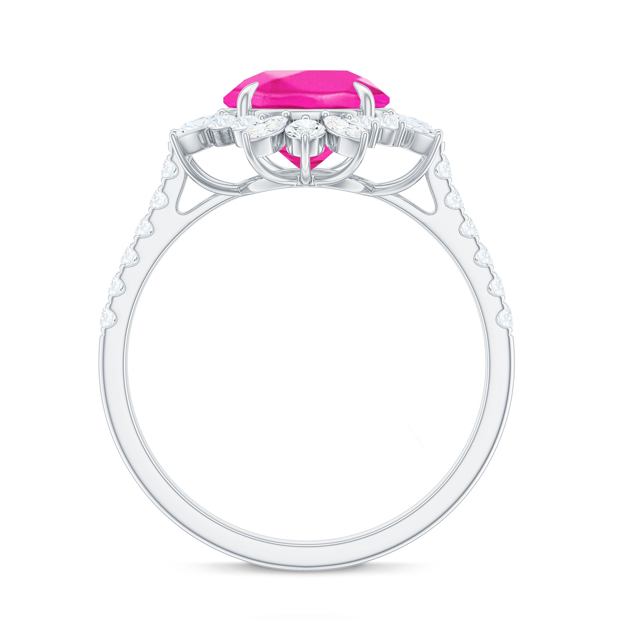 Created Pink Sapphire Cocktail Ring with Moissanite Floral Halo