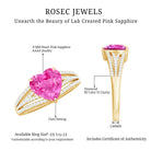 The Heart Engagement Ring is beautifully adorned with Heart Shaped Lab Created Pink Sapphire secured in Claw Setting while Round Shape Diamond studded on the split shank. Get this Created Pink Sapphire Ring to make your favorite person feel extra special by presenting it as an anniversary gift for her.