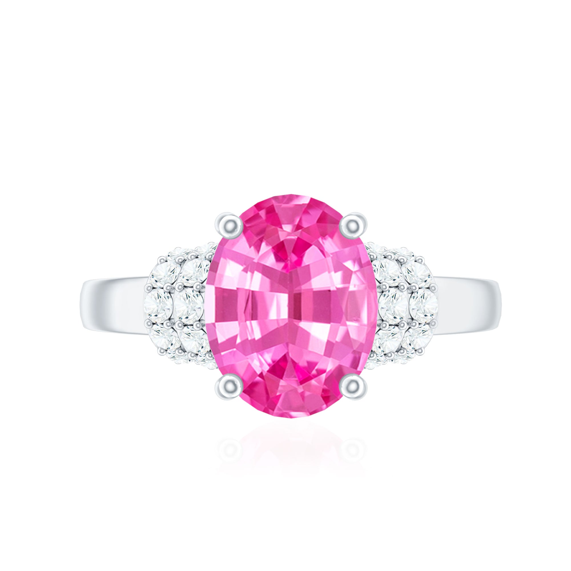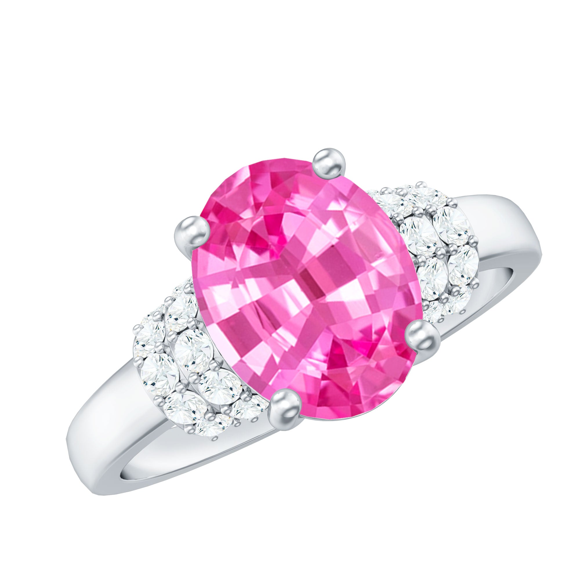 Created Pink Sapphire Oval Engagement Ring with Diamond Accent