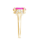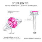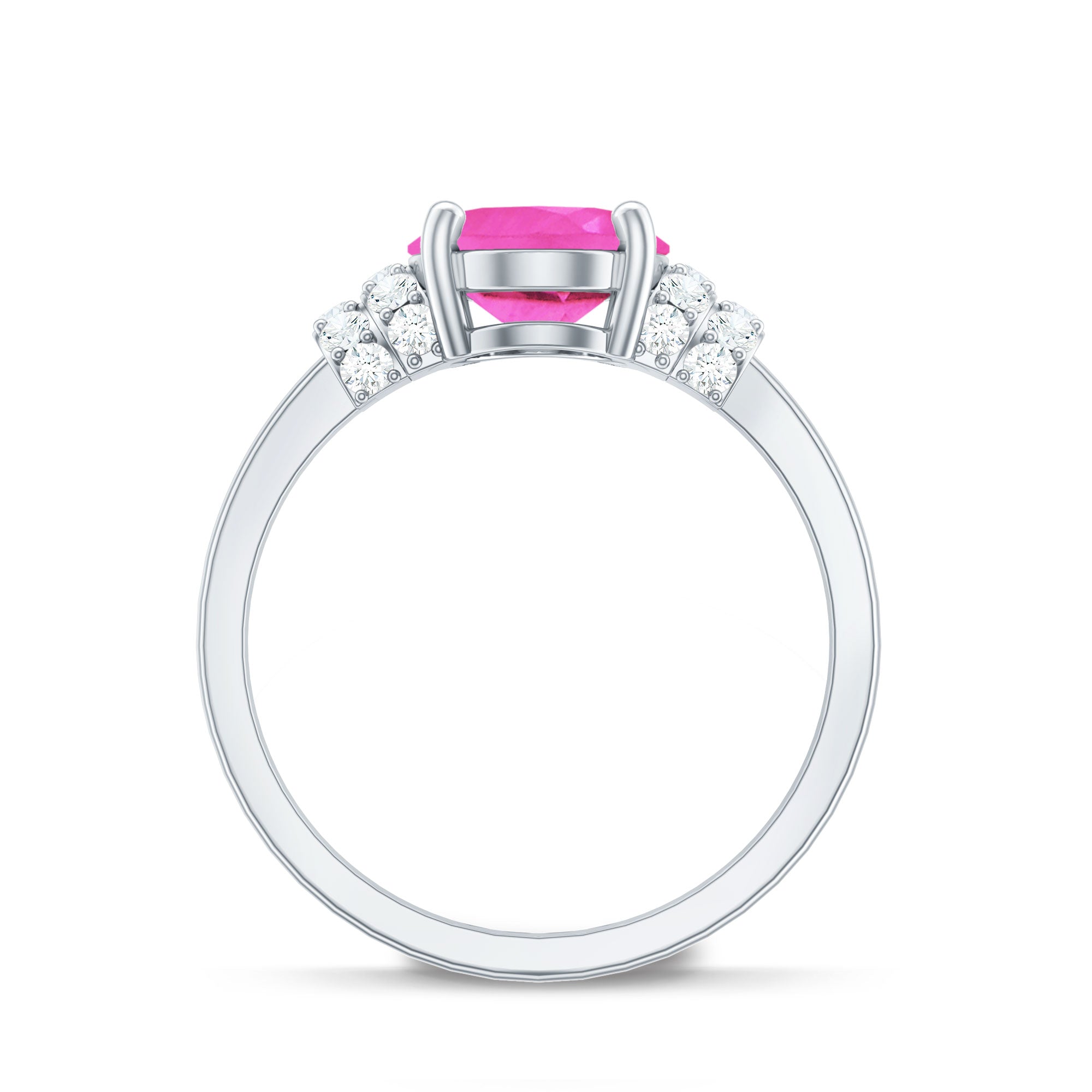 The alluring Engagement Ring is beautifully adorned with an Oval Cut Lab Created Pink Sapphire secured by 4 Prong Setting while more Round Diamond give it a shiny look. It doesnt matter what the occasion is, our Created Pink Sapphire Ring will never let you down, whether its a day on the go or a night out with your girls.