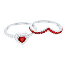 Lab Created Ruby and Diamond Heart Wedding Ring Set