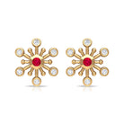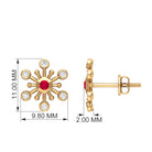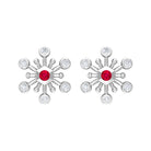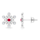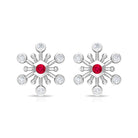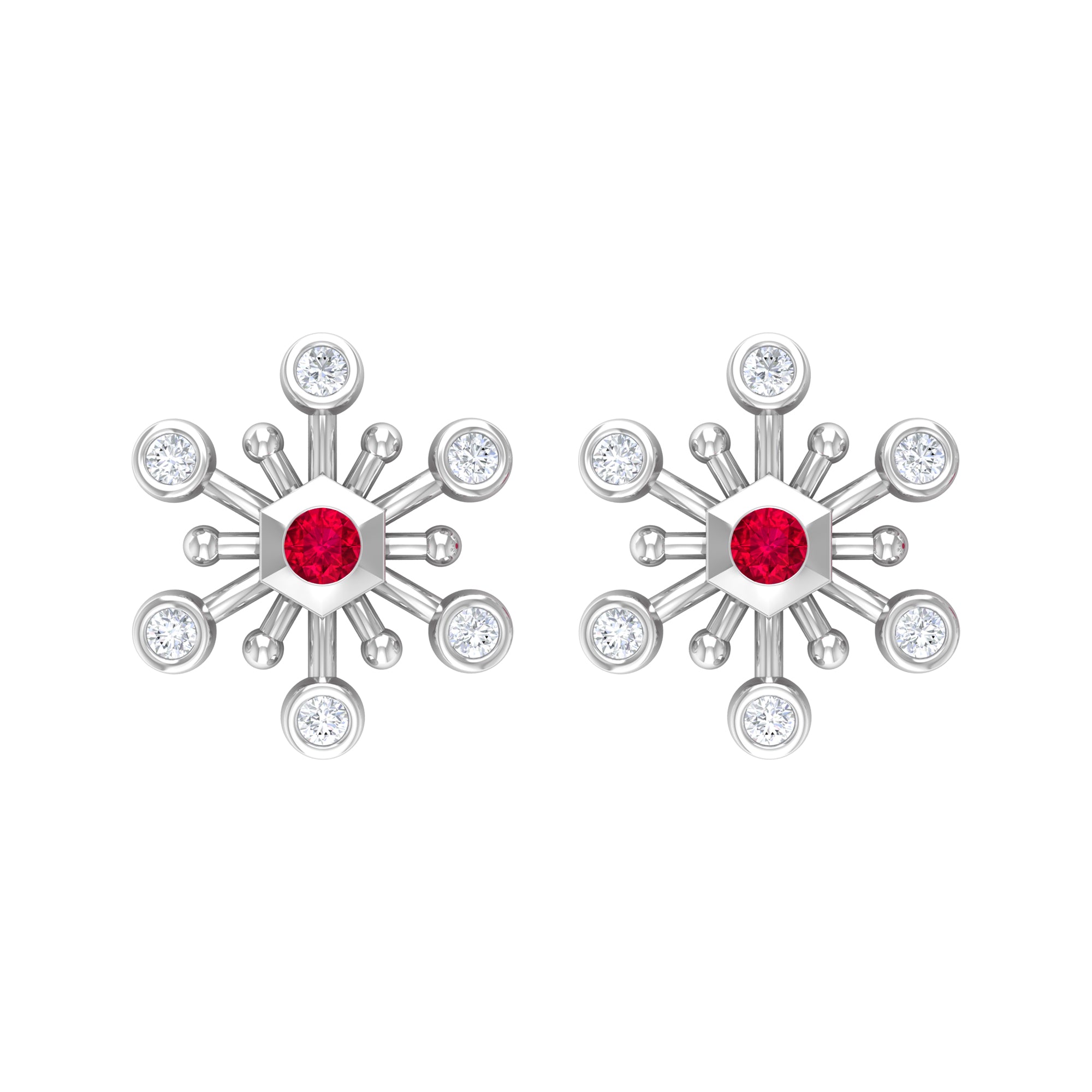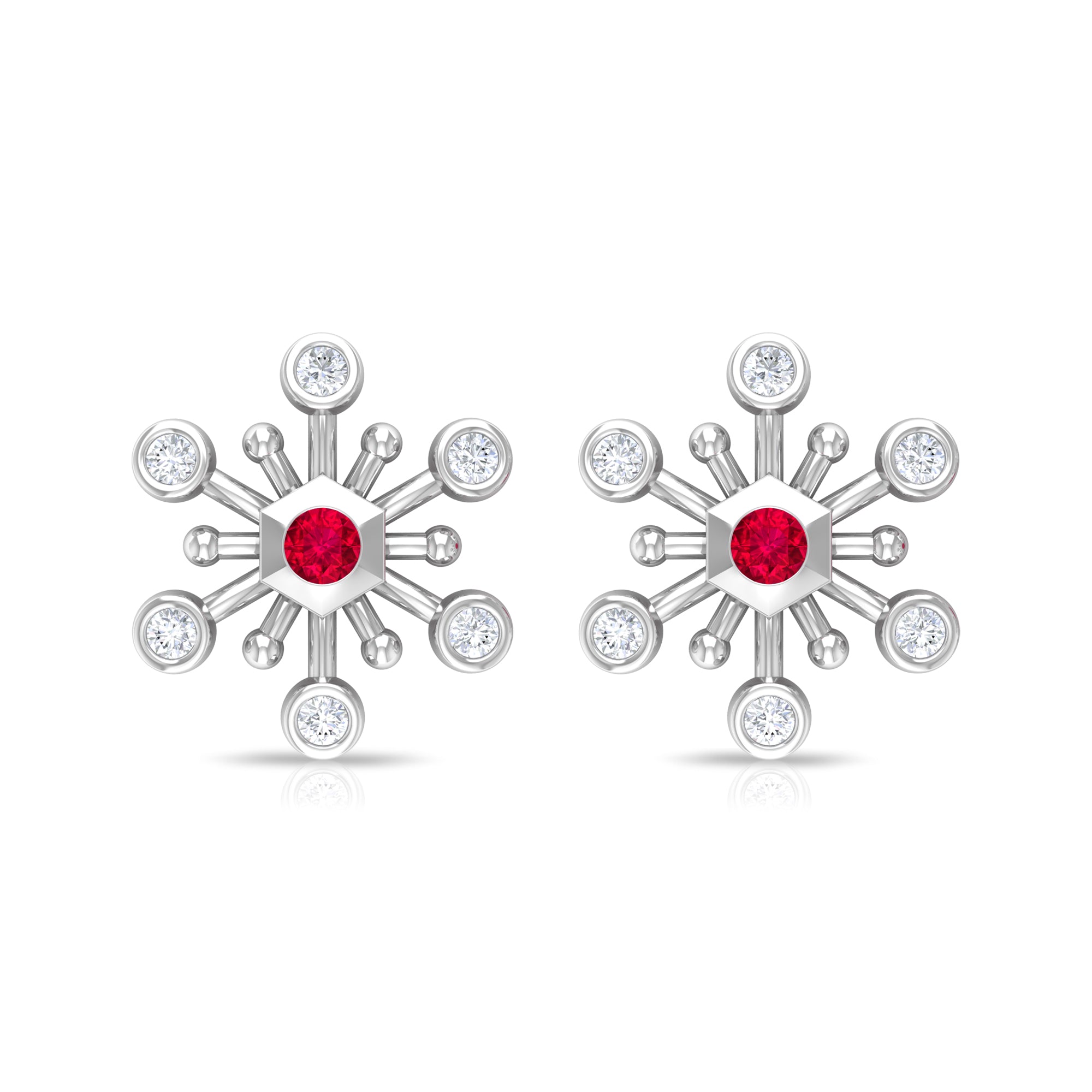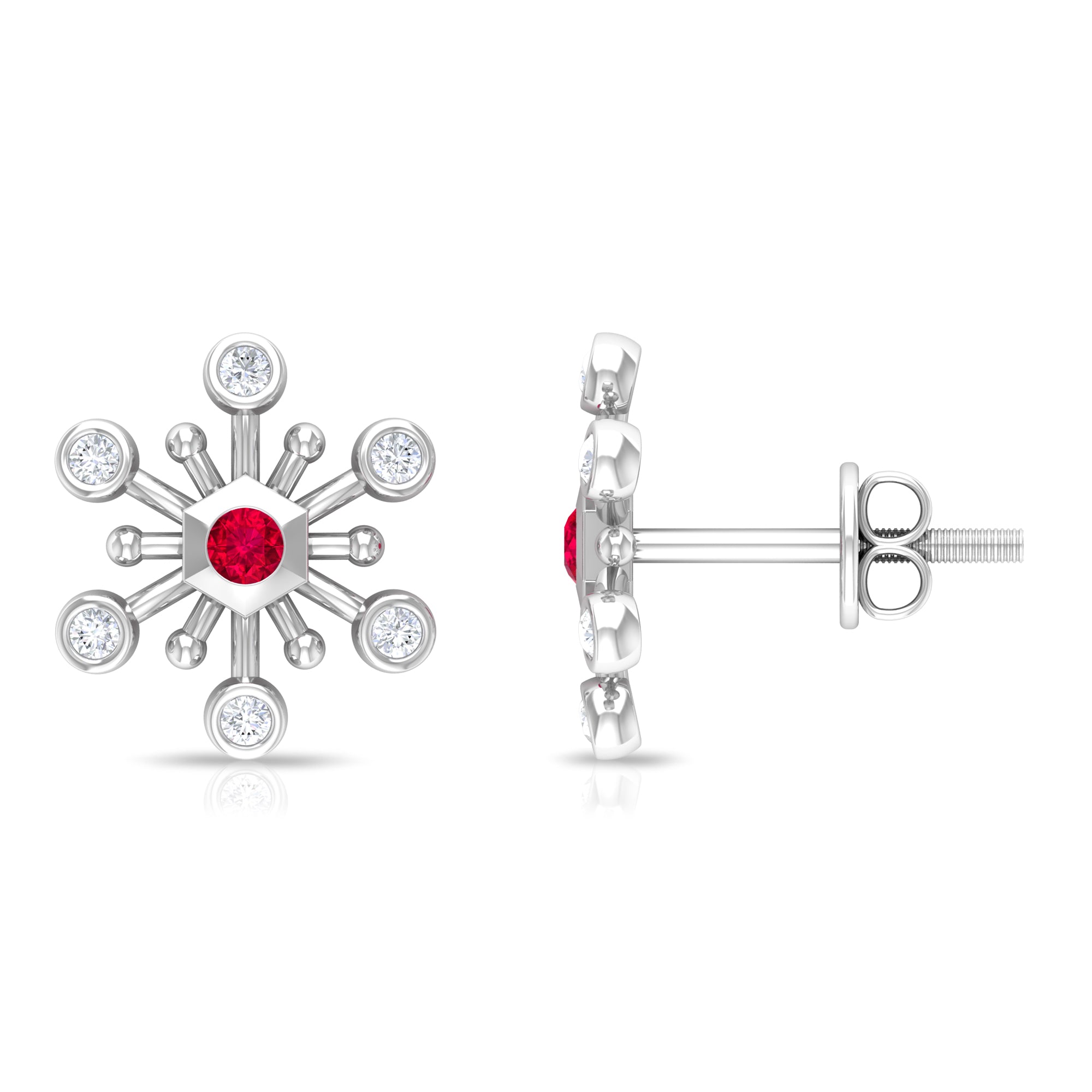 Created Ruby and Diamond Snowflake Contemporary Stud Earrings
