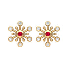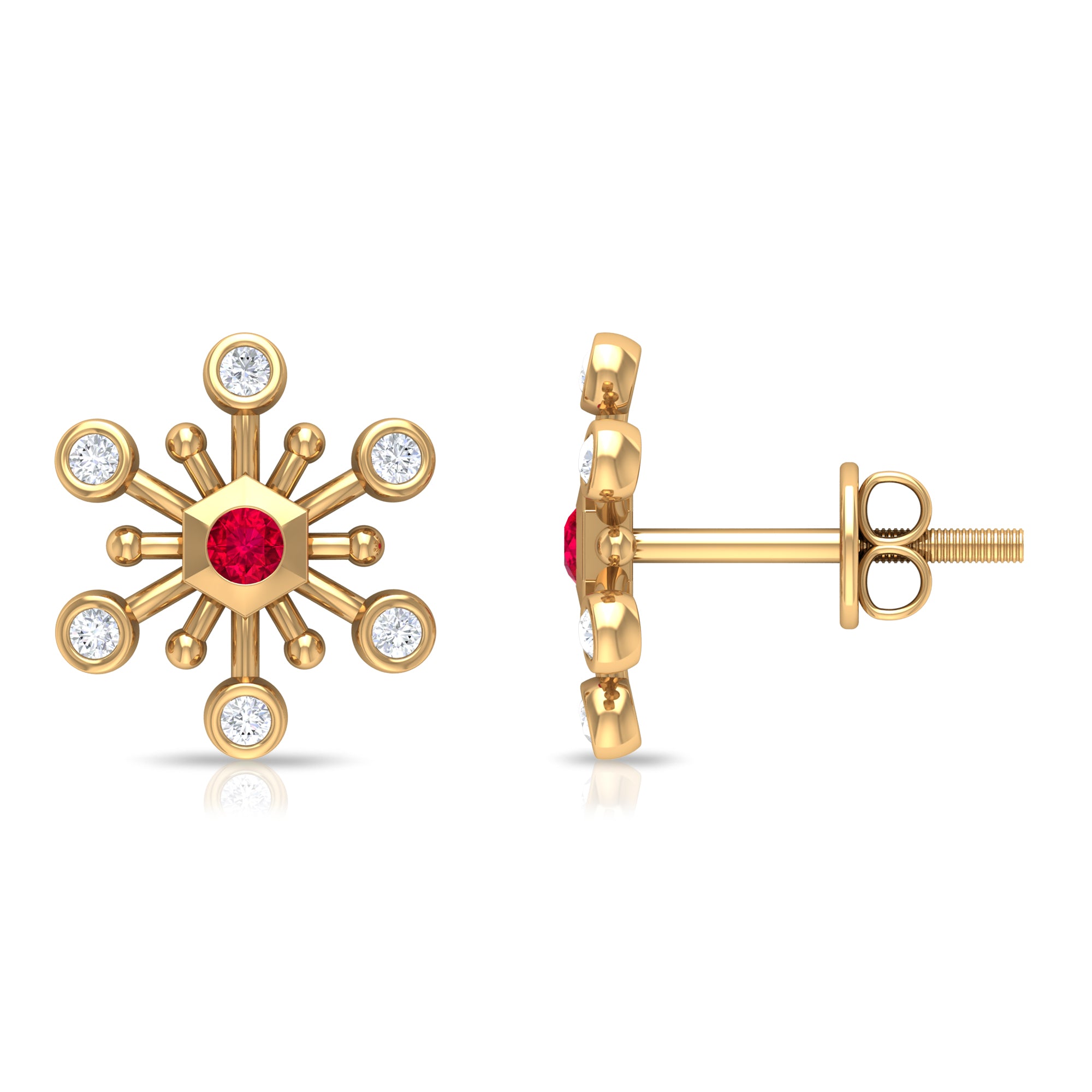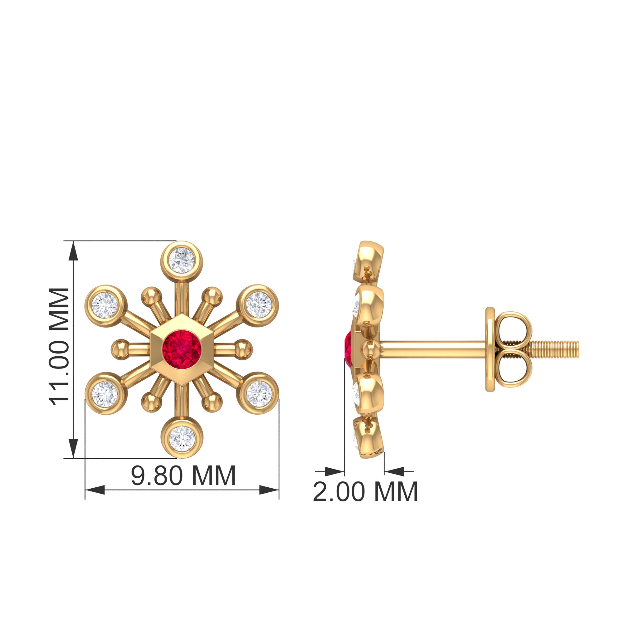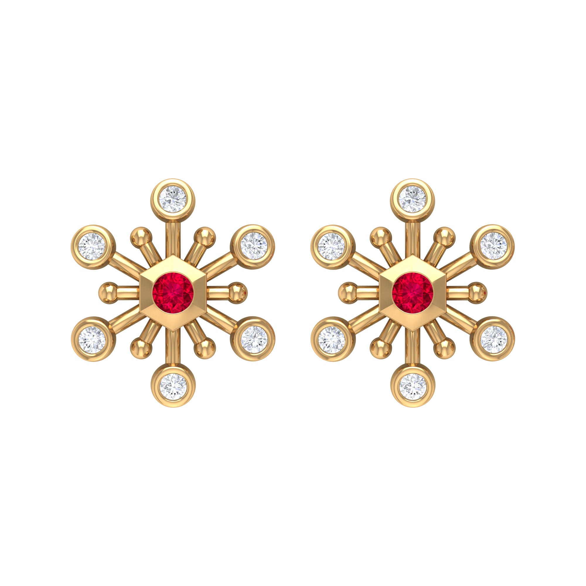 Our Diamond Snowflake Earrings are a mesmerizing blend of elegance and beauty. These earrings feature Round Shape Lab Created Rubies and Diamonds, carefully set within a secure Bezel Setting, creating a captivating and enchanting design.