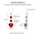 Created Ruby and Moissanite Heart Dangle Pendant Necklace