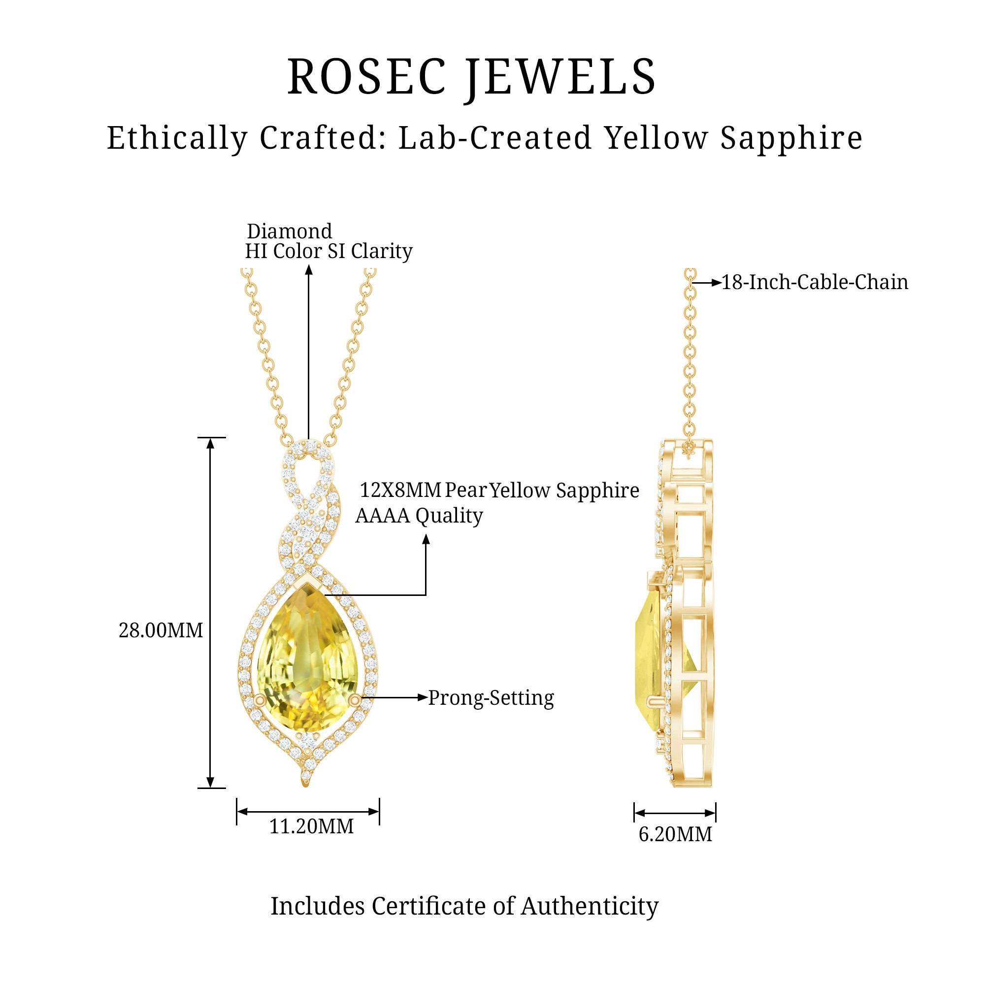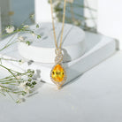 Discover the exquisite charm of the Teardrop Pendant, radiating a timeless elegance that captivates. The pear-shaped created yellow sapphire effortlessly enchants, accompanied by brilliant Diamond stones that infuse a mesmerizing sparkle. With a graceful suspension, this pendant transforms into the perfect accessory, elevating any outfit and making a resounding declaration of sophistication and grace.
