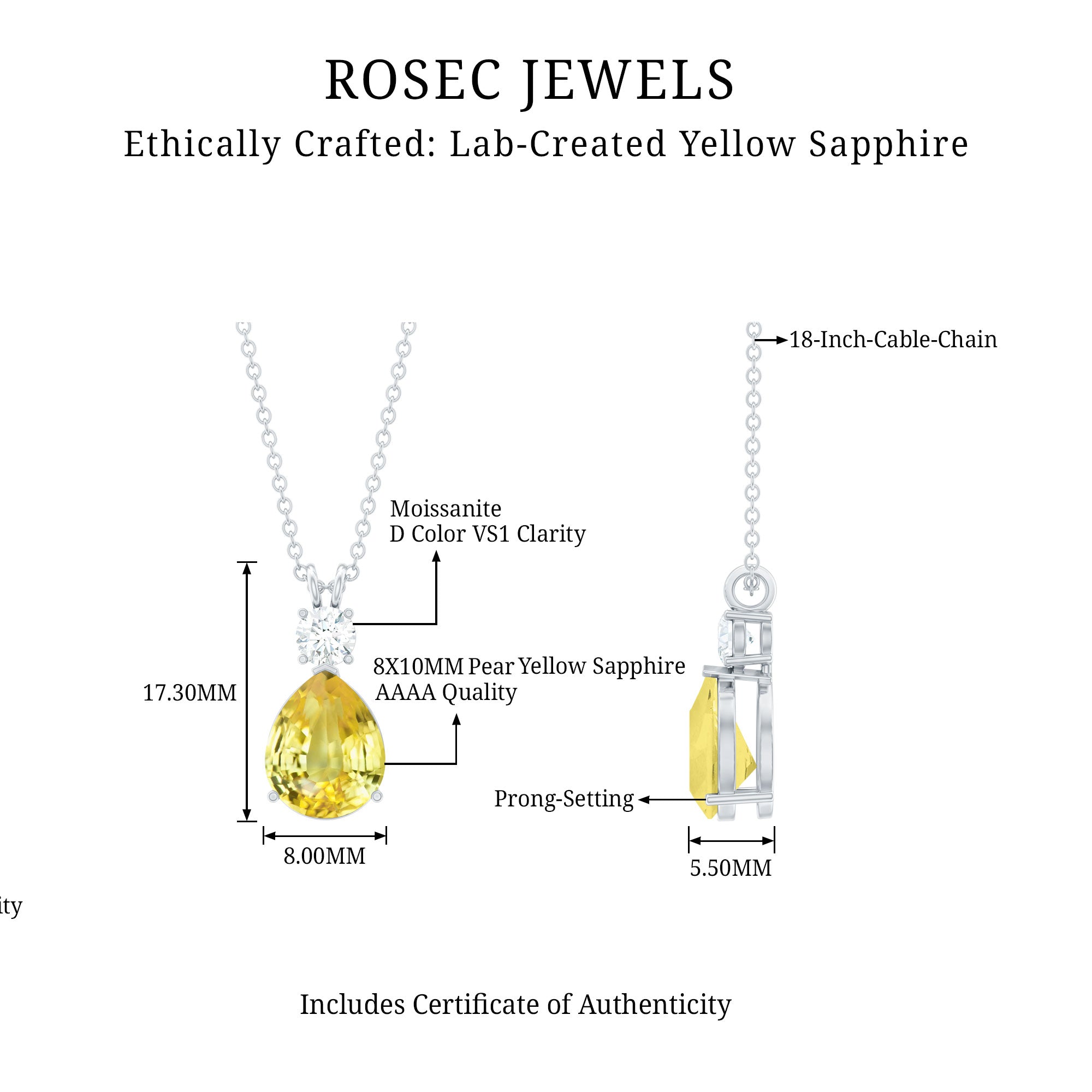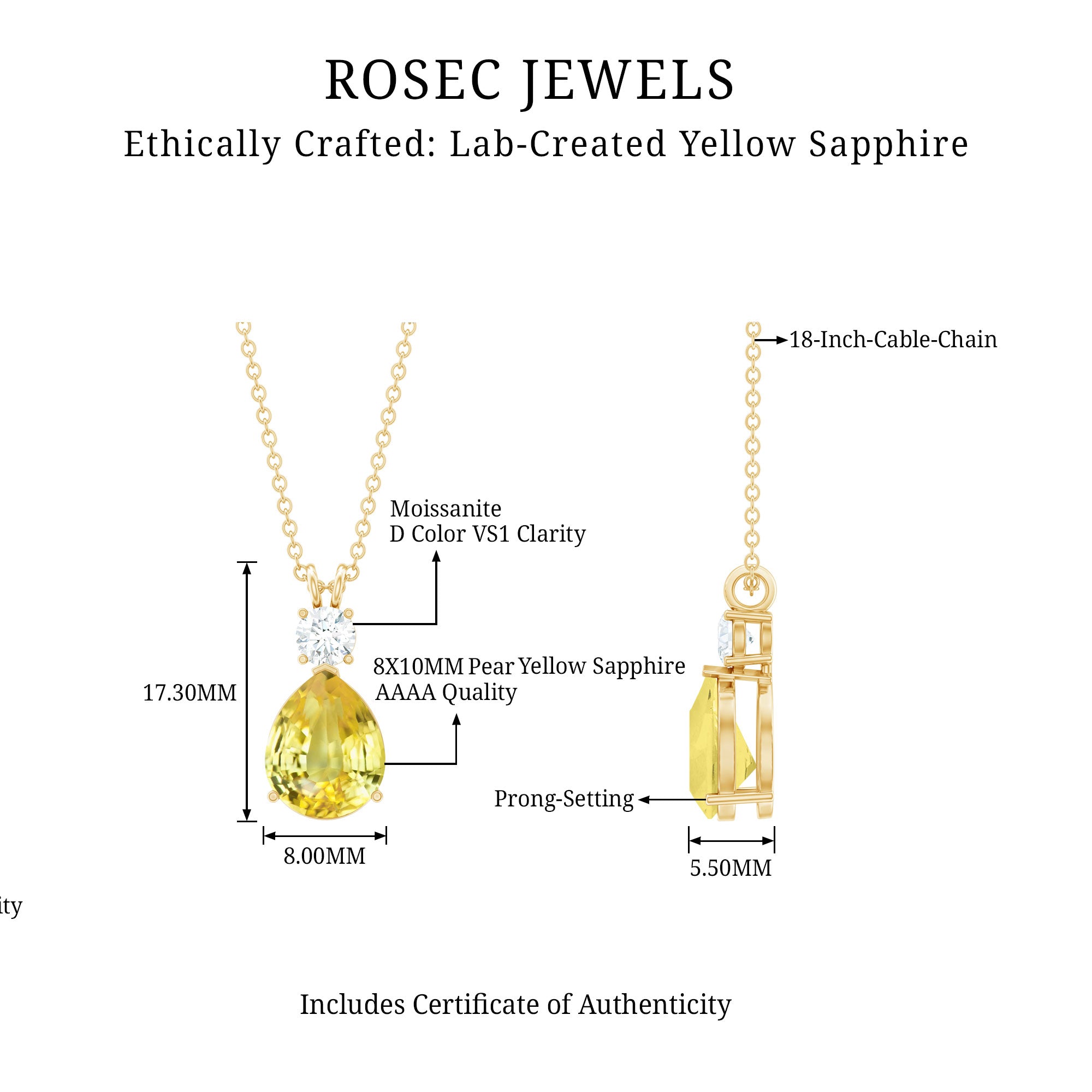 Let her know how much you love her by presenting this Drop Pendant Necklace to her. Embellished with Pear Cut Lab Created Yellow Sapphire secured in Prong Setting while Round Cut Moissanite studded on the top of it.