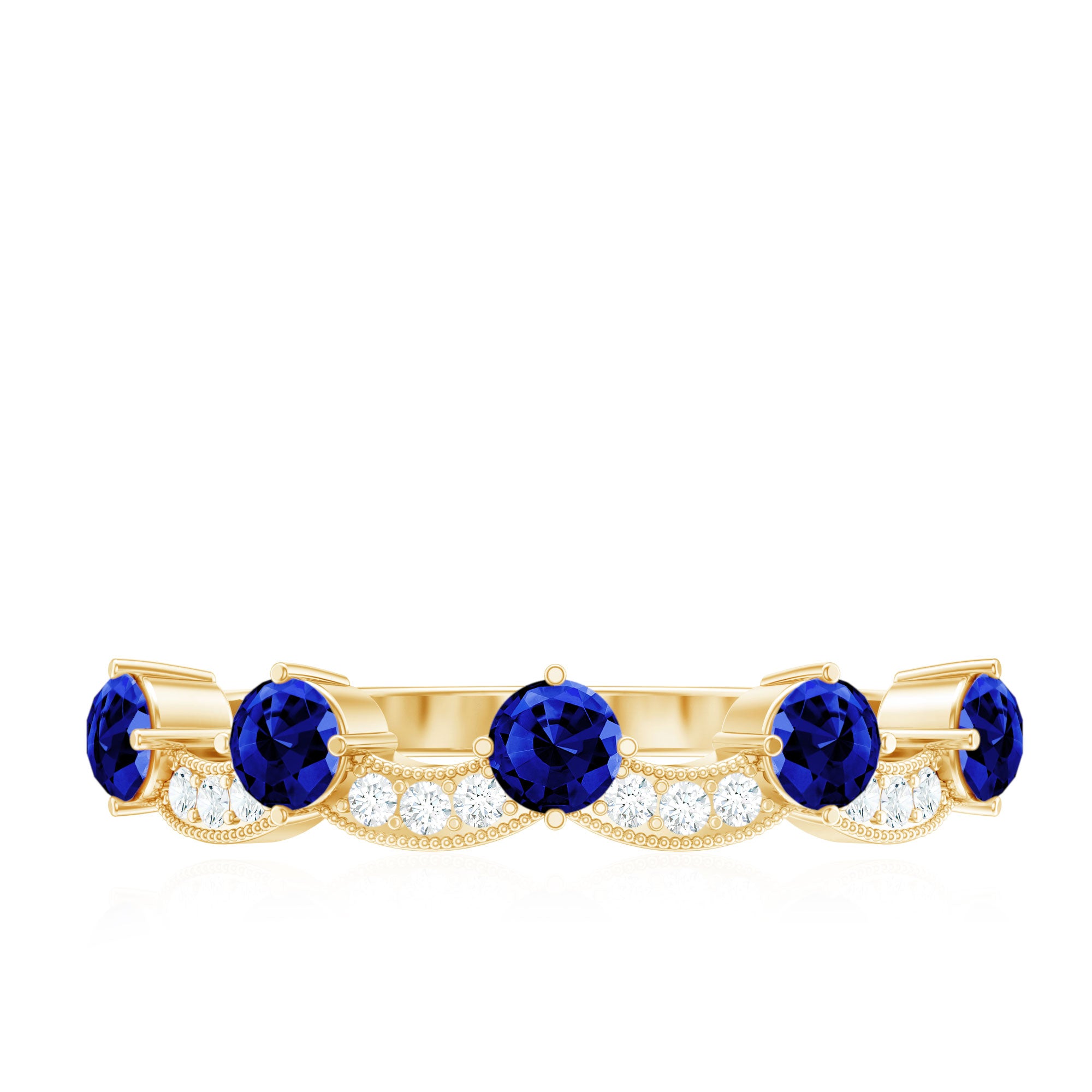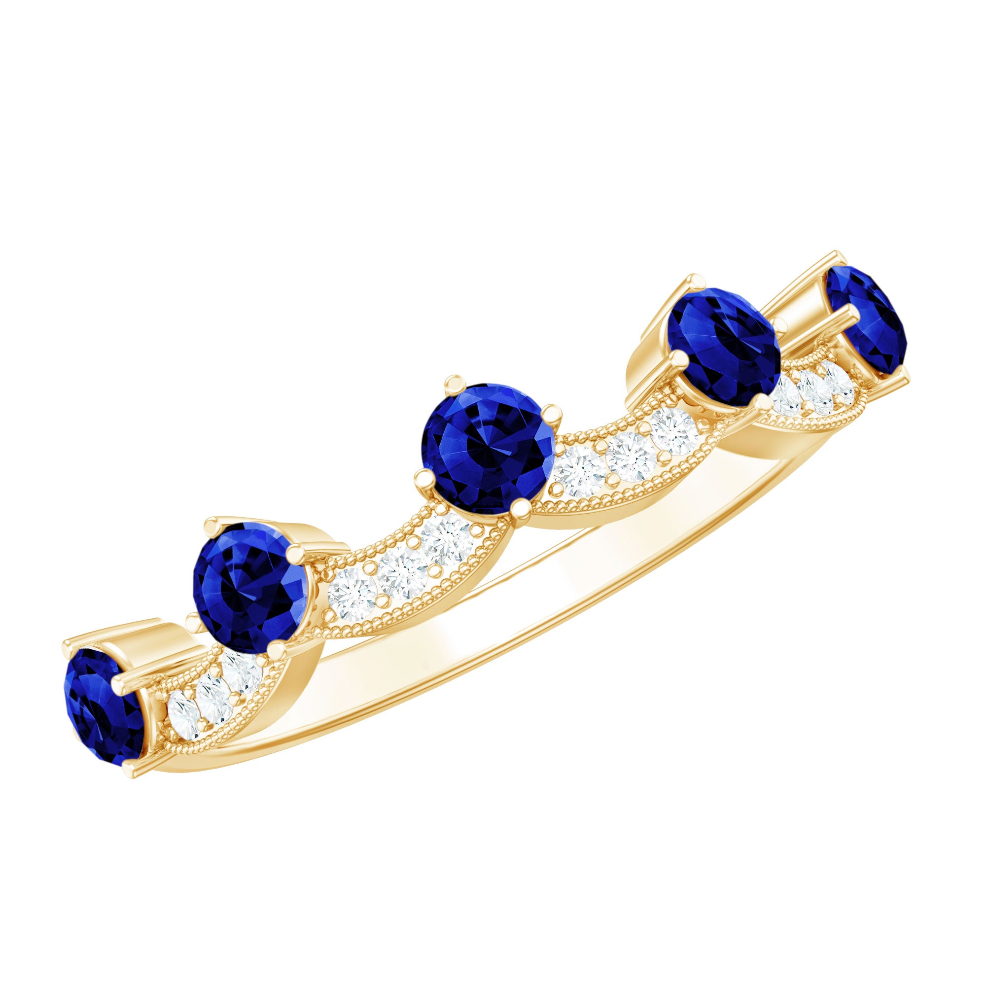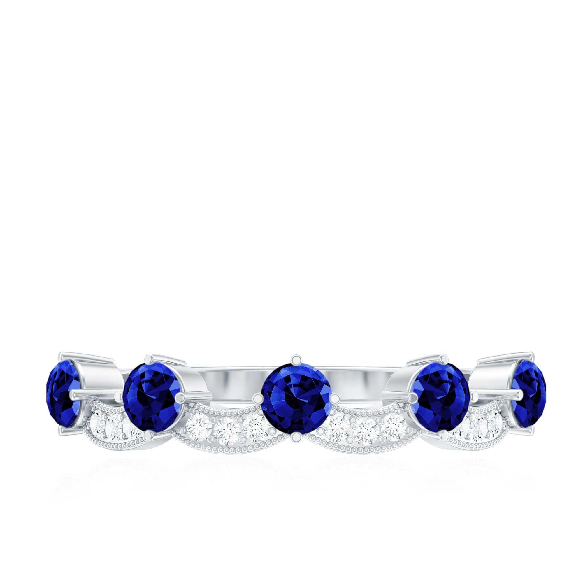 This captivating Crown Ring features Round Shape Lab Created Blue Sapphire and Diamond makes the band more beautiful. With its unique design and luxurious details, this Eternity Ring is the perfect choice to make a lasting impression on your lovely lady.