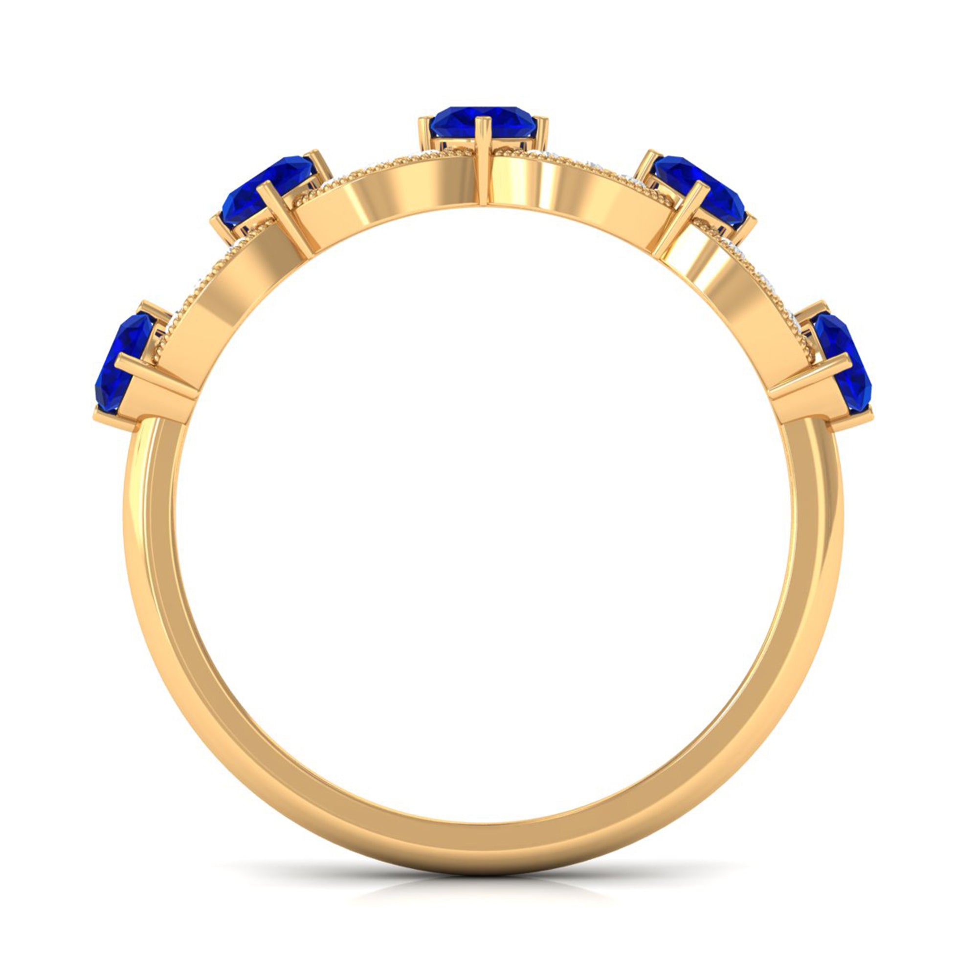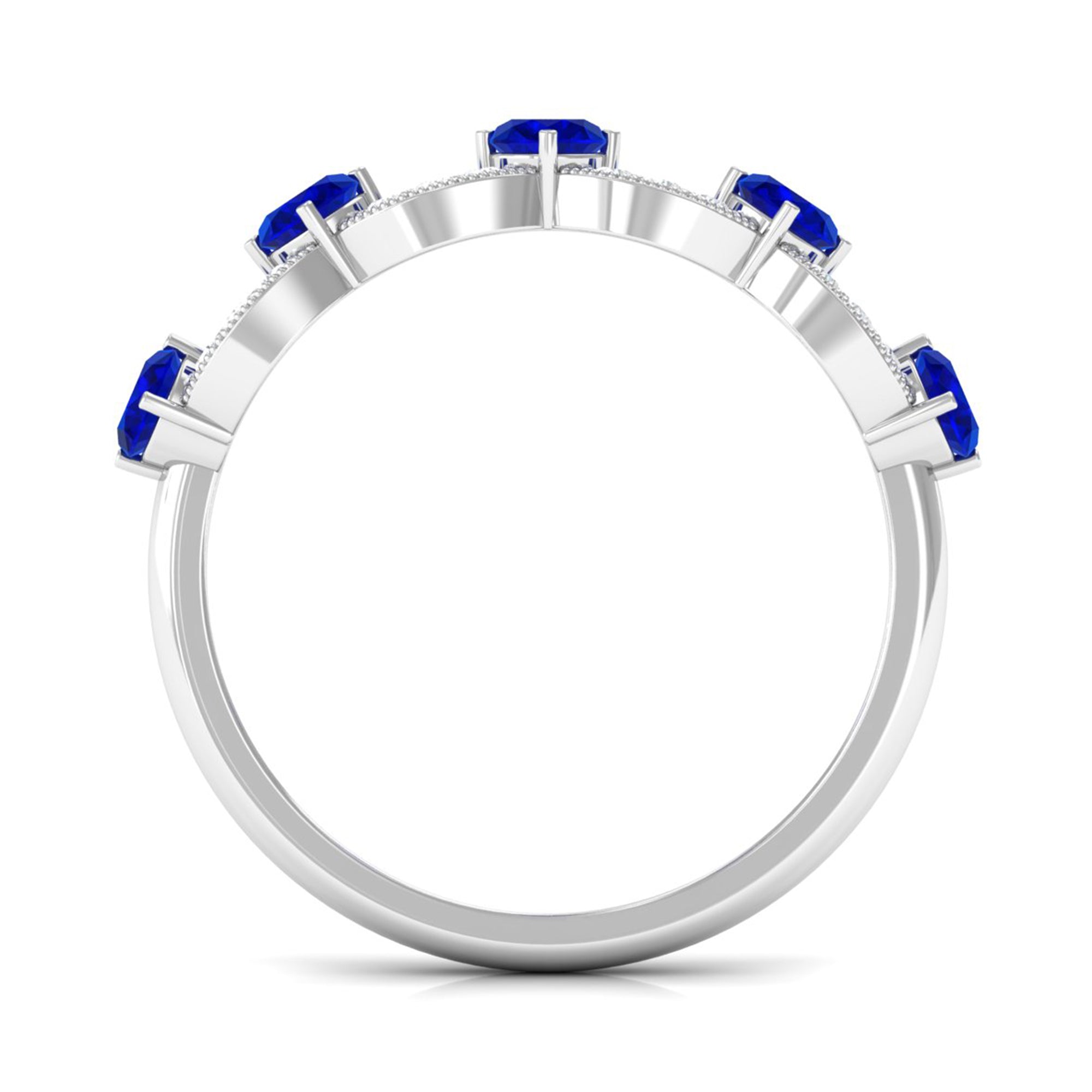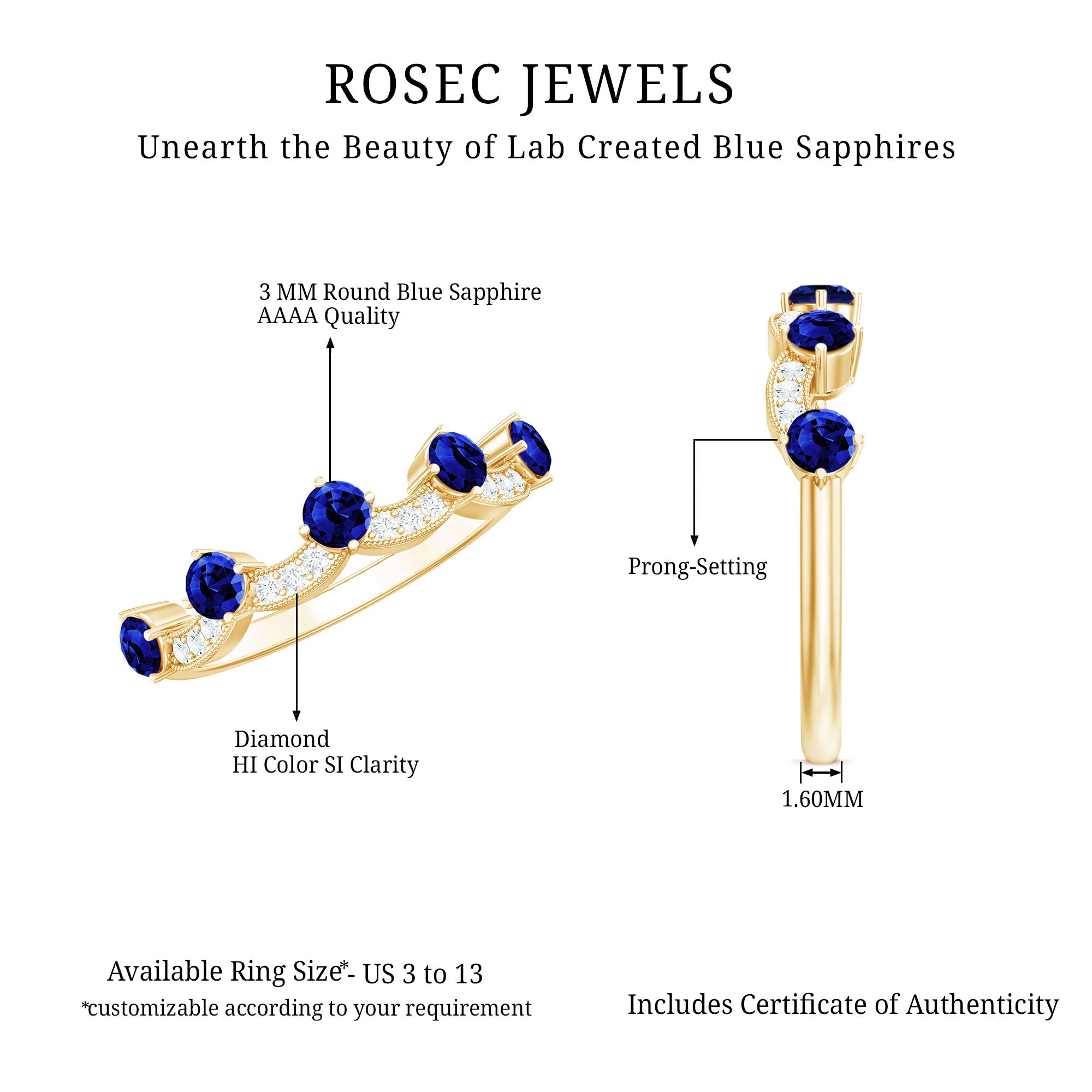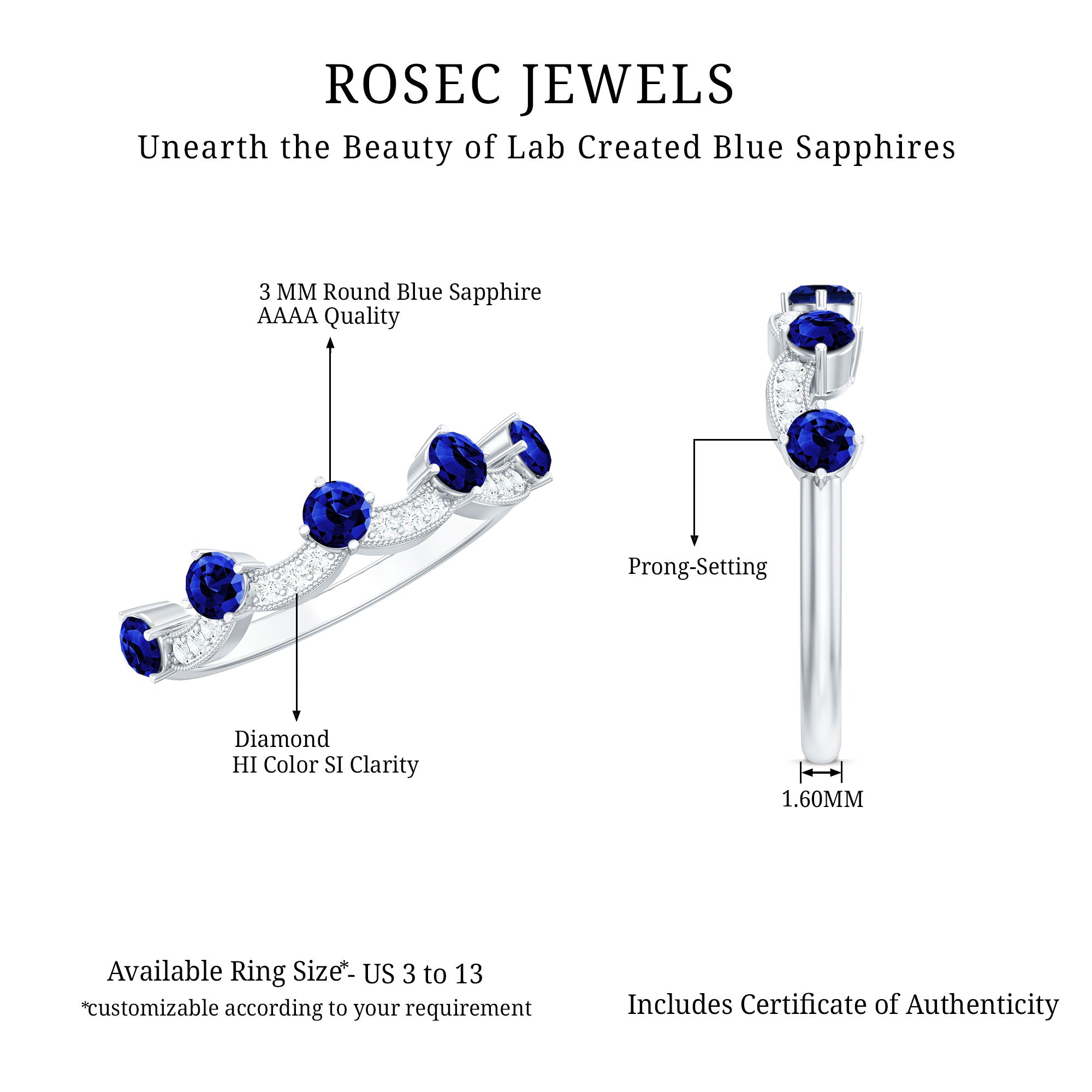 This captivating Crown Ring features Round Shape Lab Created Blue Sapphire and Diamond makes the band more beautiful. With its unique design and luxurious details, this Eternity Ring is the perfect choice to make a lasting impression on your lovely lady.