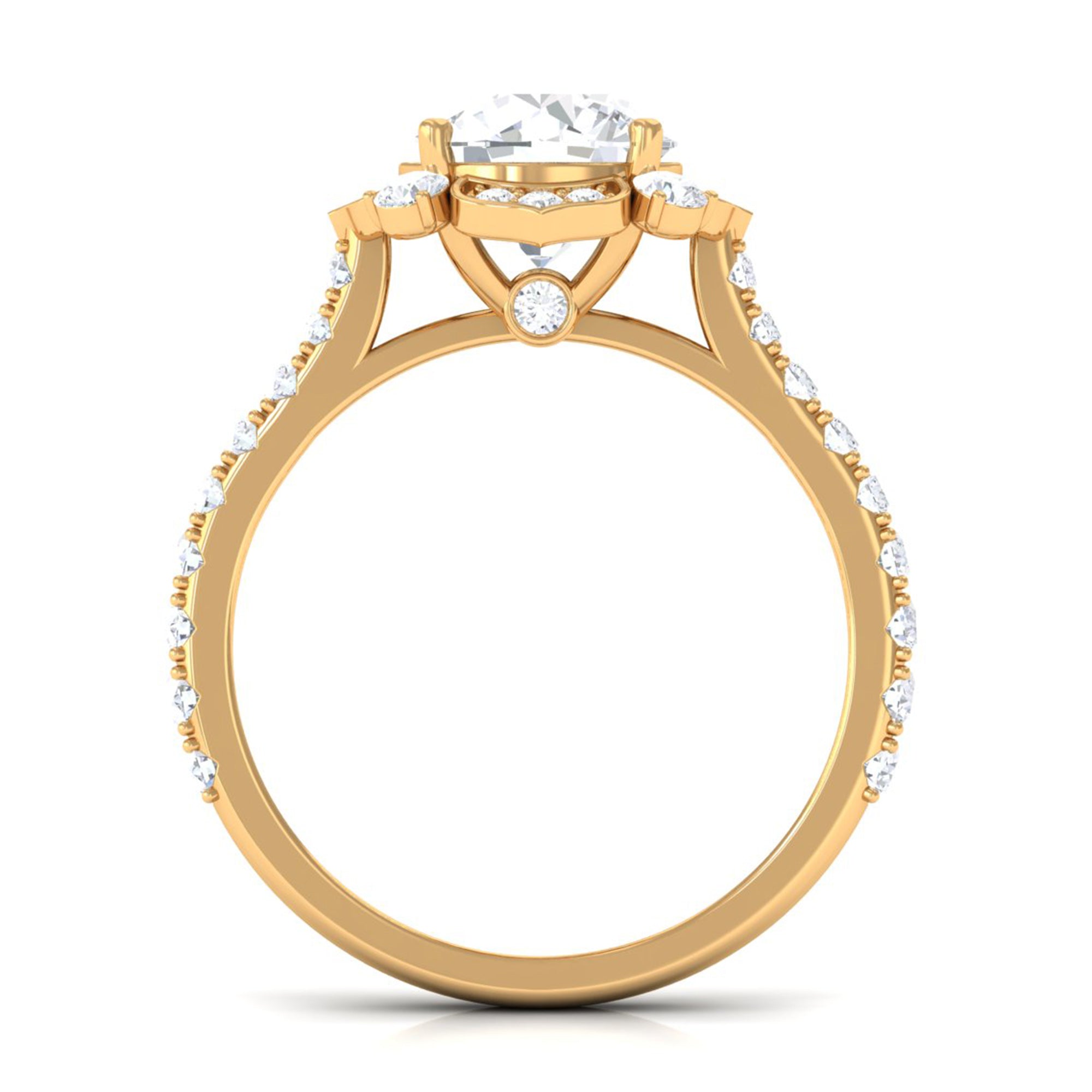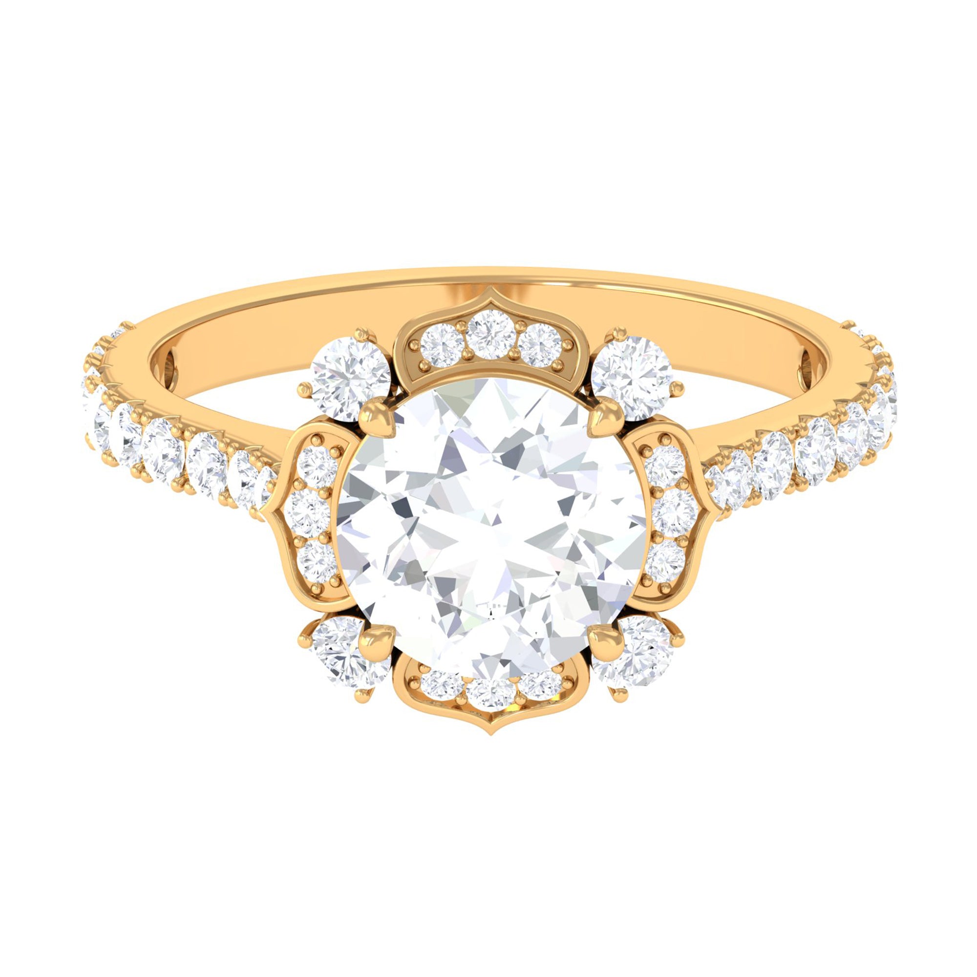 This Zircon Engagement Ring draws inspiration from the elegant flower pattern, and is an absolute delight for the senses. The fiery cubic zirconia gemstone amid a dazzling accent and hidden cz that highlights its ravishing hue. Beautifully designed this ring on the gold shank add to the allure of this Zircon Flower Engagement Ring.