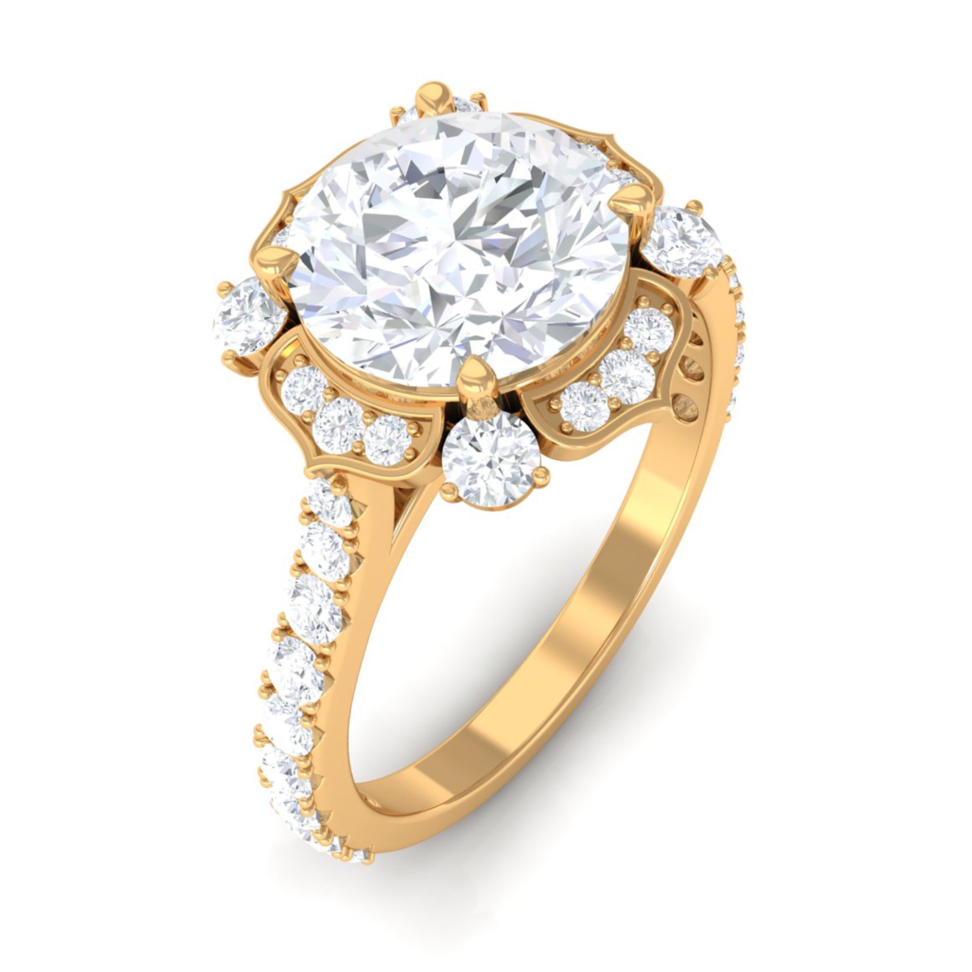 Cubic Zirconia Flower Engagement Ring in Gold