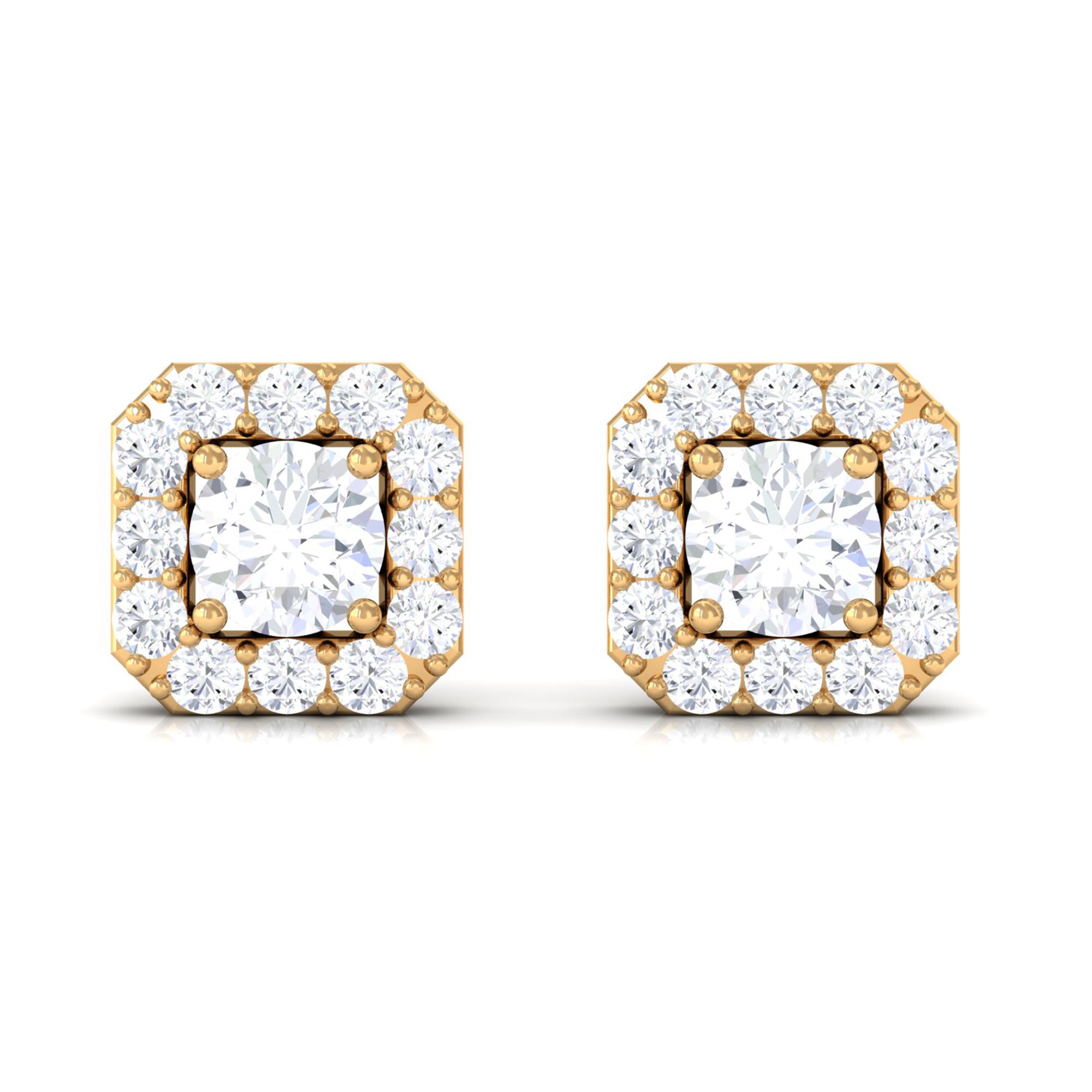 Style up your game with these Vintage Inspired Stud Earrings and give your looks some extra oomph, adorned with Round Cut Zircon in Prong Setting and Halo.