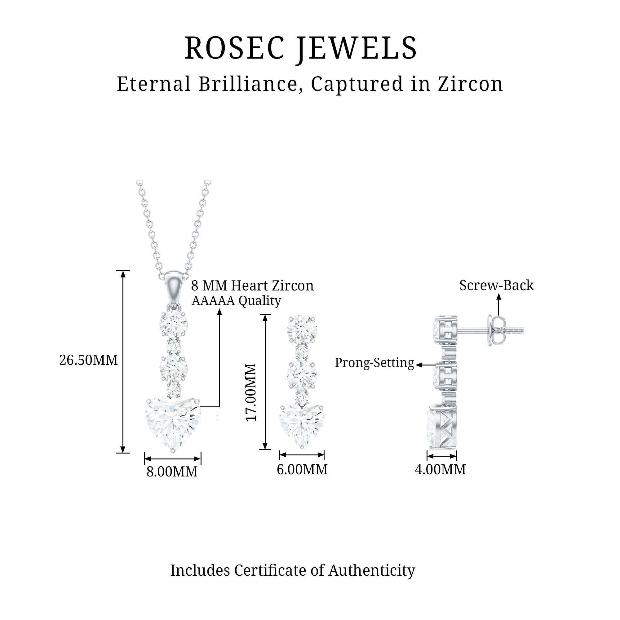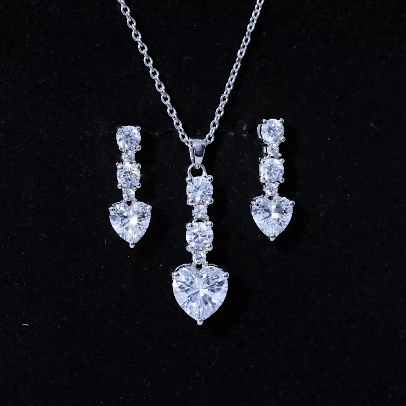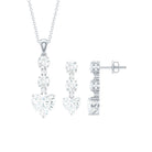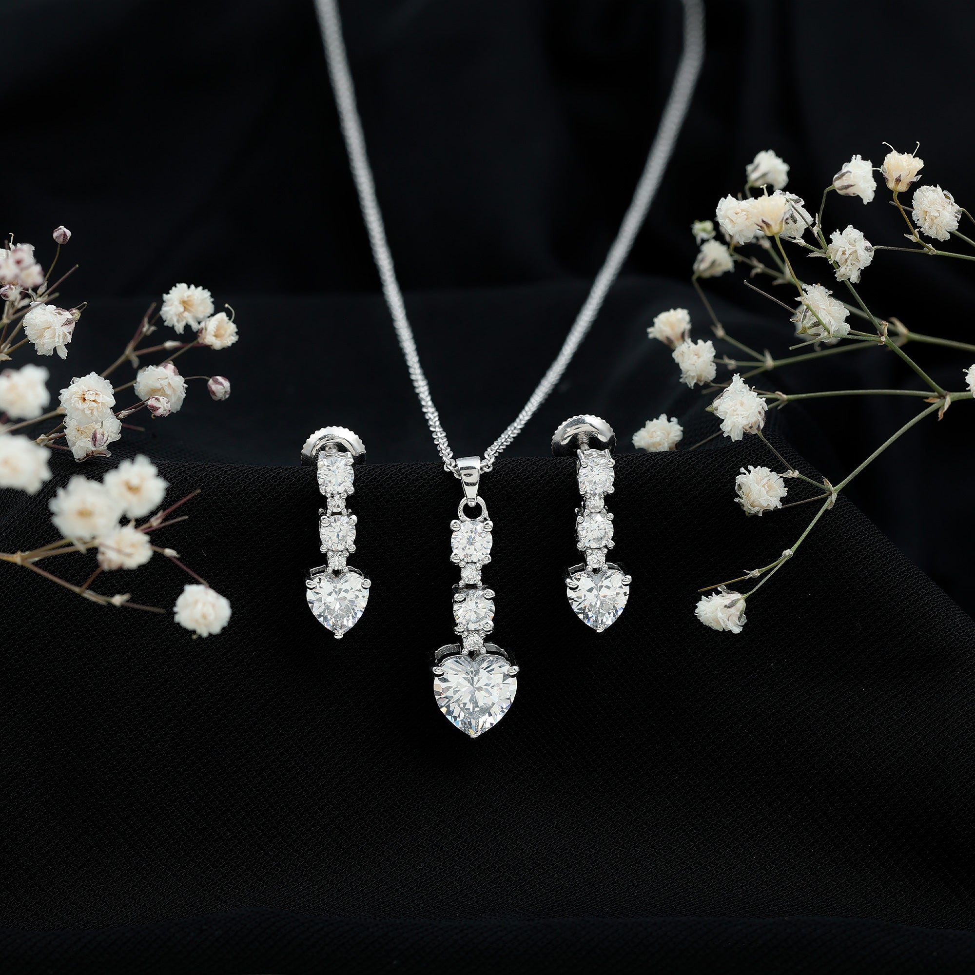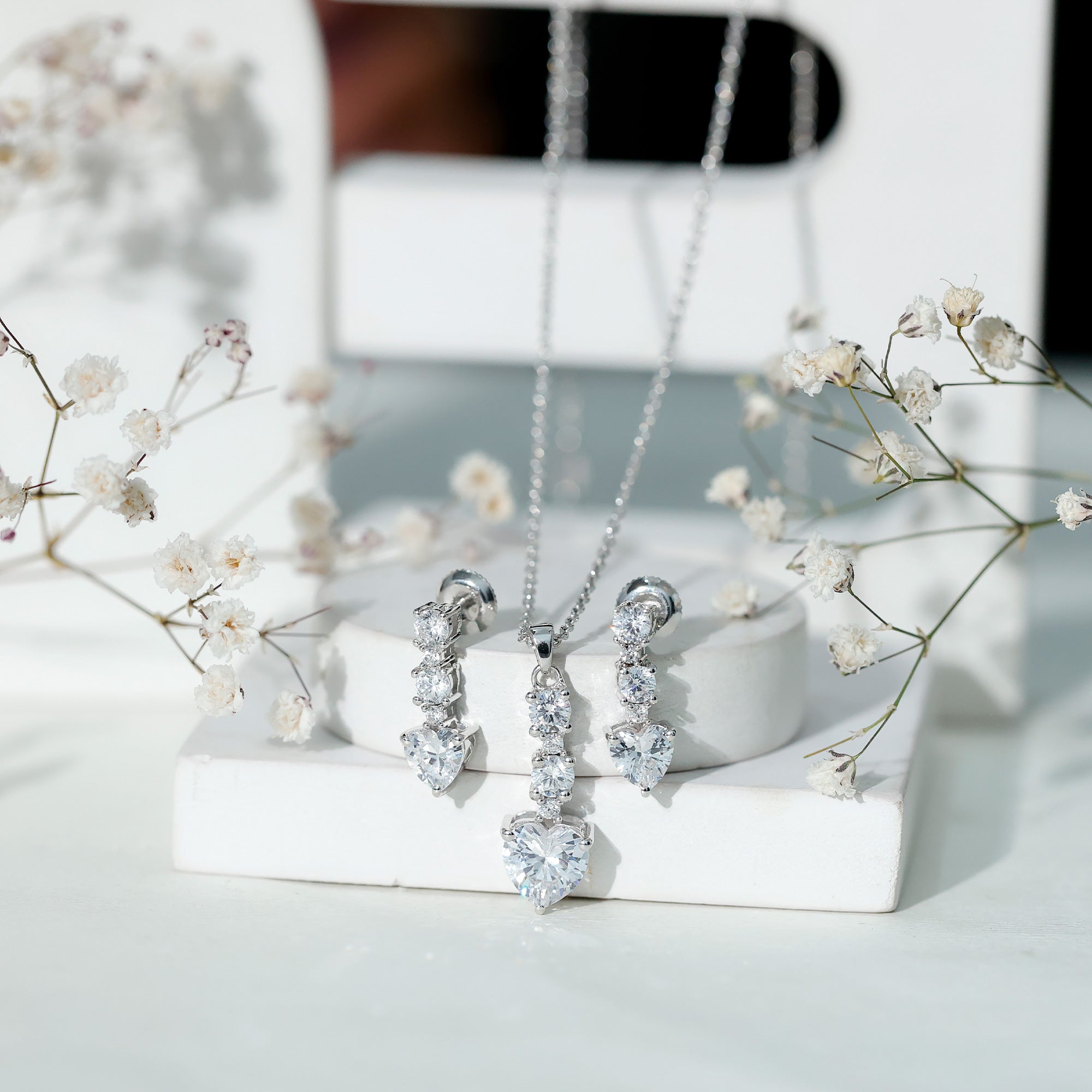 Cubic Zirconia Heart Necklace and Earrings Set in Silver