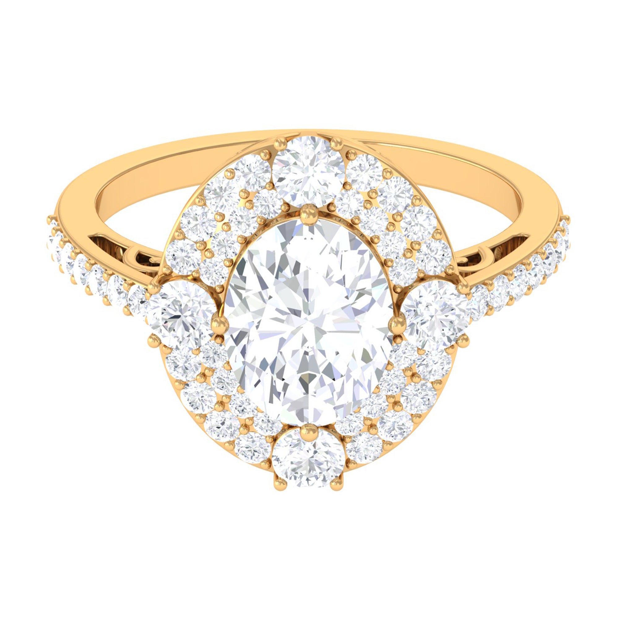 This Statement Engagement Ring is a perfect jewelry for her special day, adorned with Oval Cut Zircon in Prong Setting in the center and Halo.