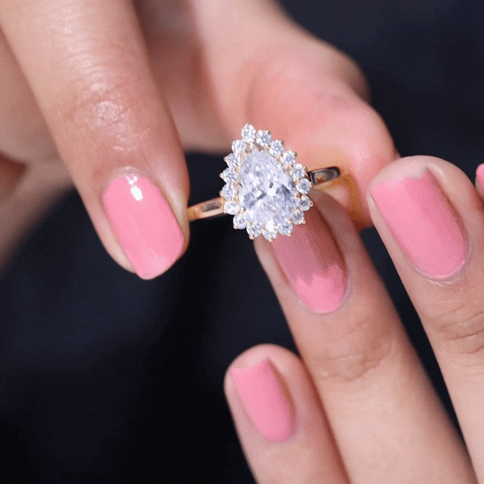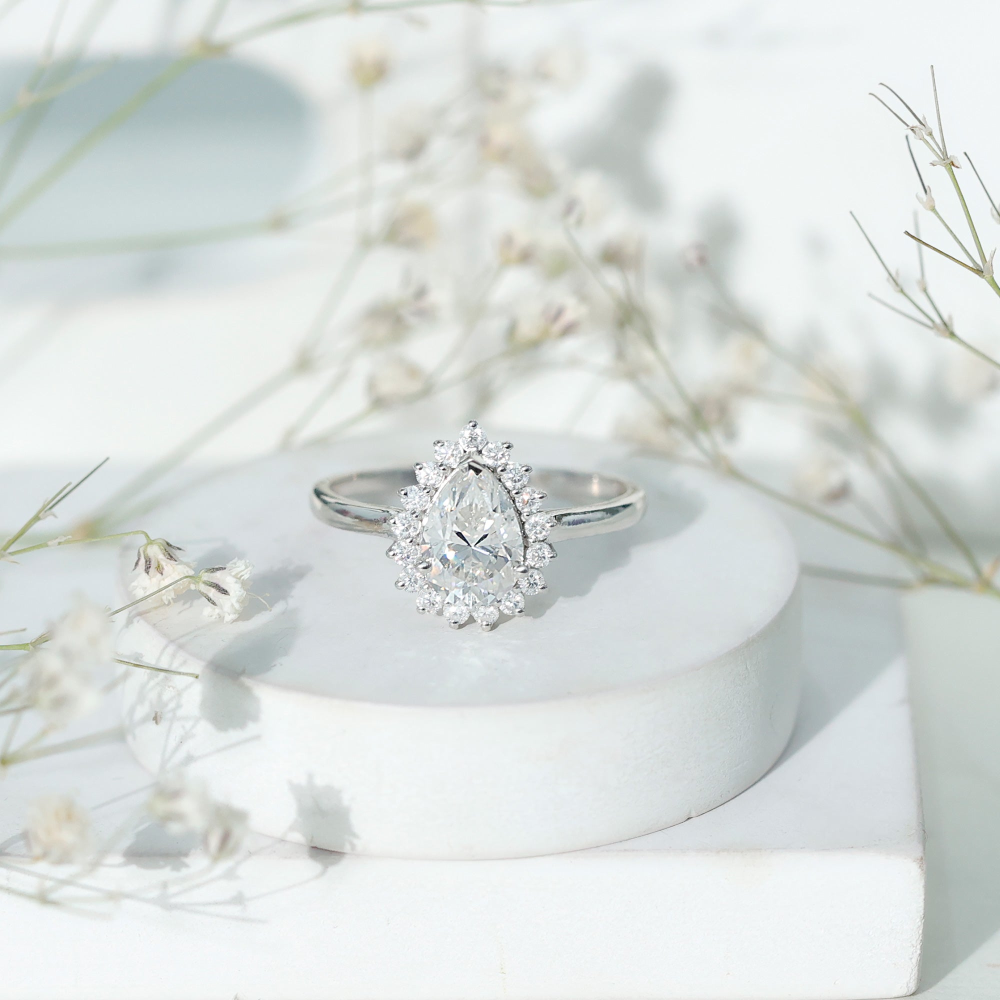 Cubic Zirconia Teardrop Halo Engagement Ring