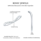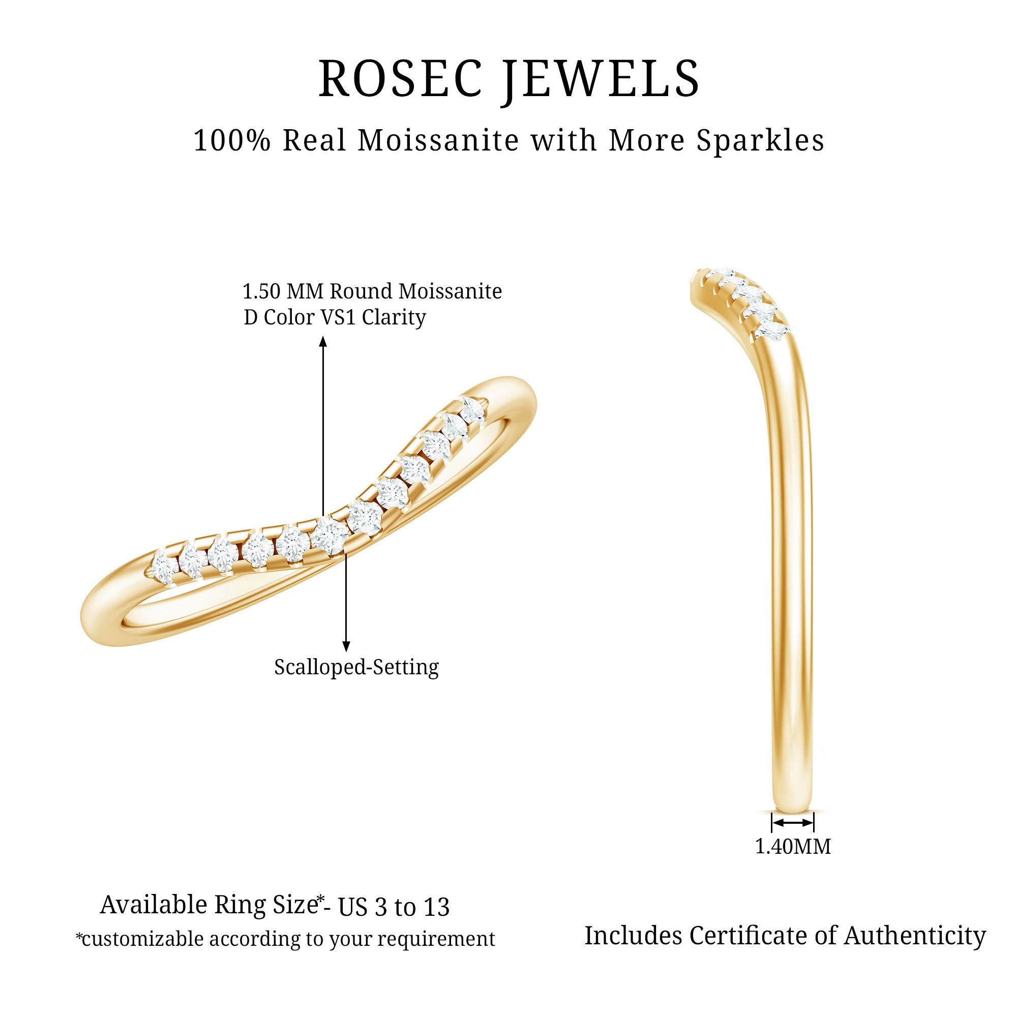 Crafted by Rosec Jewels, this Moissanite Enhancer Ring is a dazzling representation of how true love gracefully bends but never breaks. Designed with care and meaning, it showcases a stunning arc of sparkling stones, symbolizing the strength and elegance of enduring connection. The graceful curve of the band gives it a modern yet timeless touch, making it the perfect addition for anyone looking to elevate the look of their engagement ring or simply add a bit more brilliance to their everyday style. This Curved Ring features round cut moissanites of D-VS1 quality, known for their incredible sparkle and clarity. Each stone is securely nestled in a safe French setting, which enhances its fire and brilliance while offering a sleek and elegant profile. Whether you wear it stacked with your engagement ring or on its own as a bold, sparkling statement piece, this Stackable Band Ring brings both beauty and meaning to your jewelry collection. The versatile design makes it ideal for marking special milestones or even just refreshing your look with a hint of glamour. This Moissanite Ring Guard is more than just a pretty piece - it’s a thoughtful expression of love and individuality. Comes with a certificate of authenticity, assuring you of the quality, and beautifully packaged in a signature jewelry box for safekeeping.