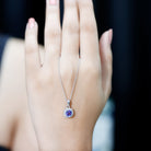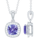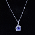 Cushion Cut 6 MM Tanzanite Necklace with Lab Diamond Halo