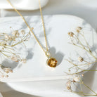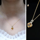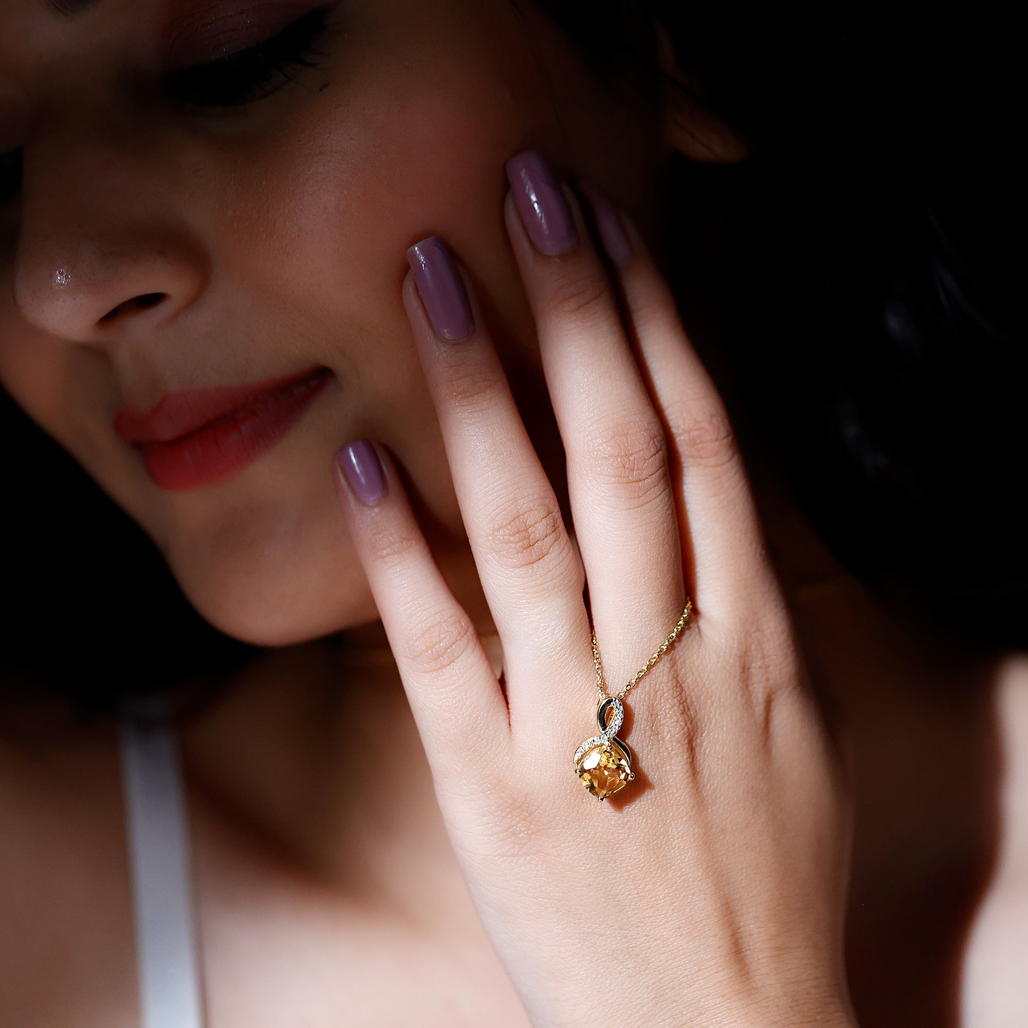 Brighten up your day with the warm glow of this stunning Citrine Infinity Necklace, designed to bring a touch of sunshine and joy to any outfit. Handcrafted in yellow gold plated silver, this Infinity Pendant features a radiant 8 MM cushion cut Citrine, securely held in claw setting. Known for its rich golden yellow hue, this AAA quality Citrine adds vibrant energy and a cheerful glow to your neckline. Above the center stone sits a graceful infinity motif, symbolizing everlasting love and hope. The infinity design is adorned with round brilliant cut lab grown diamonds, adding a touch of sparkle and enhancing the pendant’s elegant look. It also has a hidden bail, giving the pendant a seamless, floating look that keeps the focus on the stunning design. Dangling from a fine, comfortable chain, this Citrine and Diamond Necklace is perfect for everyday wear or special occasions. Whether you are heading to a brunch, celebrating a milestone, or gifting it to someone meaningful, it is a piece that feels personal and timeless.