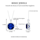 Cushion Cut Created Blue Sapphire and Diamond Halo Pendant Necklace