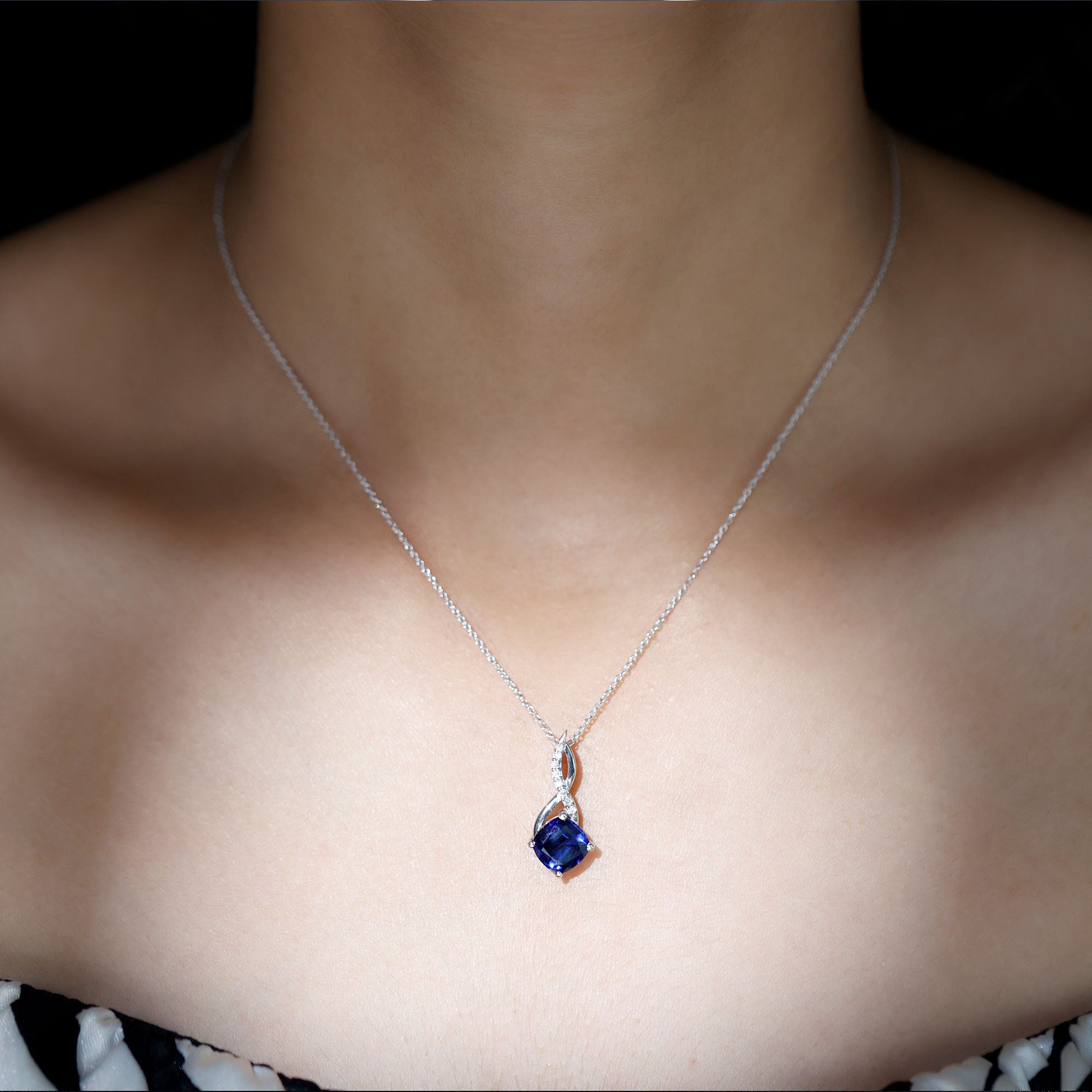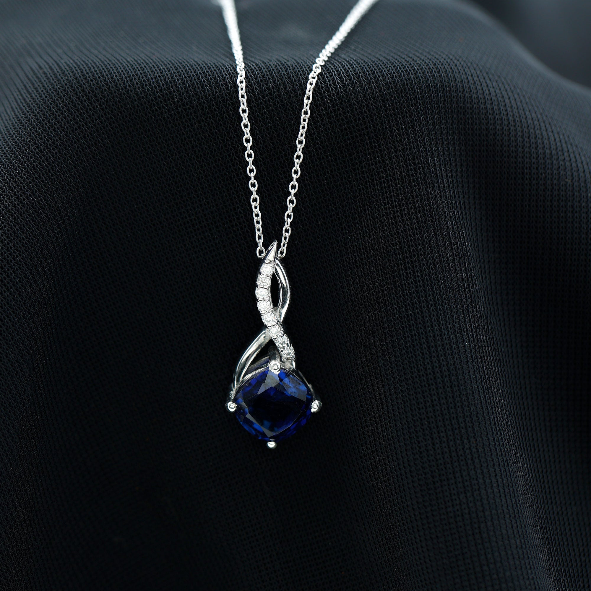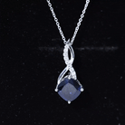 Cushion Cut Created Blue Sapphire Solitaire Infinity Pendant with Moissanite