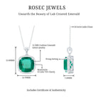 Complement her attire with this Halo Pendant Necklace embellished with Cushion Cut Lab Created Emerald secured in 4 Prong Setting and Round Shape Moissanite studded as Halo. This Green Stone Pendant Necklace is crafted with Hallmarked Metal. Present this Created Emerald Necklace to your special person and make her feel special.