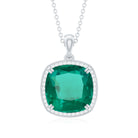 Cushion Cut Created Emerald and Moissanite Halo Pendant Necklace