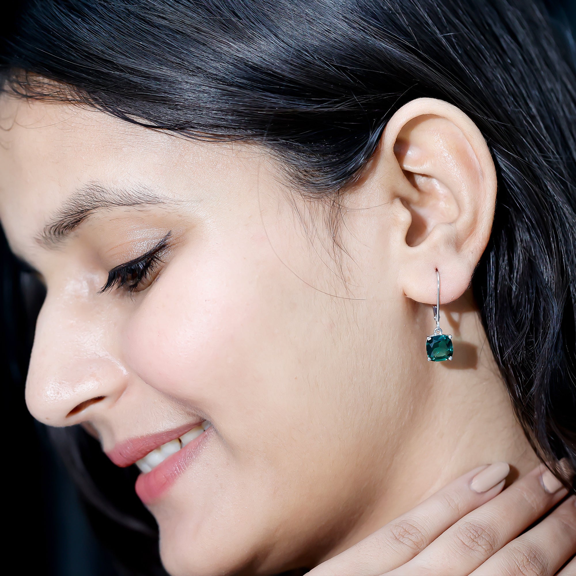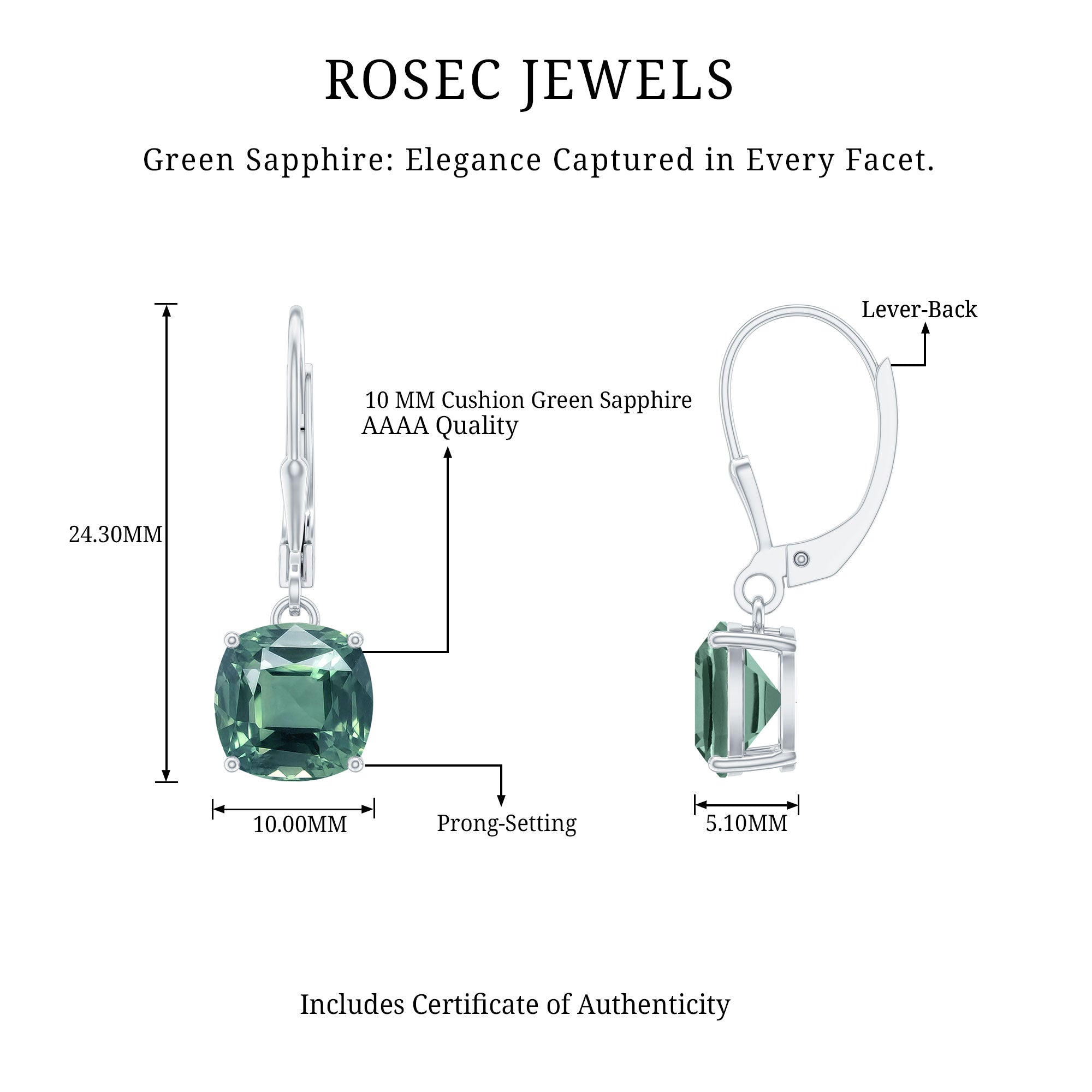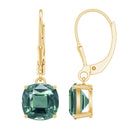 Enhance your style with these exquisite Drop Earrings that exude sophistication. The cushion-cut created green sapphire beautifully complements the lever back design, resulting in a breathtaking combination. A fashion essential for those who appreciate timeless elegance, these created green sapphire earrings effortlessly elevate any outfit with a touch of allure and charm.