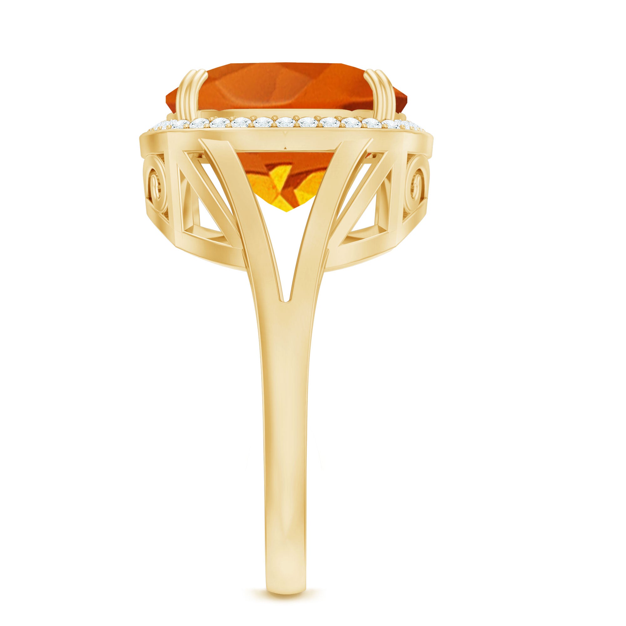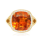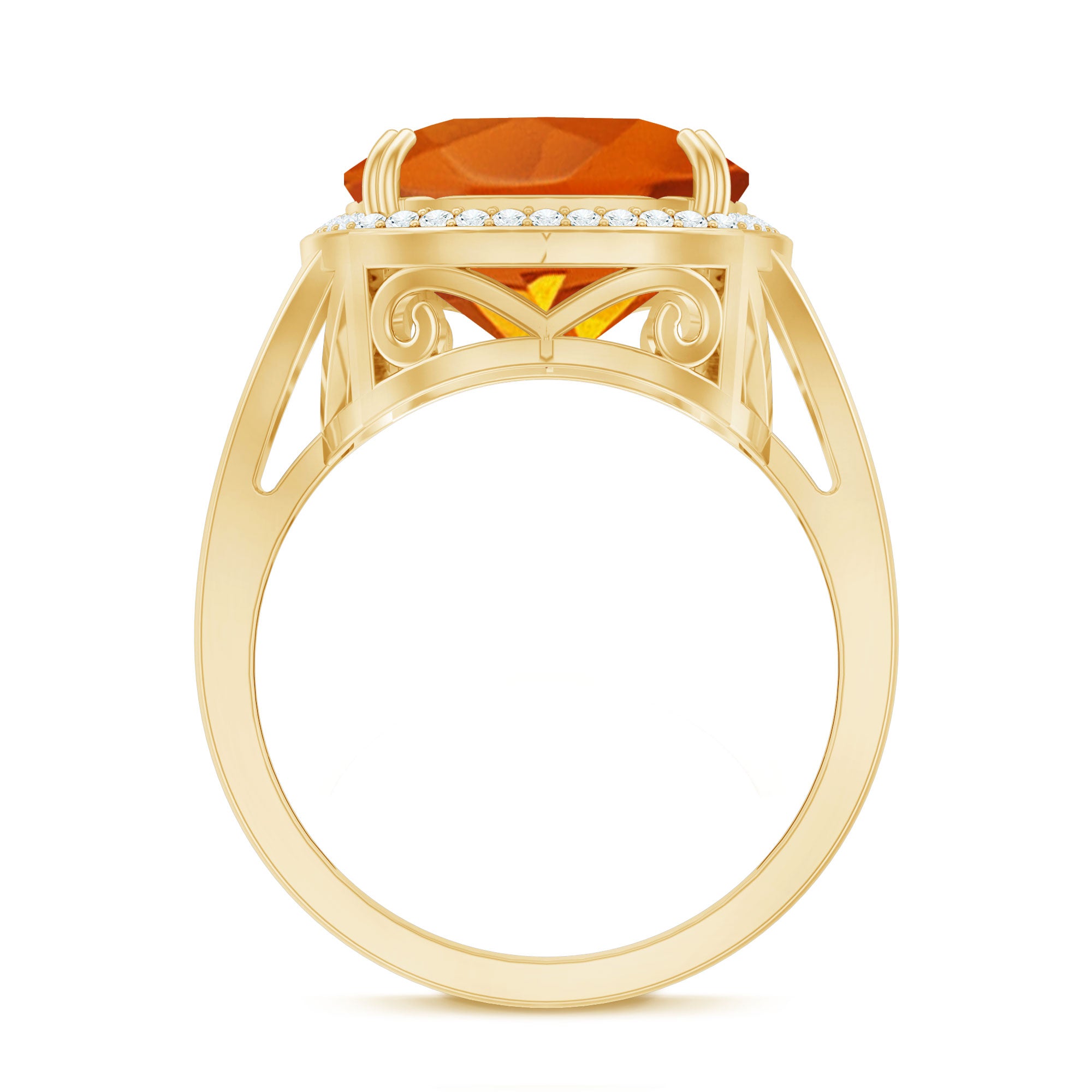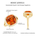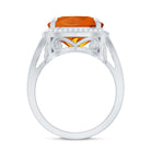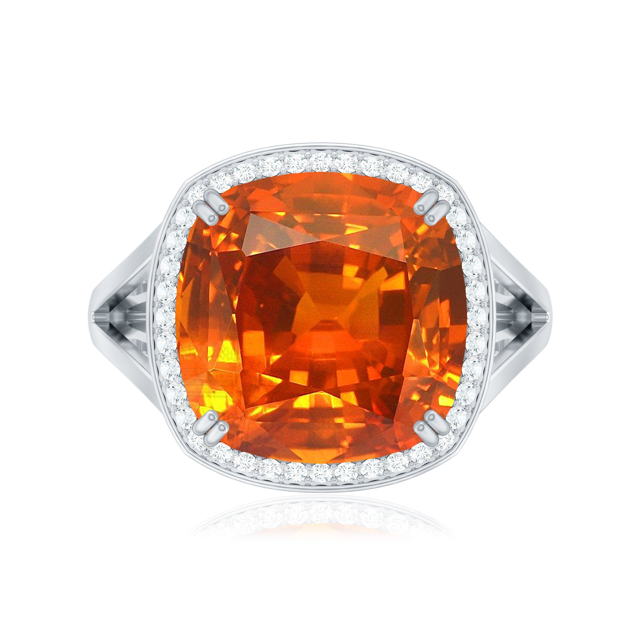 Cushion Cut Created Orange Sapphire and Diamond Statement Halo Ring